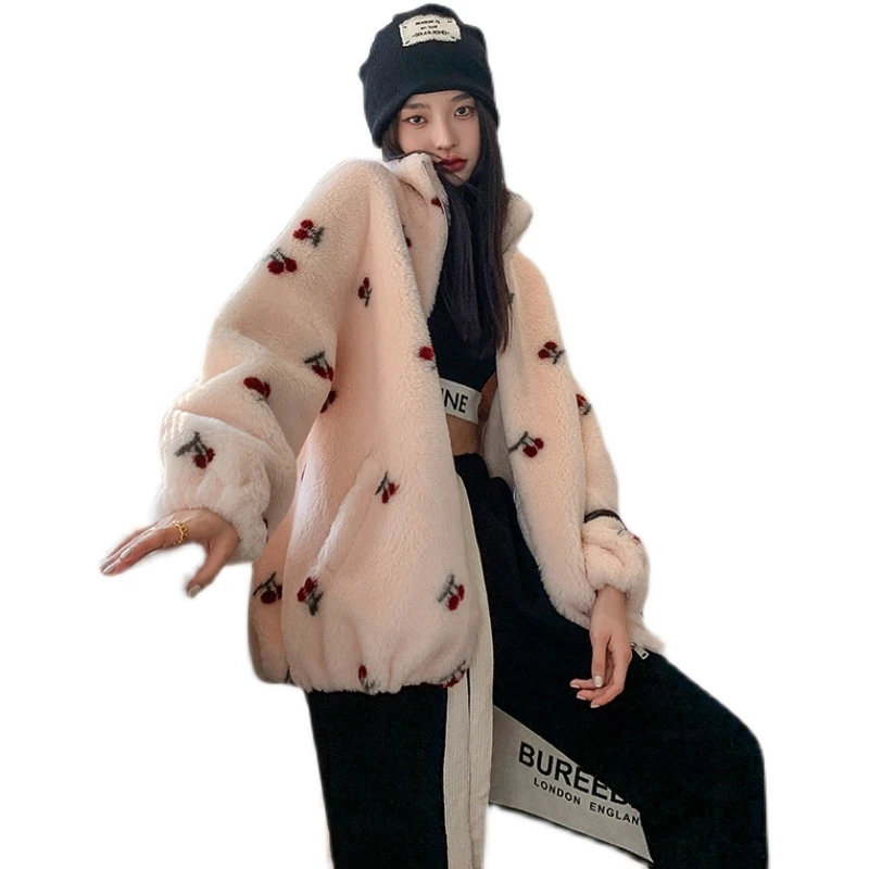 Small incense wind 2023 short paragraph winter sweet cherry jacket women thickened lamb wool one temperament tops female y2k 2XL