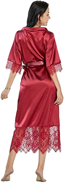 Soft Night New Silk Kimono Robe Bathrobe Women Silk Bridesmaid Robes Sexy red Robes Satin Robe Ladies Dressing Gowns 2020