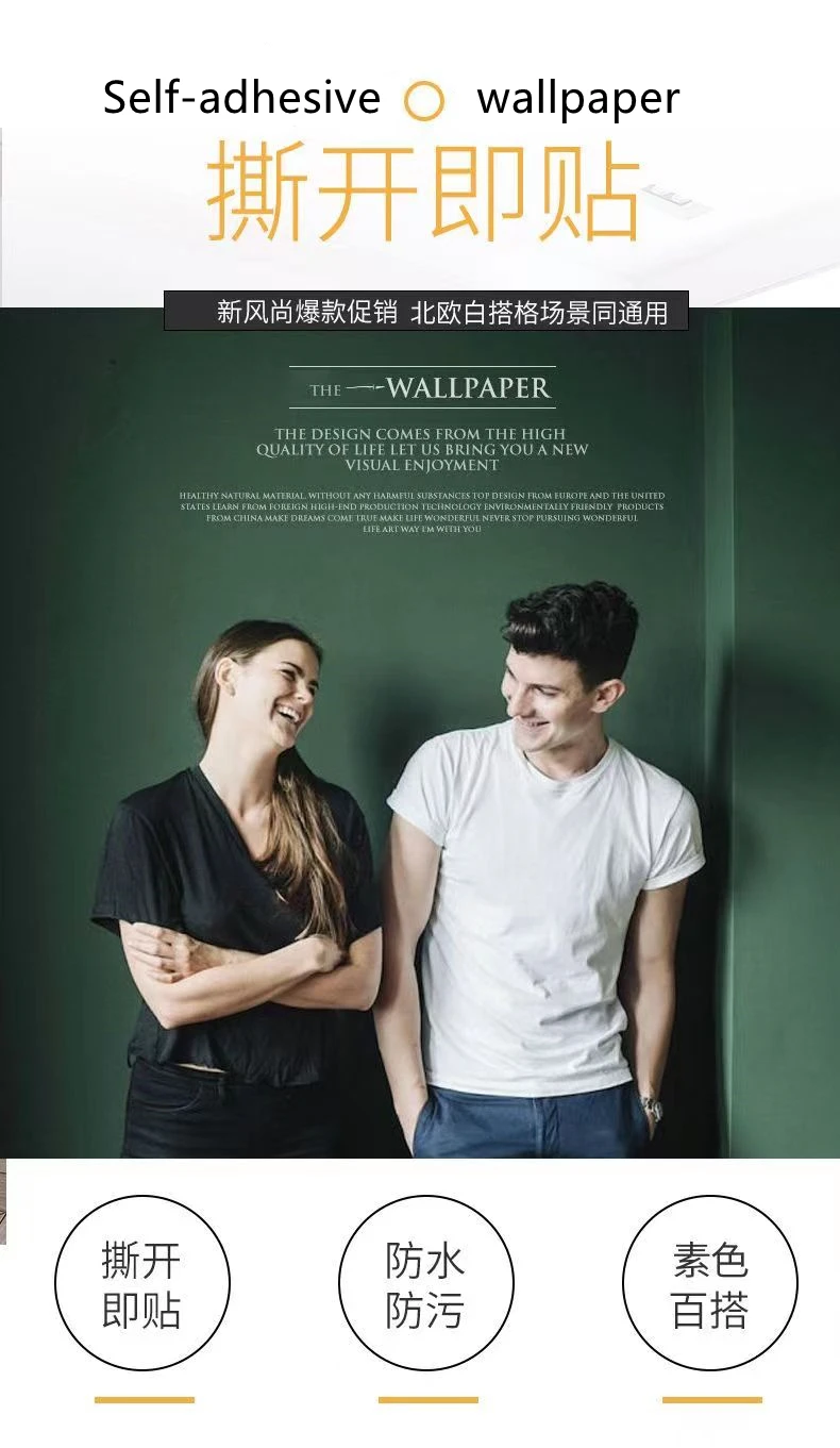 This wallpaper has the characteristics of self-adhesive, waterproof and oil-proof, easy to clean, etc., and no glue is left on the wall after removal.