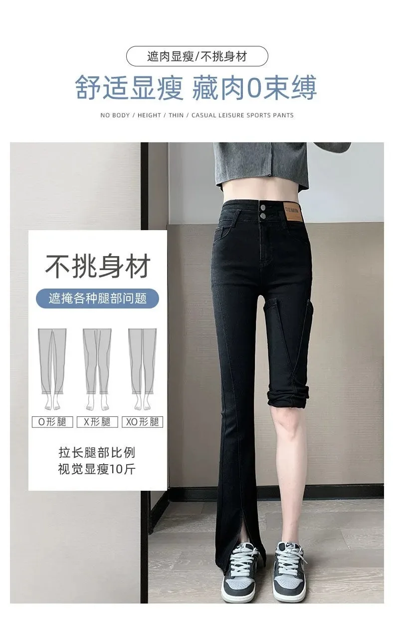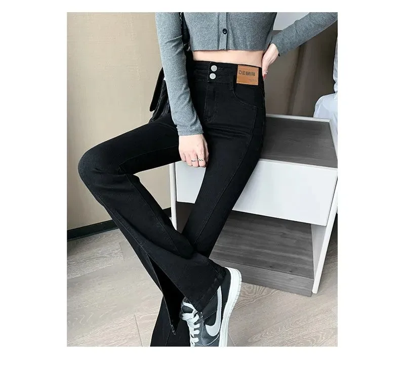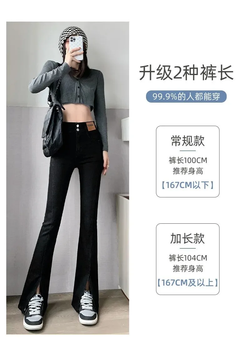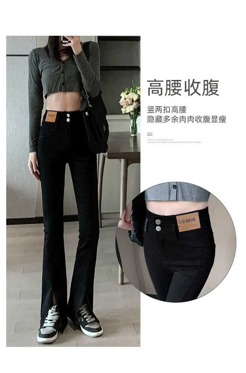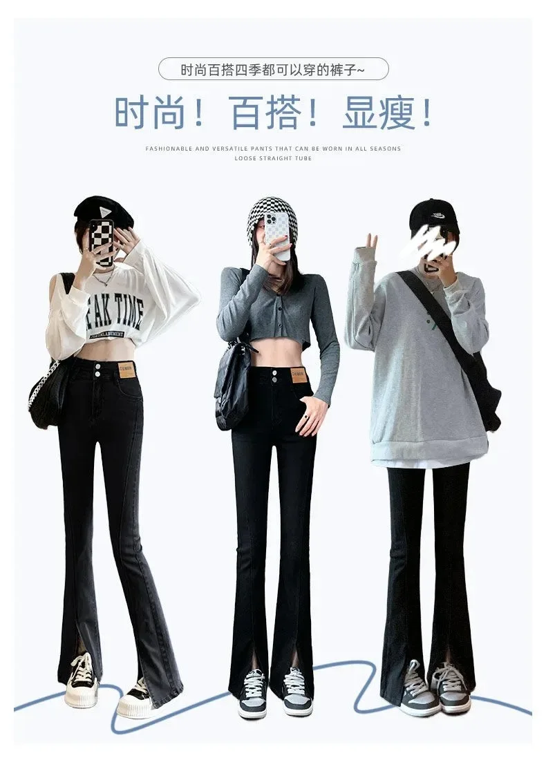 Split flared jeans women's 2023 spring and summer new retro high waist slim fit slim stretch black straight pants