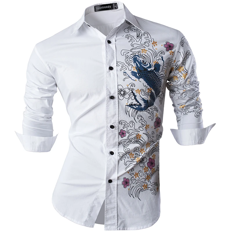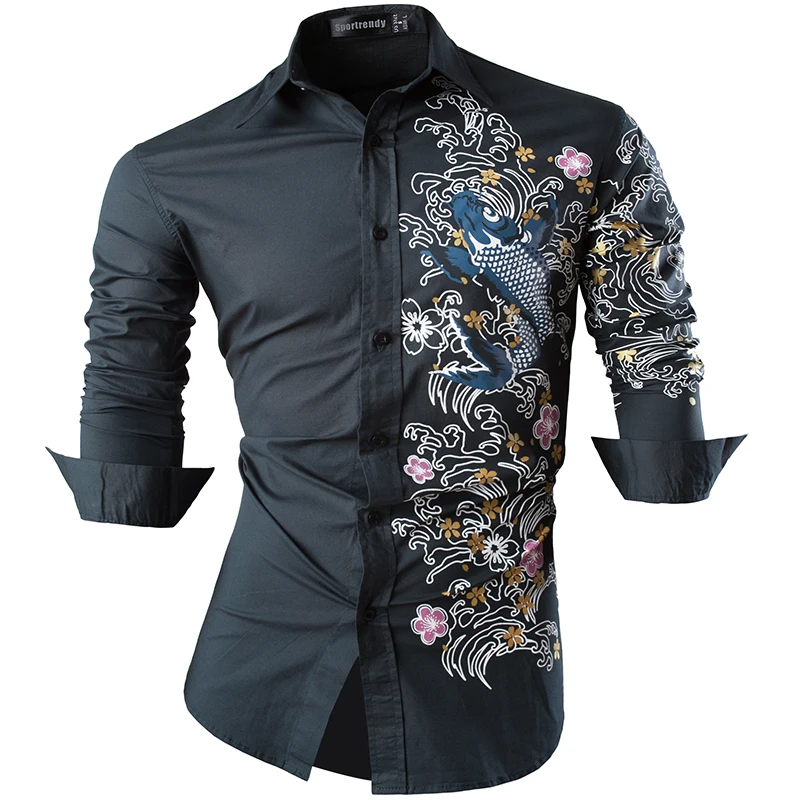Sportrendy Men's Shirt Dress Casual Long Sleeve Fashion Dragon Stylish JZS091 Black