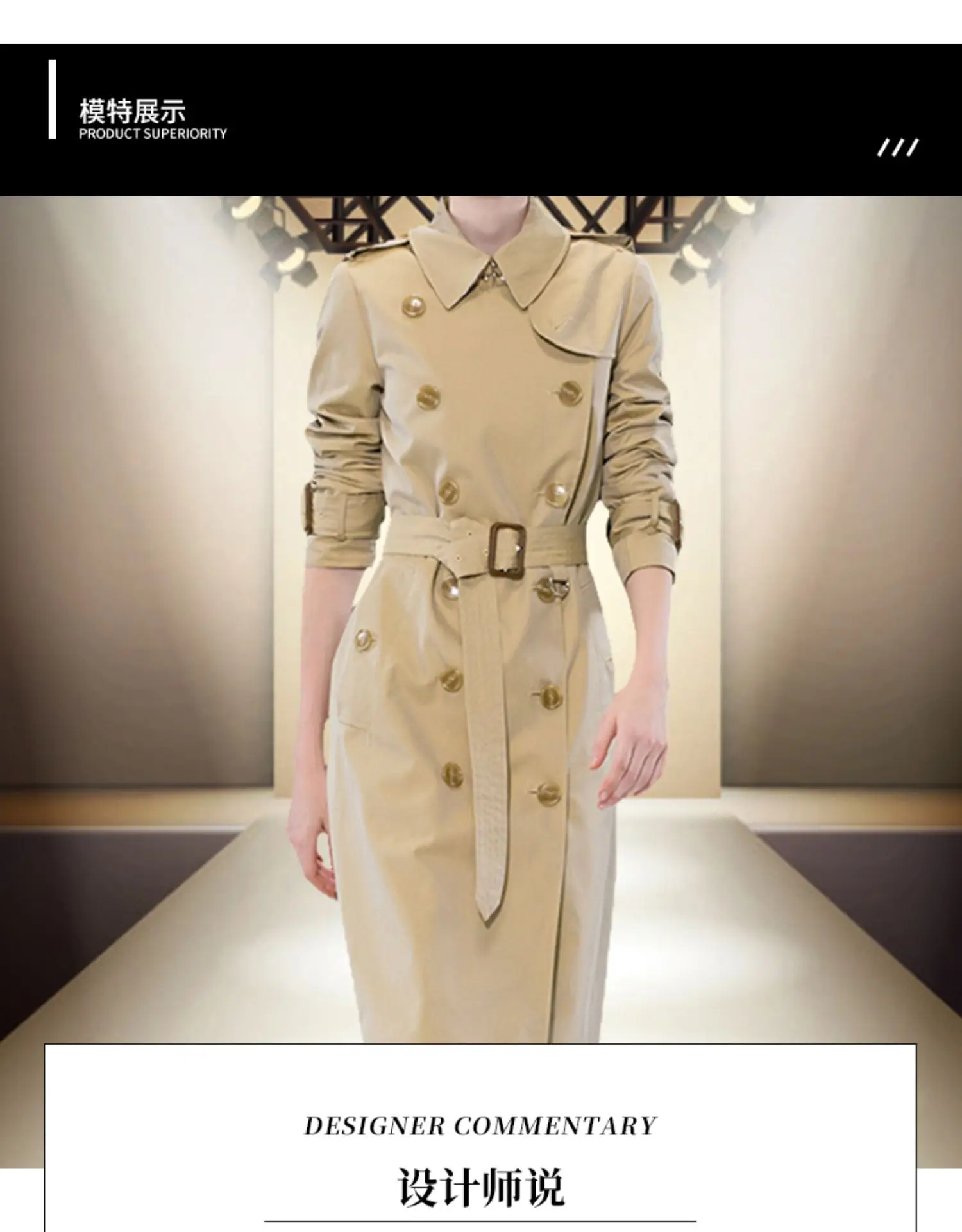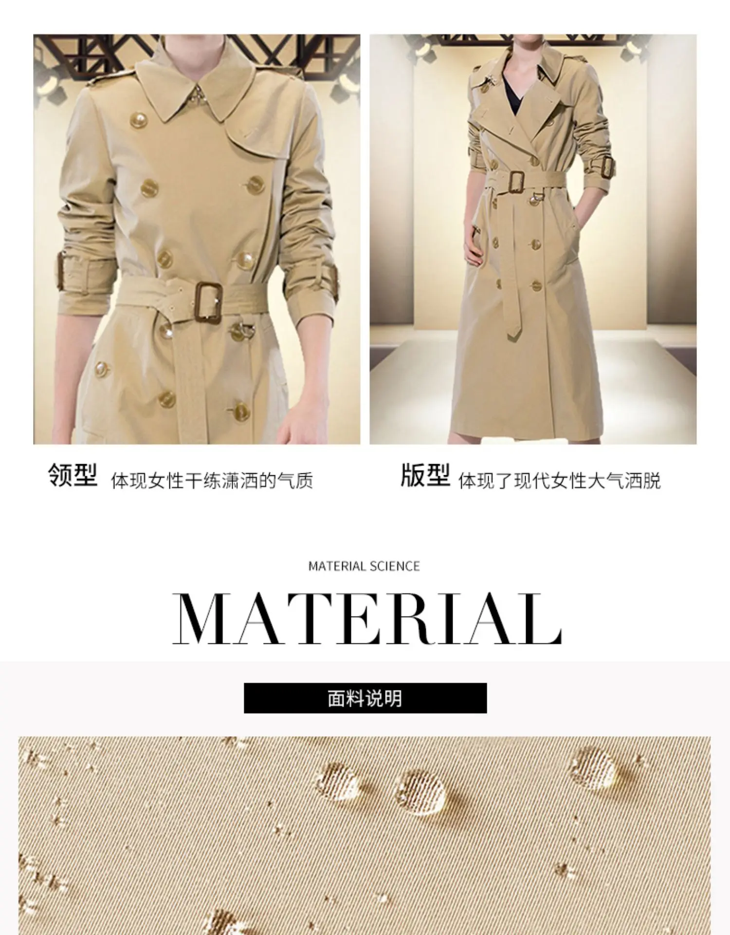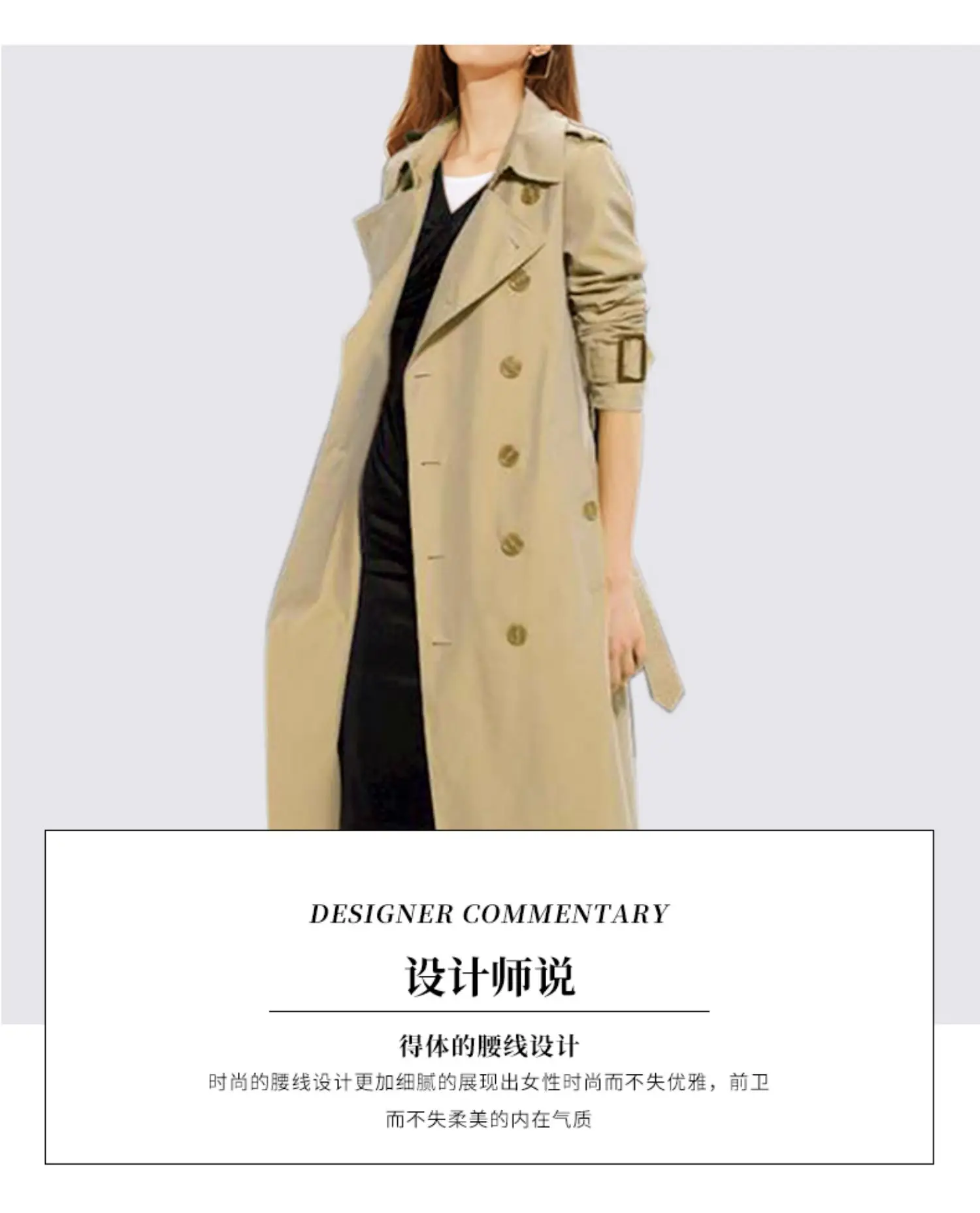 Spring and autumn women's dress lapel double breasted fashion casual loose trench coat ladies waterproof long trench