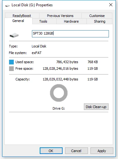 128GB  Approximately  119GB