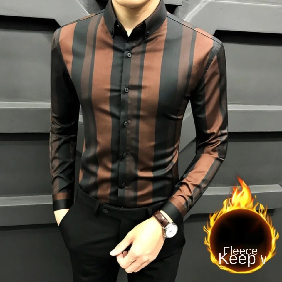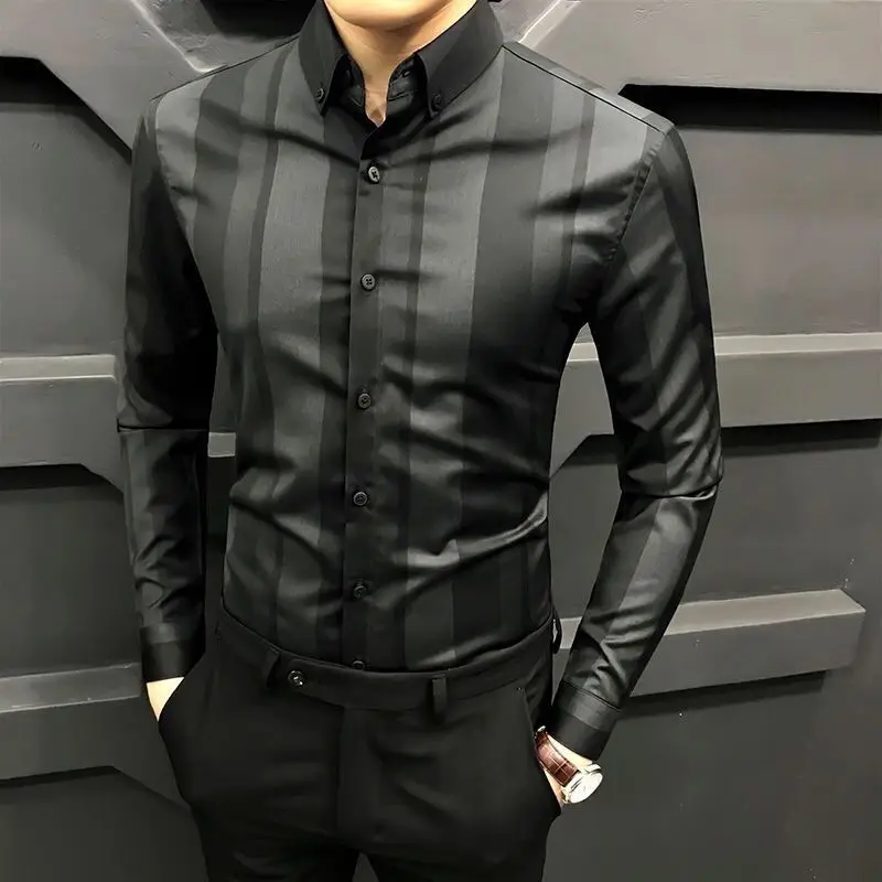 Striped shirt men’s long-sleeved Korean style trendy men’s casual slim fit business shirt handsome top men’s