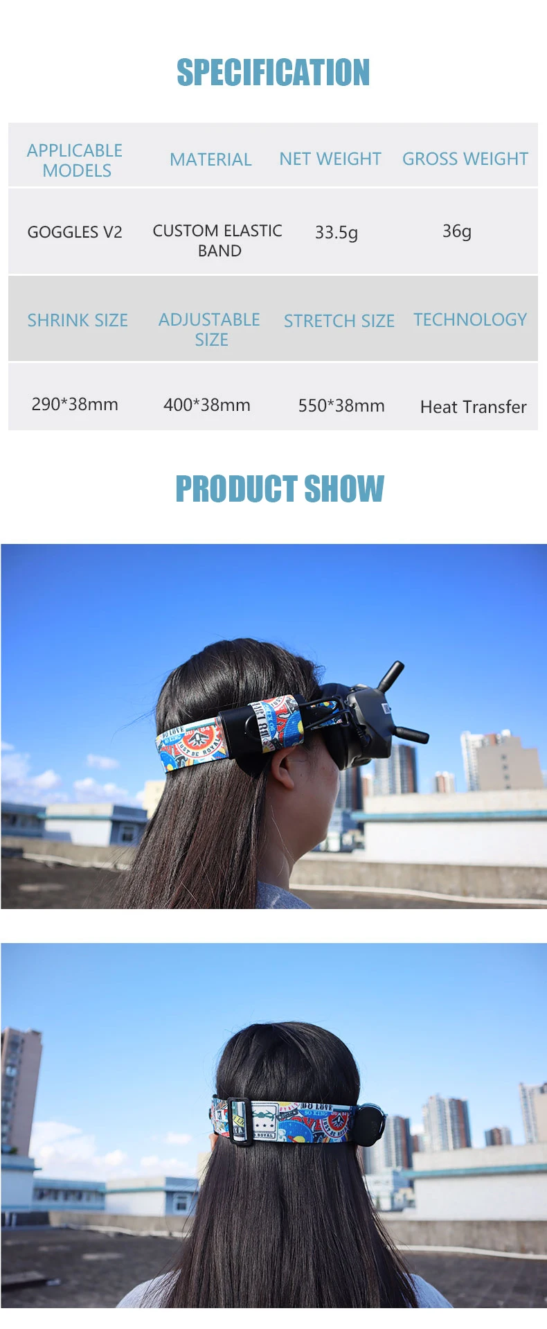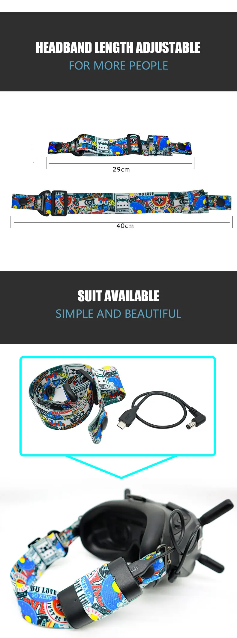 Suitable for DJI FPV flight video glasses V2 graffiti color headband fixed strap personalized drone accessories