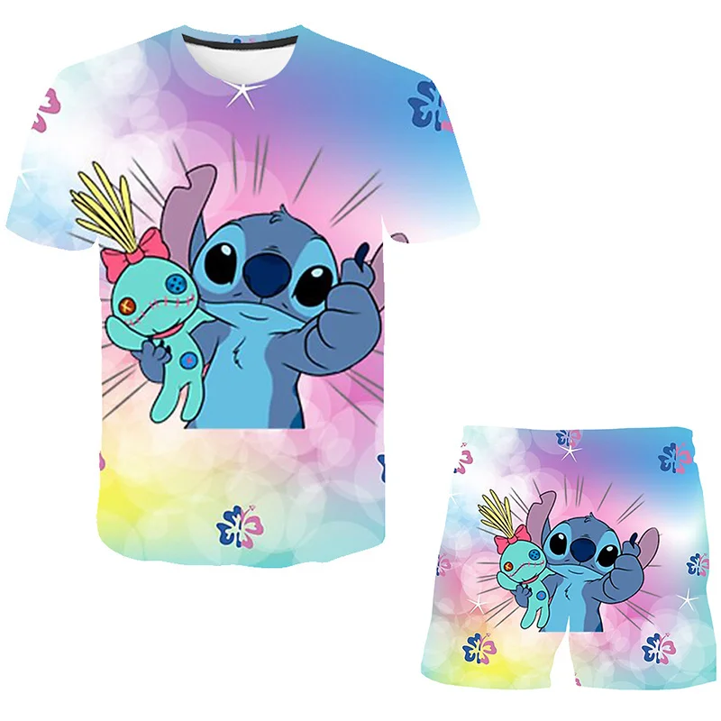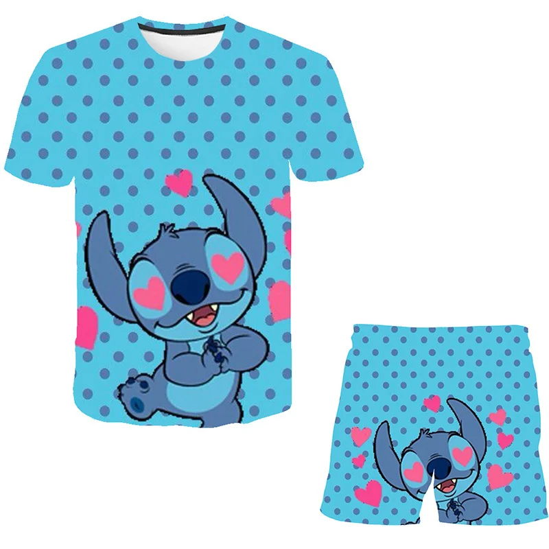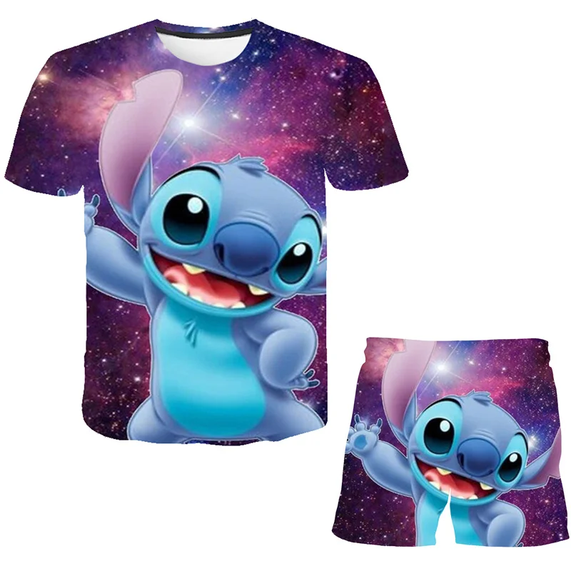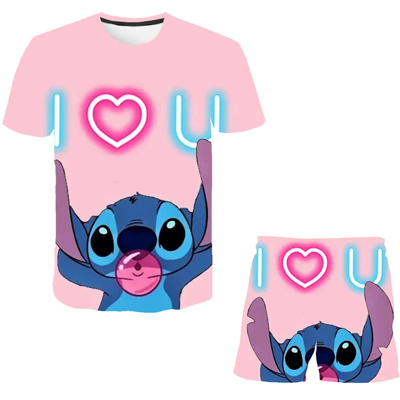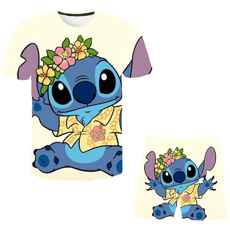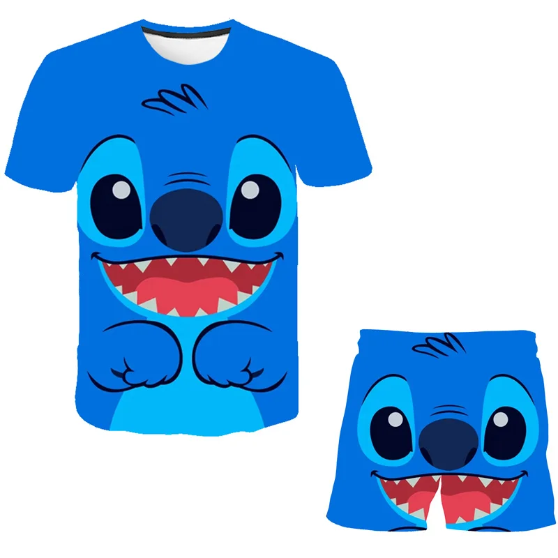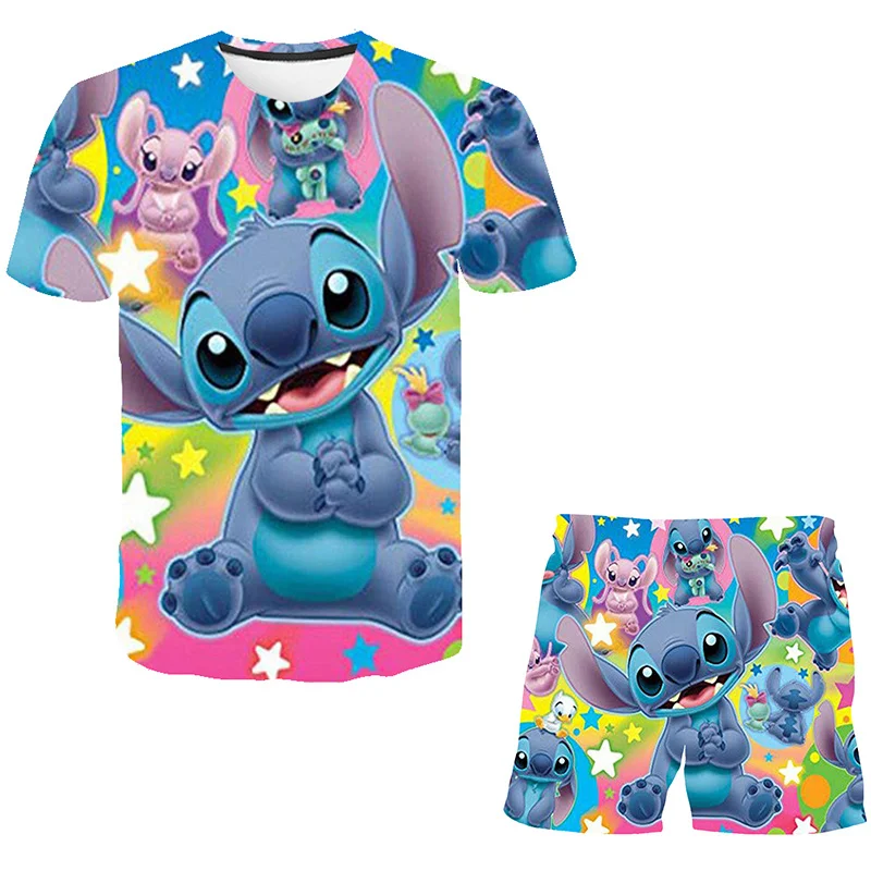 Summer Cartoon 2PCS Kids Baby Boys Girls Cartoon Stitch T shirt Top Shorts Pants Set Clothes Children Girls Stitch Clothing Sets