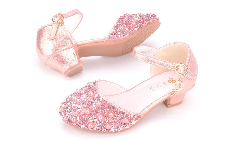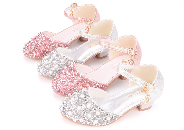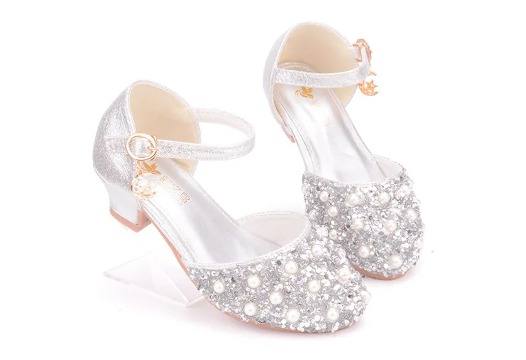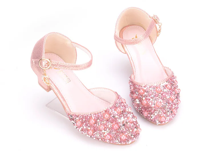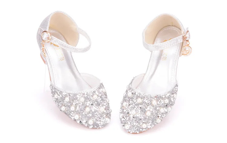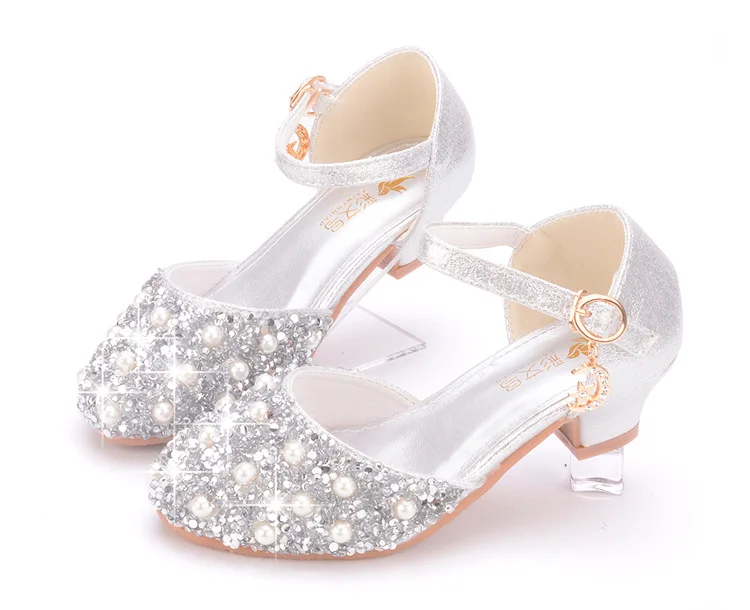Summer New Girls' Pearl Crystal Shoes Birthday Party Dance Shoes Children's Fashion Shoes High-heeled Princess Leather Shoes