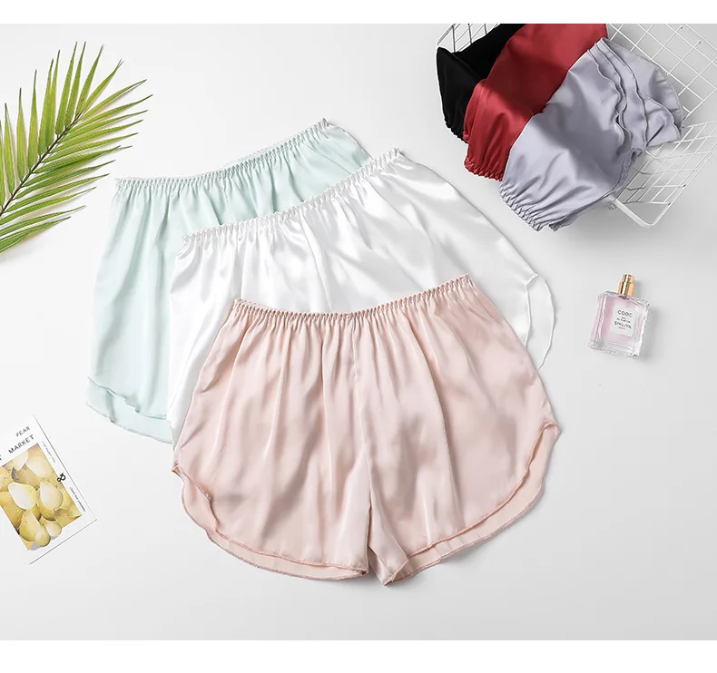 Summer Satin Pajama Shorts Women Korean Style Elastic Waist Shorts Female Sexy Fashion Home Clothes Solid Cool Sleepwear Bottoms