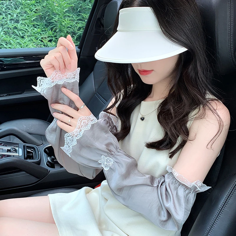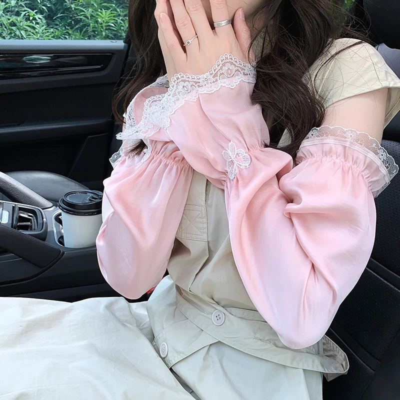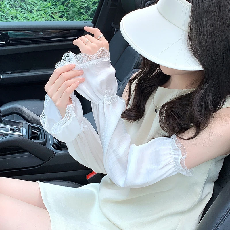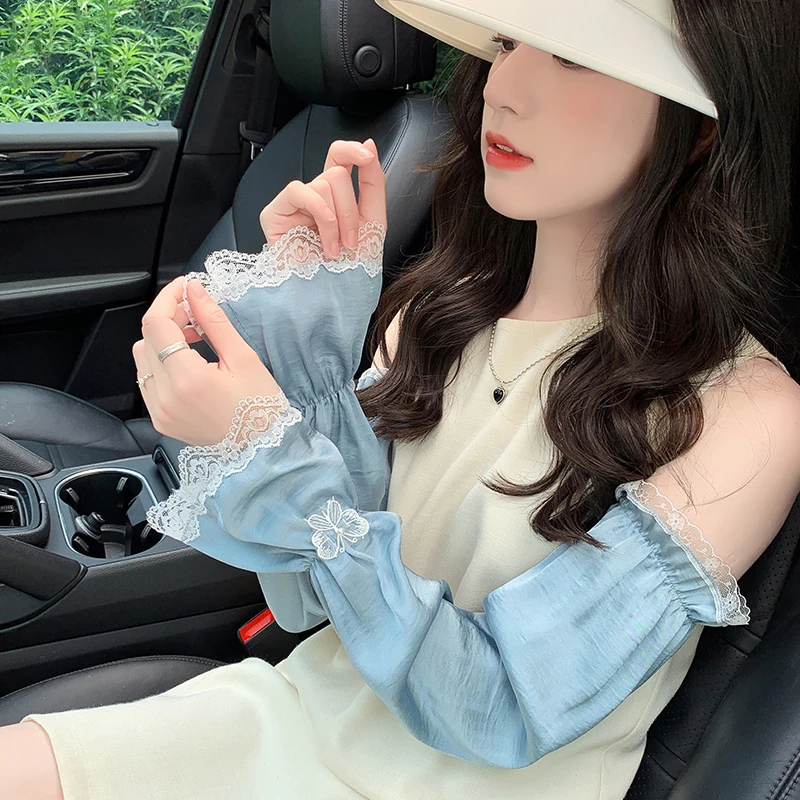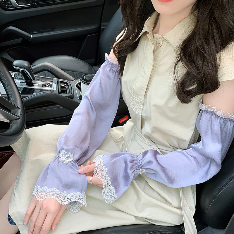 Summer Sun Protection Sleeves Loose Long Length Ice Silk UV Protection Fake Sleeve Driving Lace Butterfly Cycling Thin Arm Glove