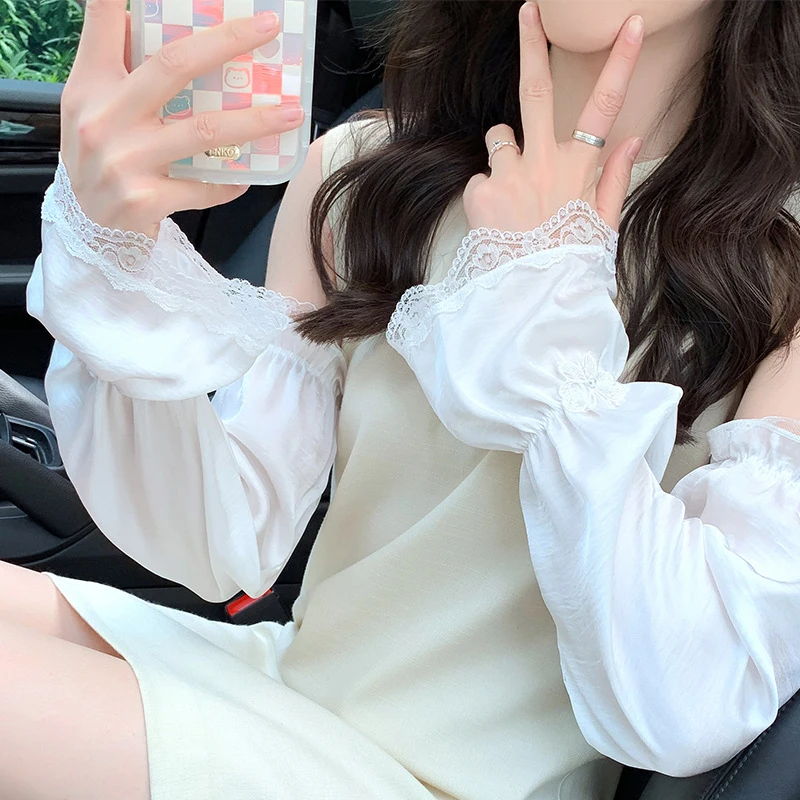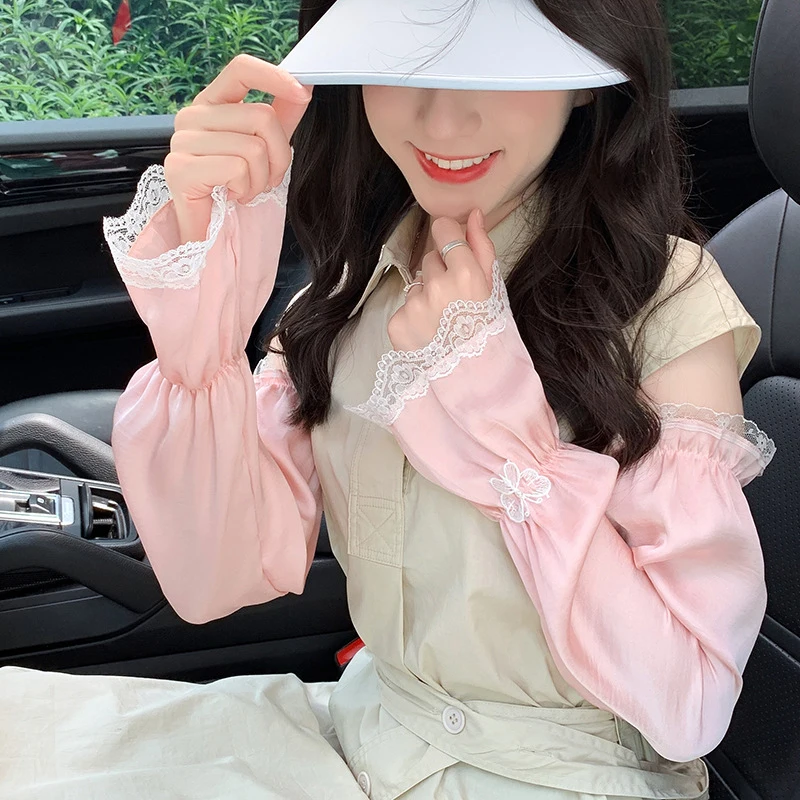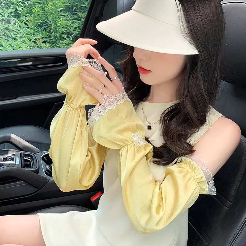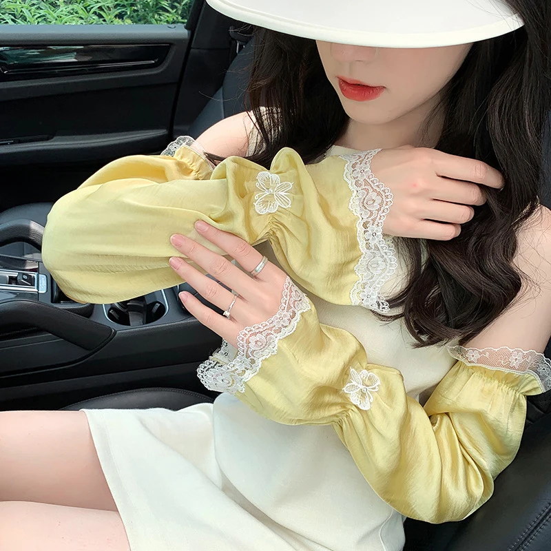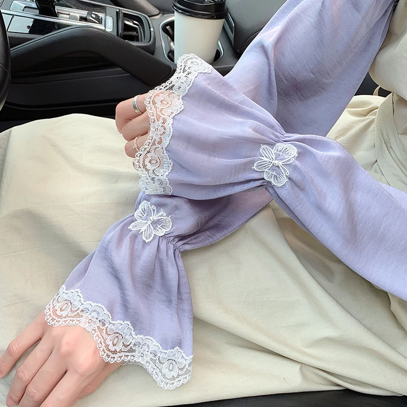 Summer Sun Protection Sleeves Loose Long Length Ice Silk UV Protection Fake Sleeve Driving Lace Butterfly Cycling Thin Arm Glove