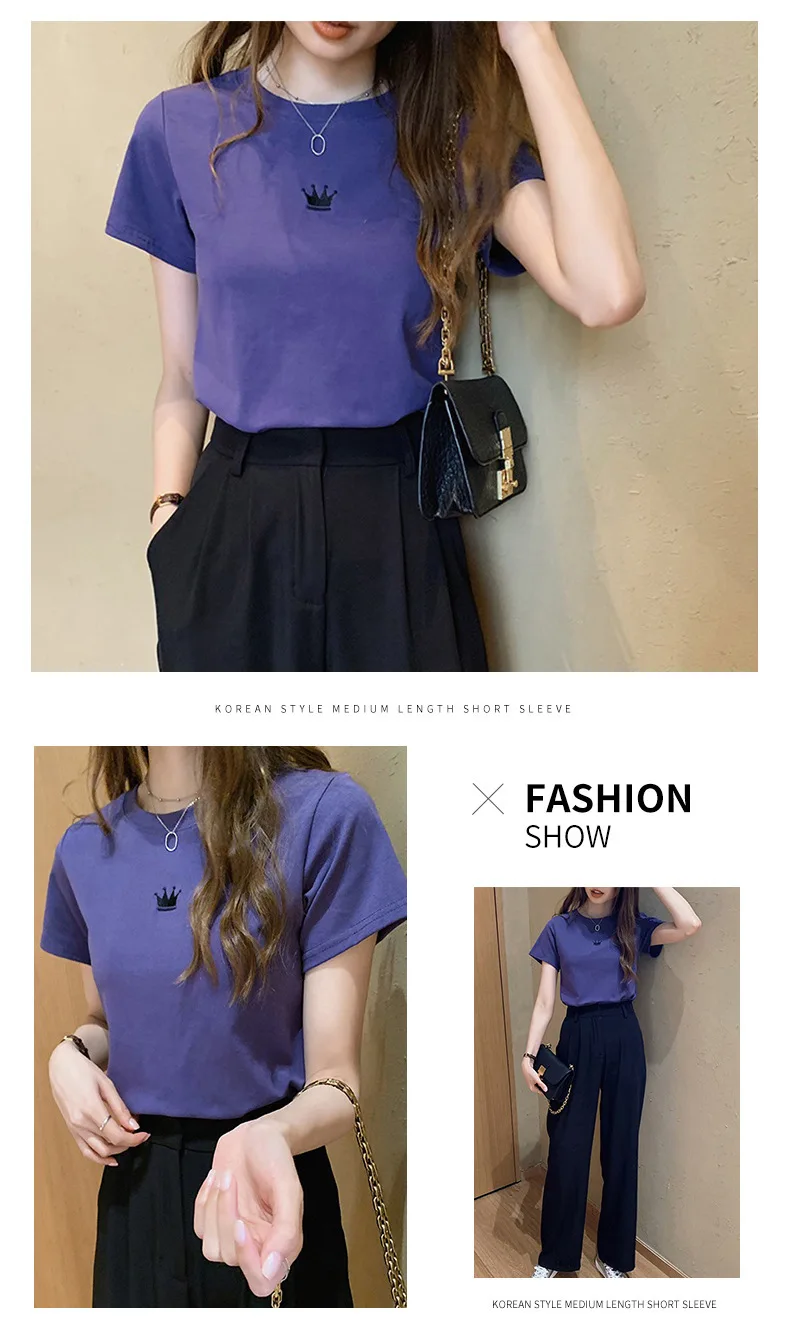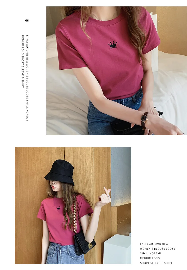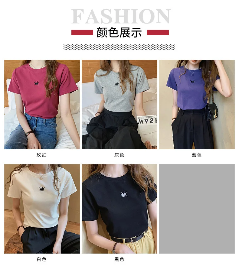 New Crown Print T-shirt Girl Short Sleeves Female Clothes Fashion Youth Round Neck Tops T-shirt Gift