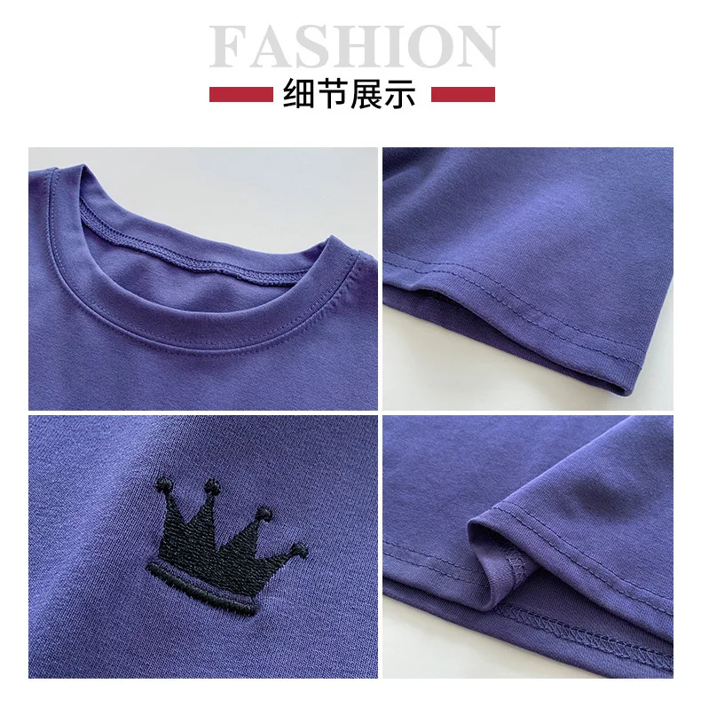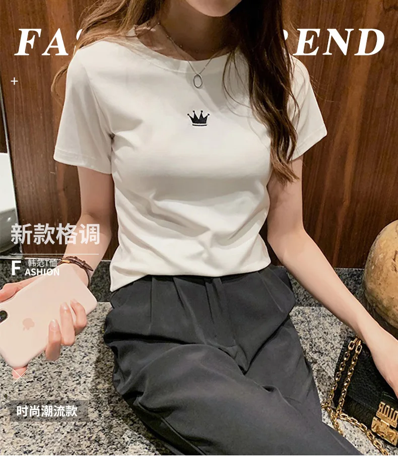 SunmmerNew Crown Print T-shirt Girl Short Sleeves Female Clothes Fashion Youth Round Neck Tops T-shirt Gift