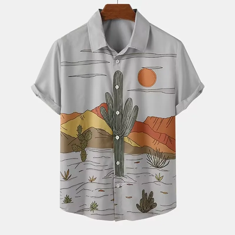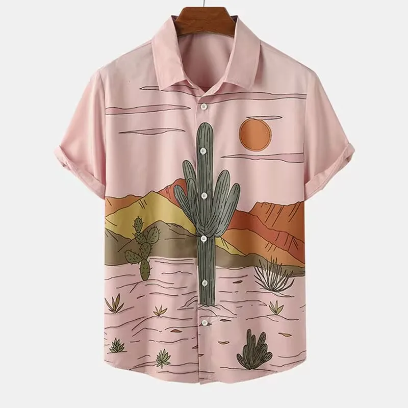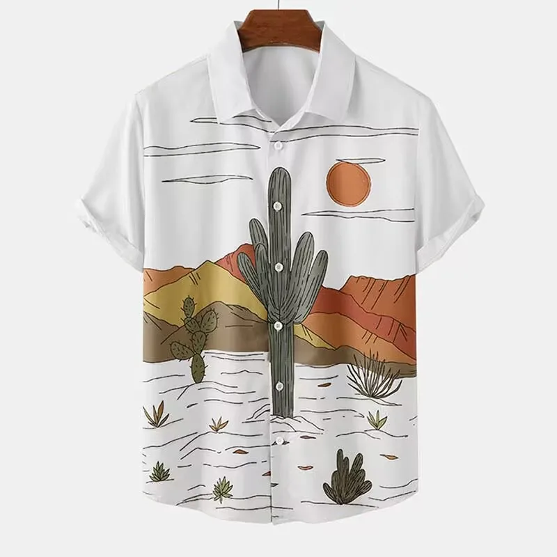 Sunrise Shirt For Men Fashion Short Sleeve Hawaiian Men's Shirt Lapel High-quality Men's Shirt Button Beach Vacation Blouse New
