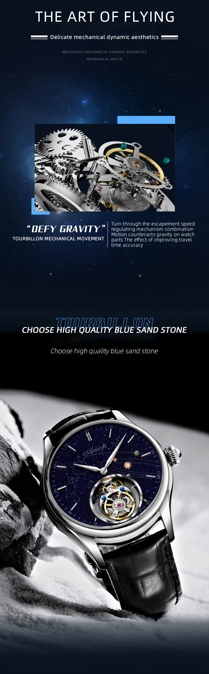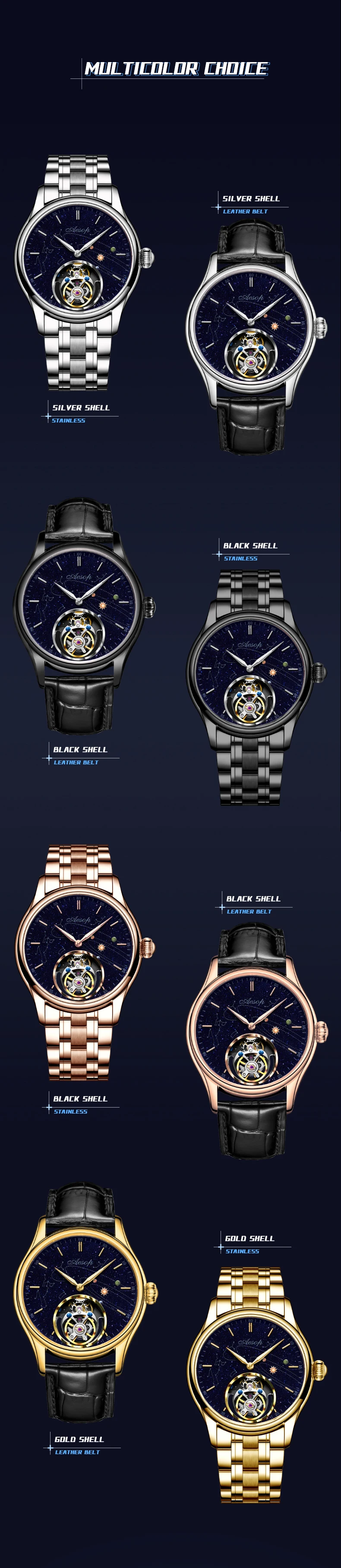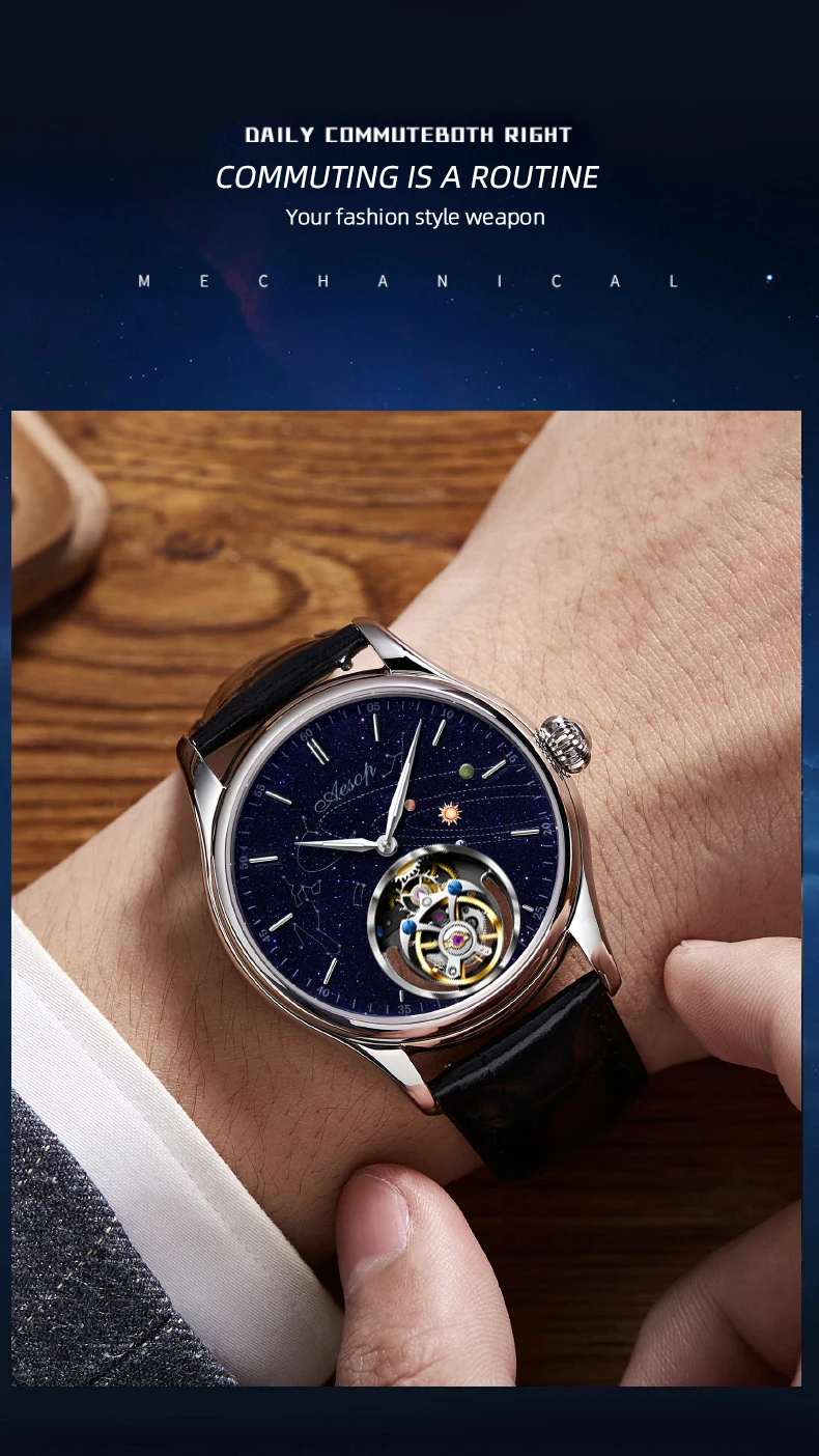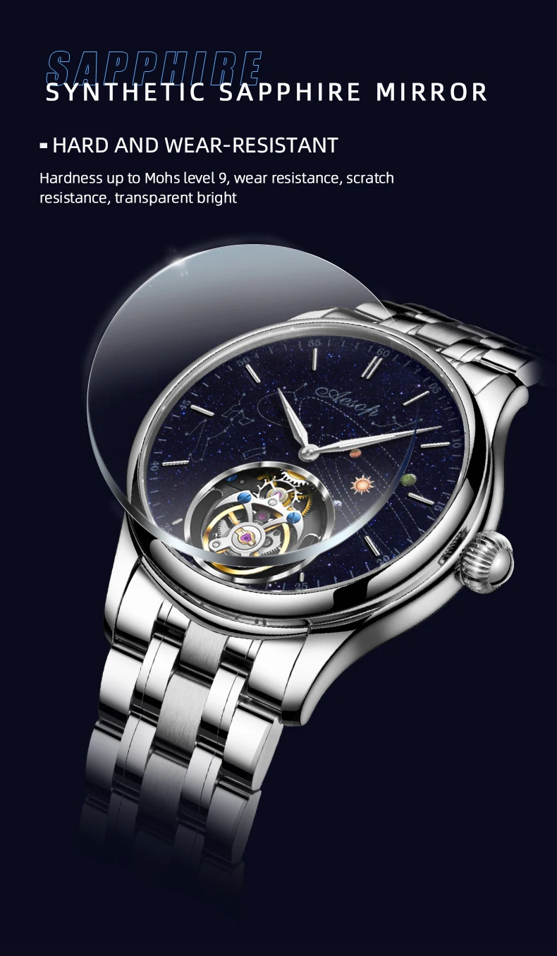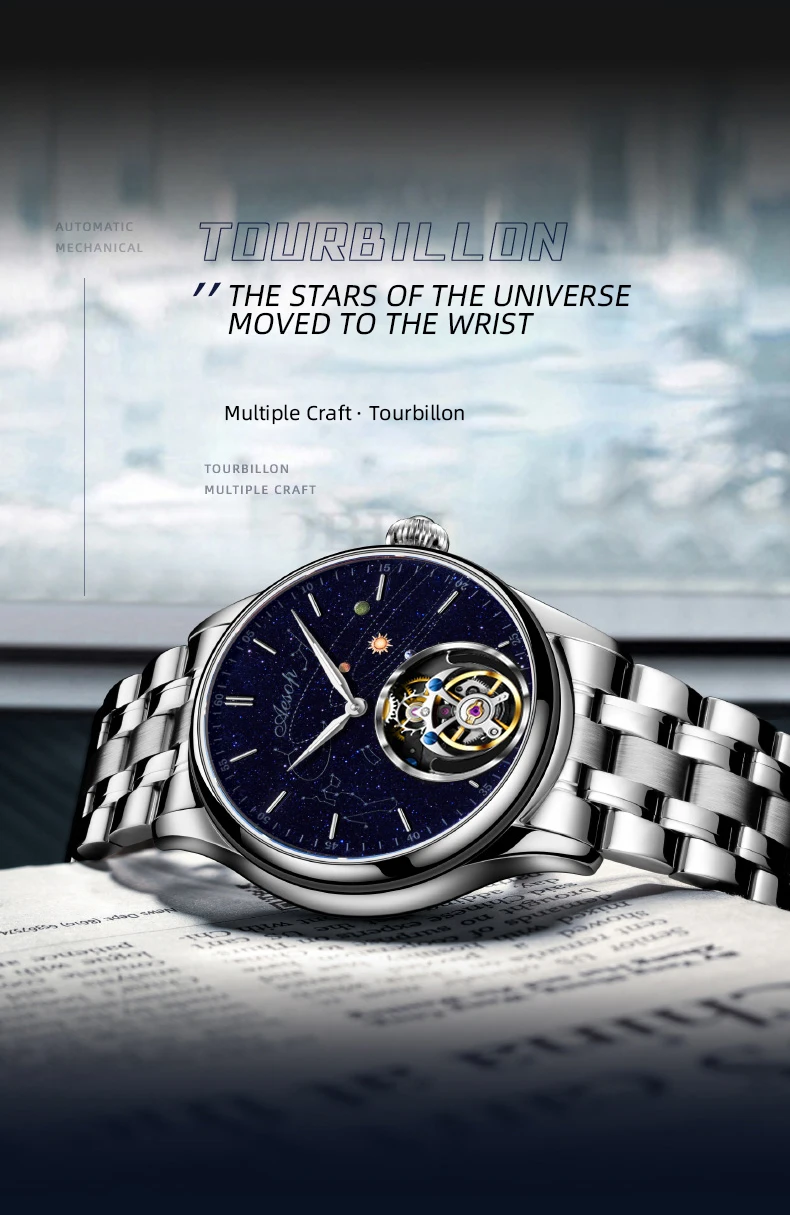 Super AESOP Flying Tourbillon Watch for Men Milky Way Star Sapphire Dial Luxury Steel Band Male Mechanical Wrist Watches 1963