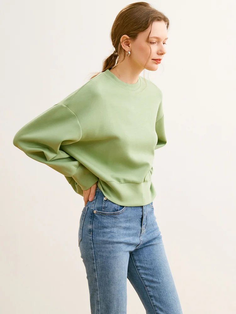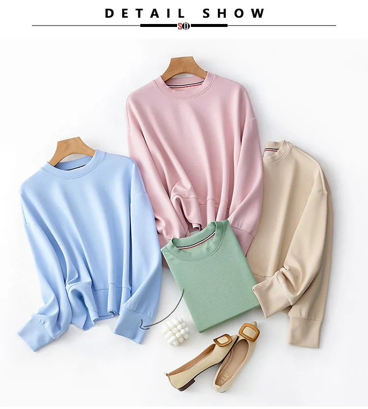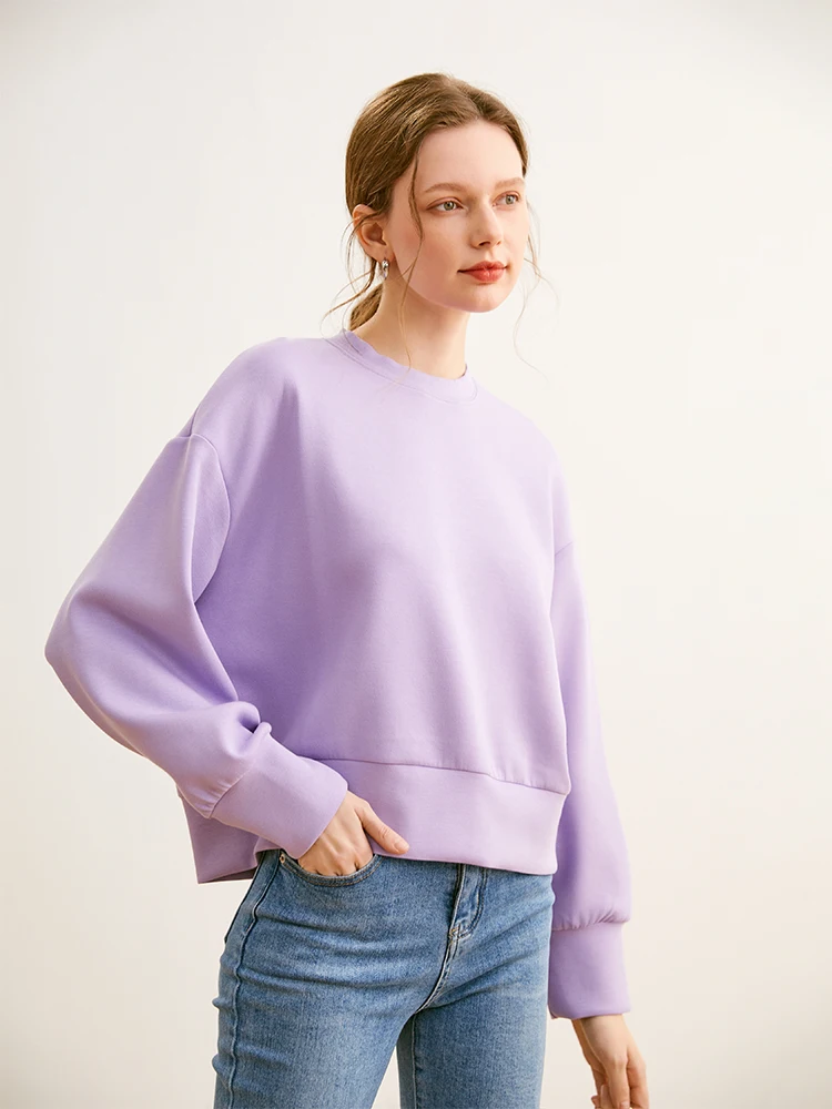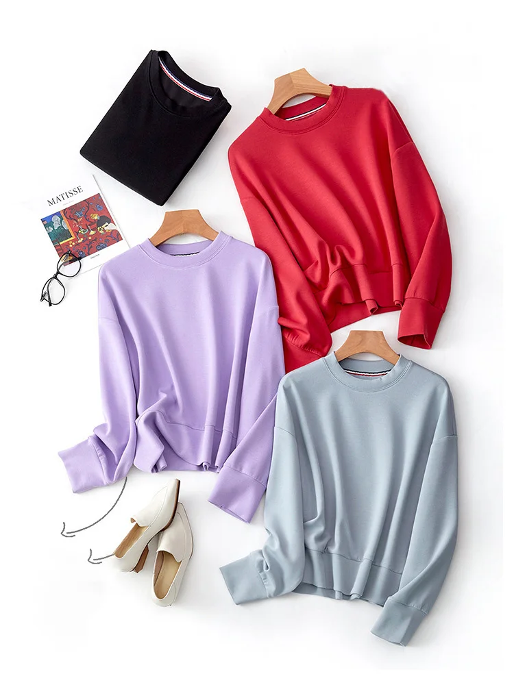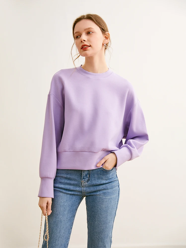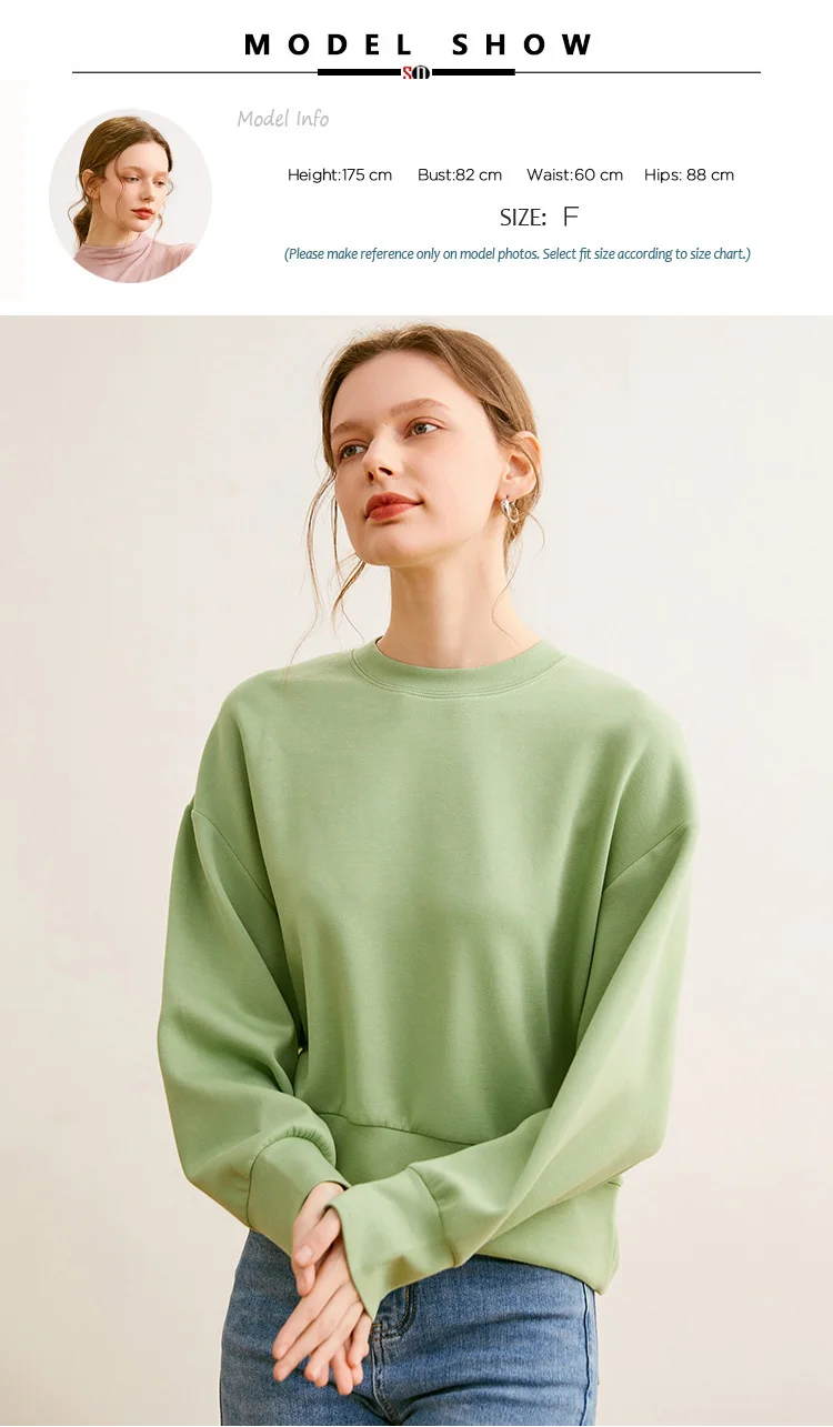 SuyaDream Woman Spring Hoodies Viscose Blend Drop-shoulder O-Neck Sweatshirts Basic Pullover