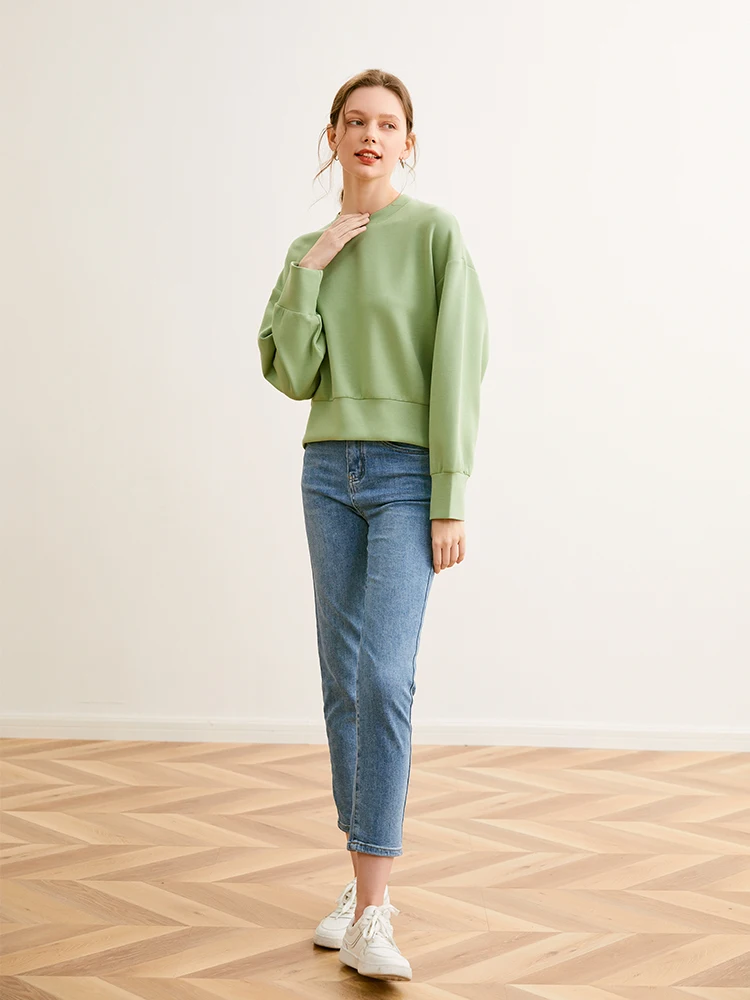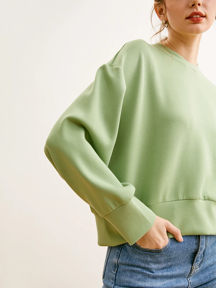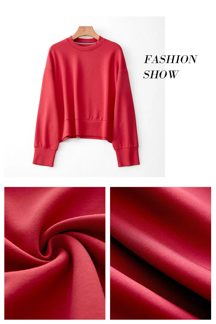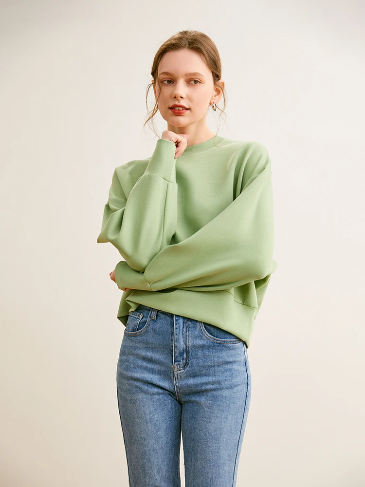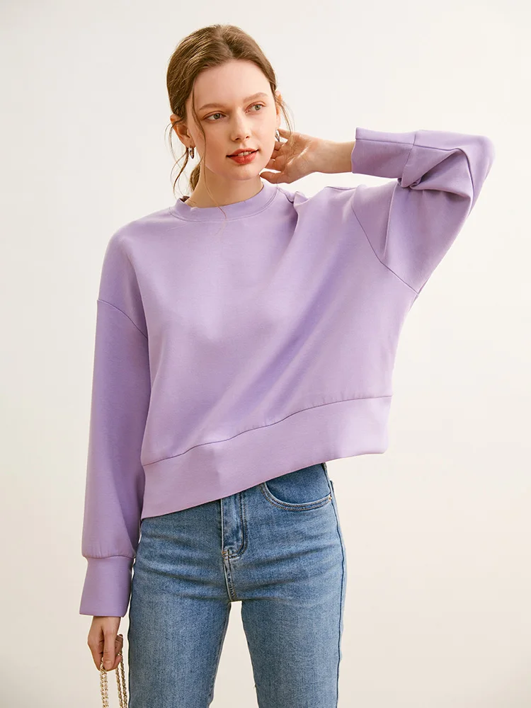 SuyaDream Woman Spring Hoodies Viscose Blend Drop-shoulder O-Neck Sweatshirts Basic Pullover