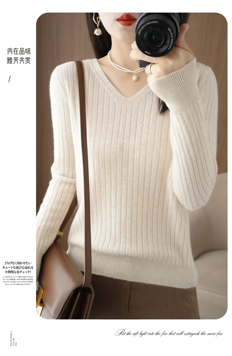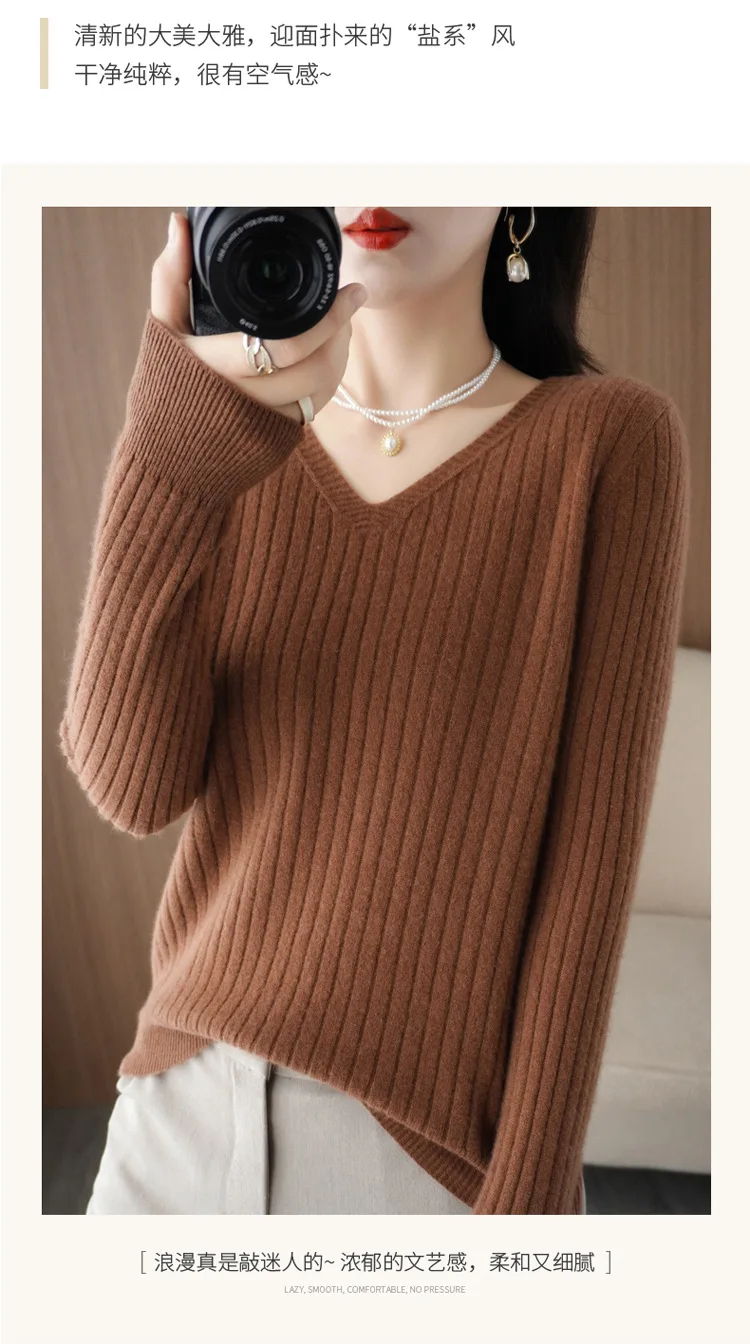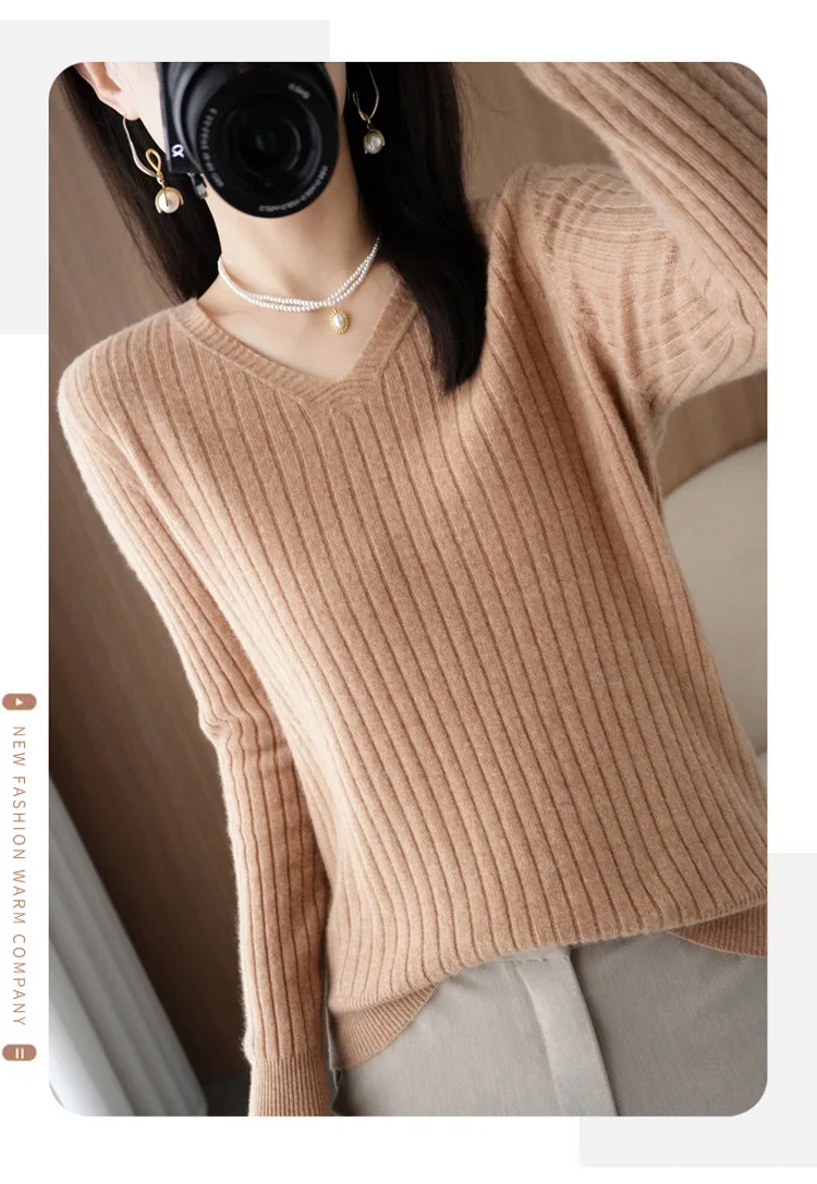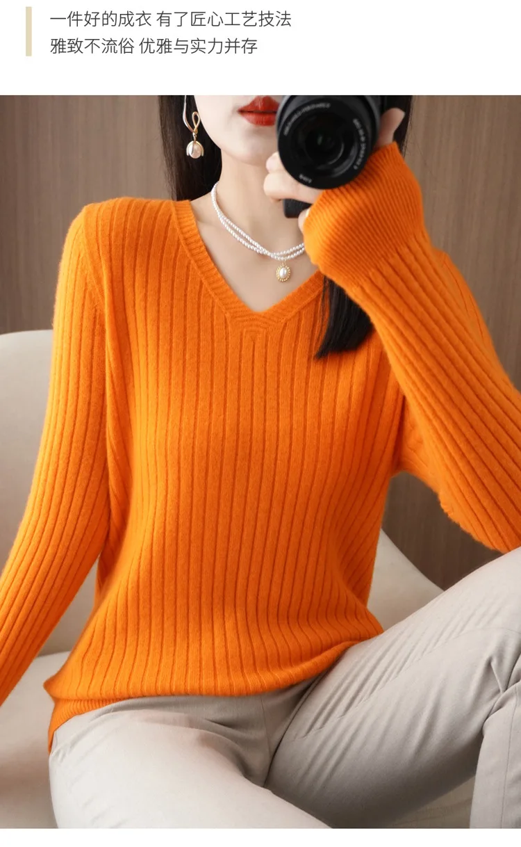 Sweater Women Autumn Winter Women Sweaters Fashion V-neck Cashmere Sweater Women Knitted Sweater Pullover 2022New Tops