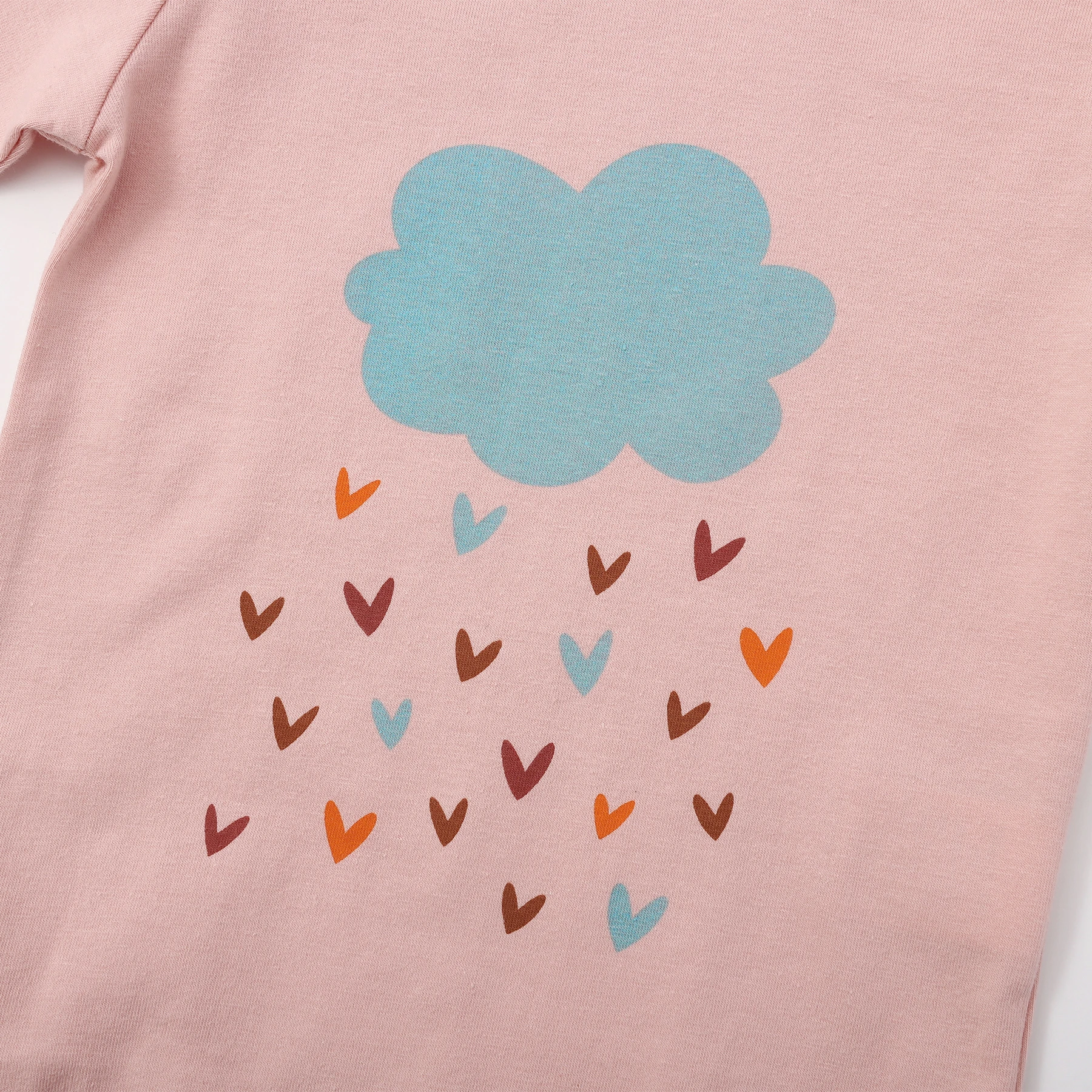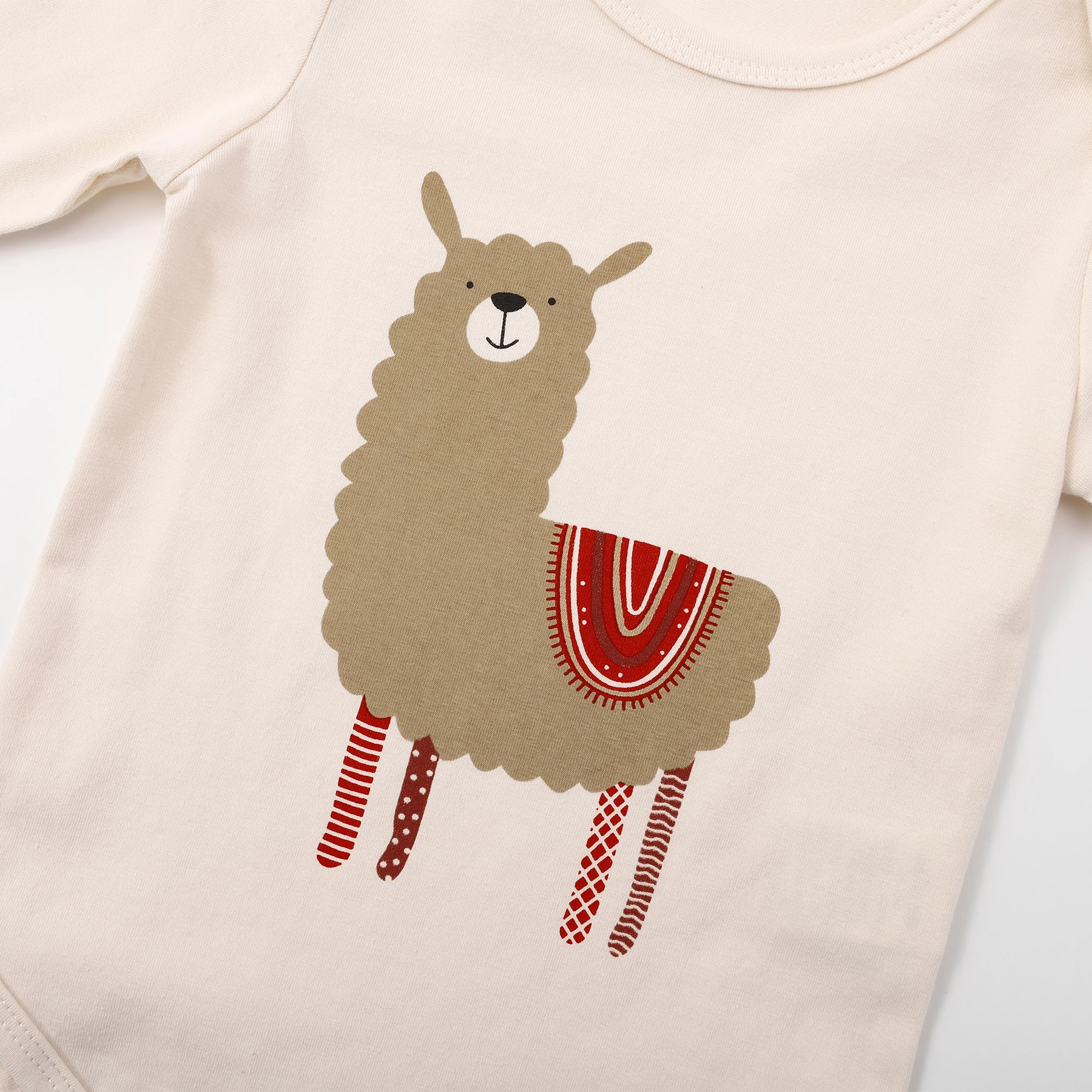 This product is handprinted using nontoxic, water-based inks on a poly cozy bodysuit or short sleeve toddler tee. The poly print is lovely and vibrant.