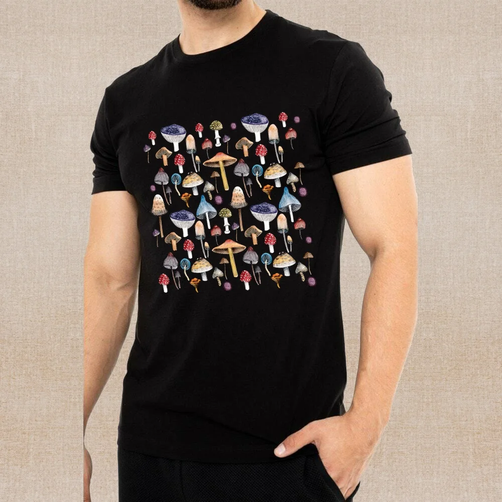 T Shirt Fashion Brand Hot Sale Mushroom Print Men's Summer Short Sleeve T-Shirt Men Casual O-Neck Pullover Comfortable Tops Tees