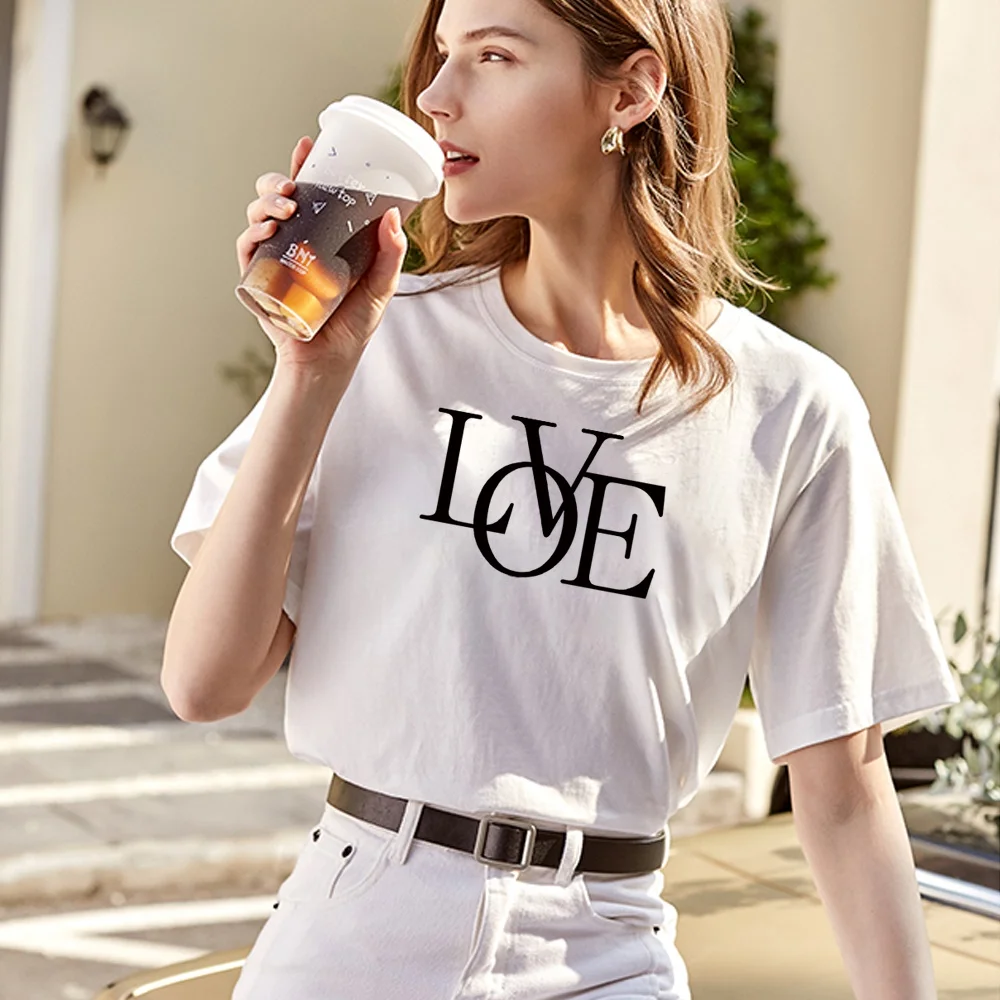 T Shirt Text Printed Women Tops Tees Harajuku Tshirt 2022 Streetwear Hip Hop T-shirts Casual Loose O-neck Clothes Short Sleeve