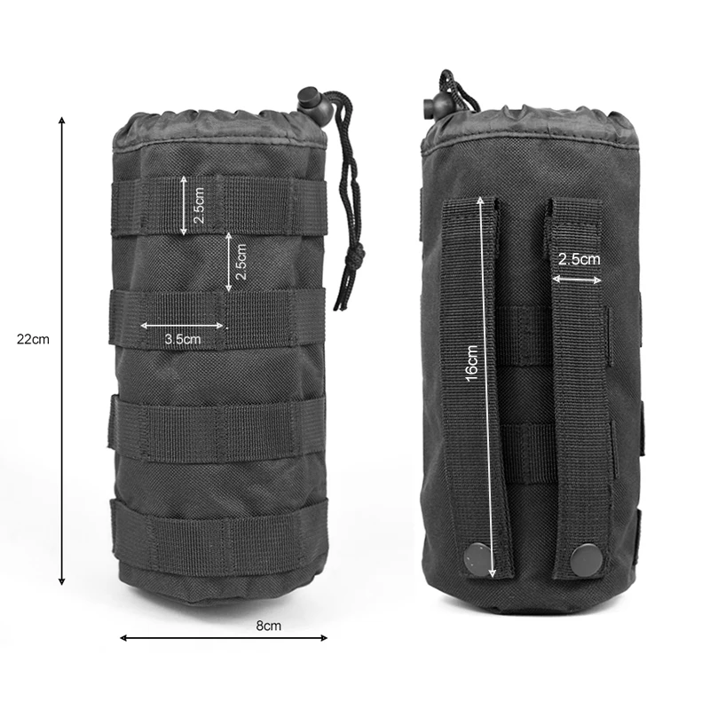 Tactical Water Bottle Bag Multi-Function Outdoor Adjustab Drawstrin Molly System Attached To Other Gear Nylon Hole Design