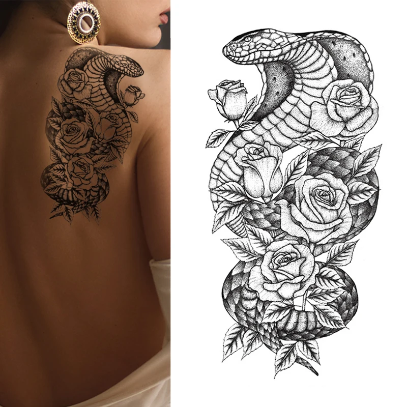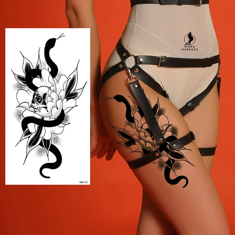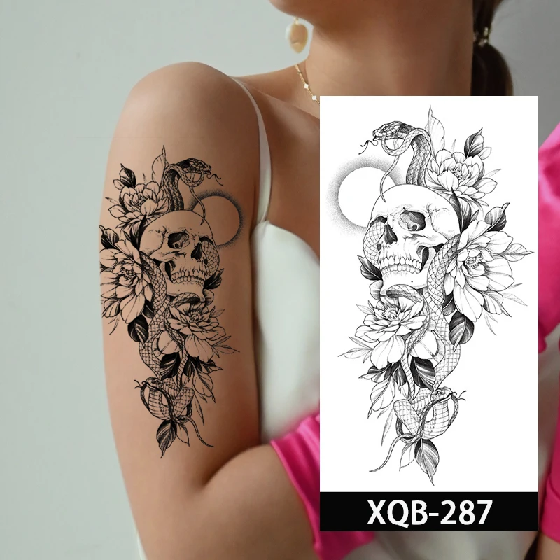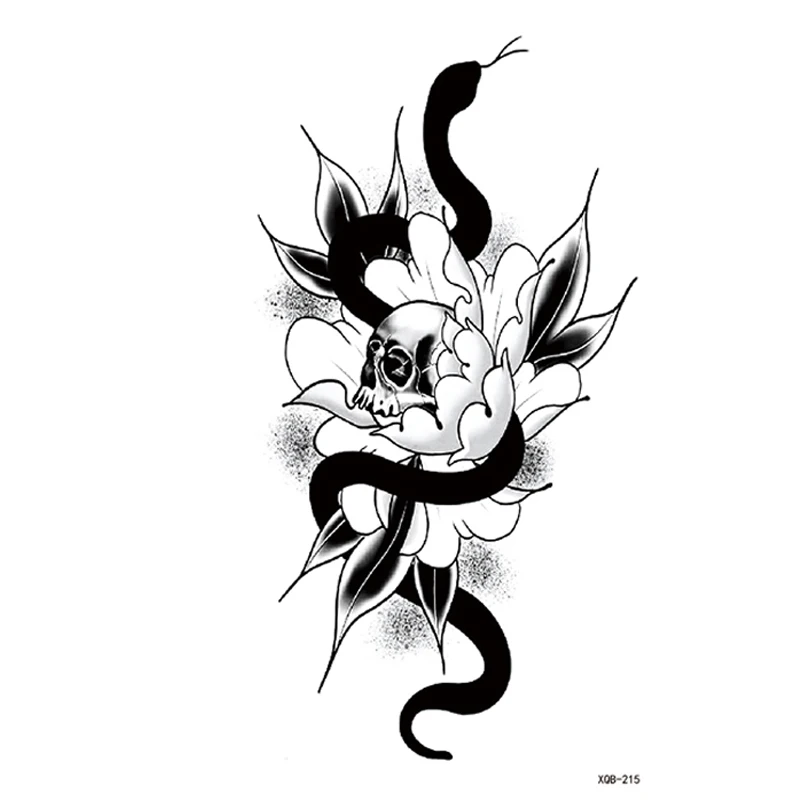 Tattoo Stickers Waterproof Semi Temporary Mamba Death Disciple Skull Snake Sexy Fake Tattoo For Men Women Hand Body Artist Gift