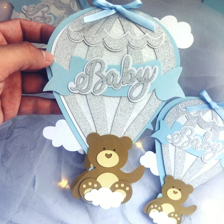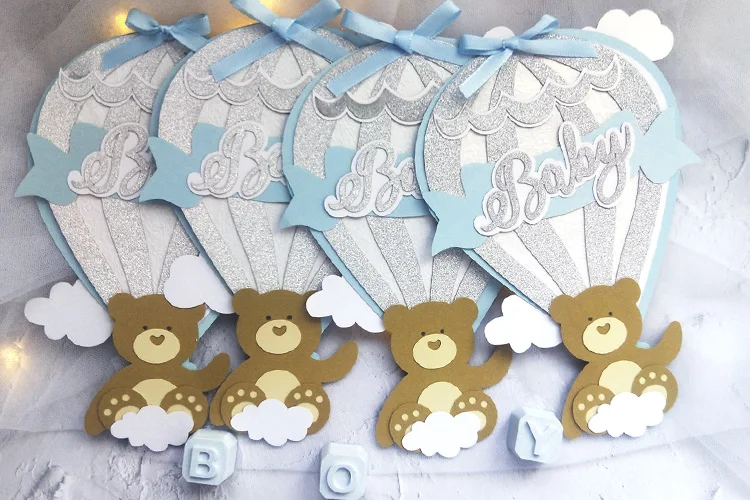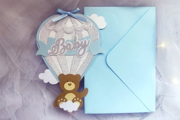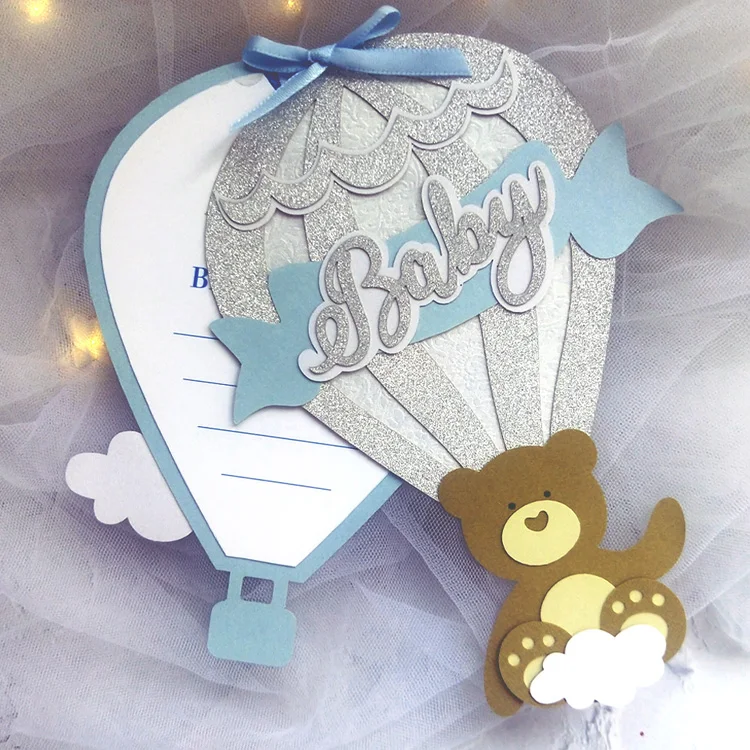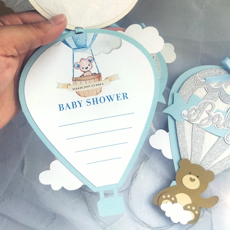Teddy bear invitation, hot air balloon invitation, handmade baby shower