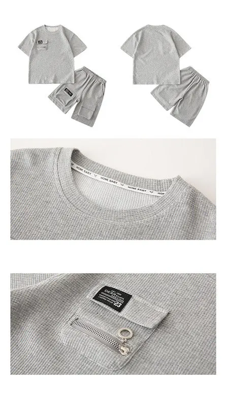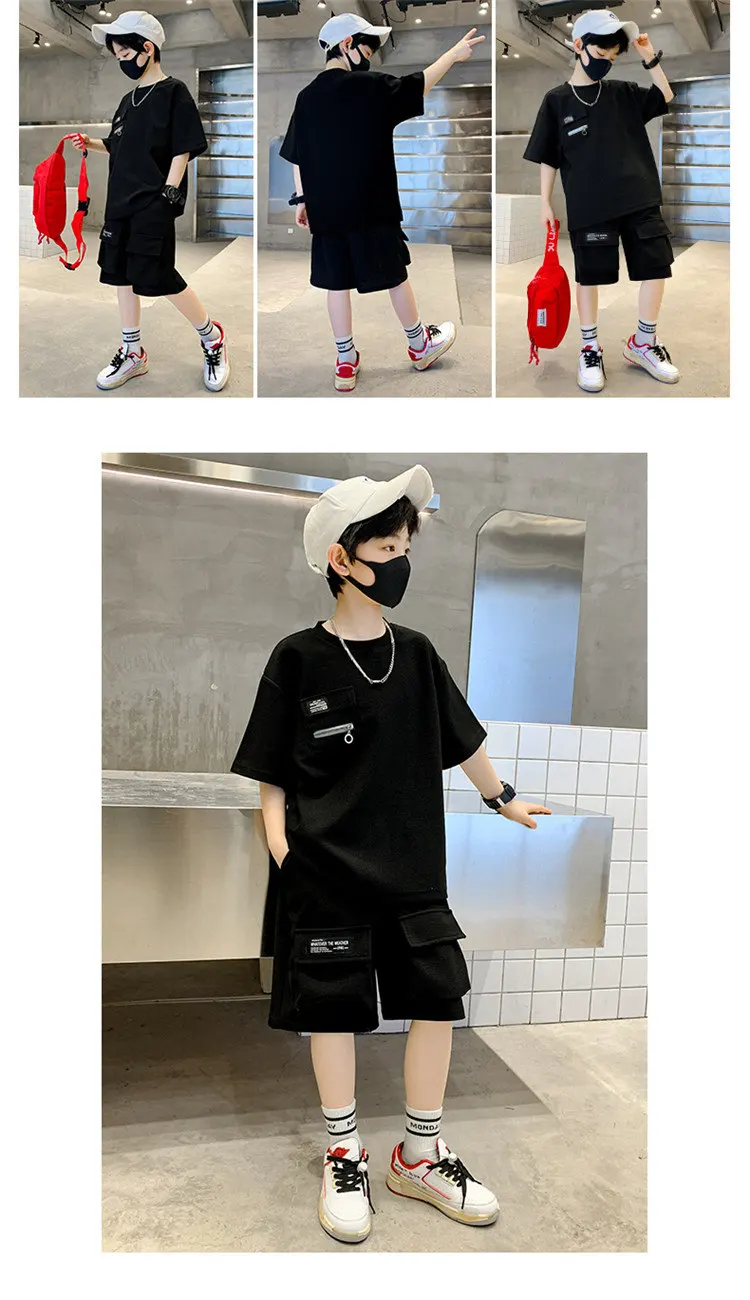 Teen Boys Clothing Sets Summer Black Grey Short Sleeve Tshirt+Shorts 2Pcs New Cool Kids Casual Style Loose Sport Outfits 5-14Yrs