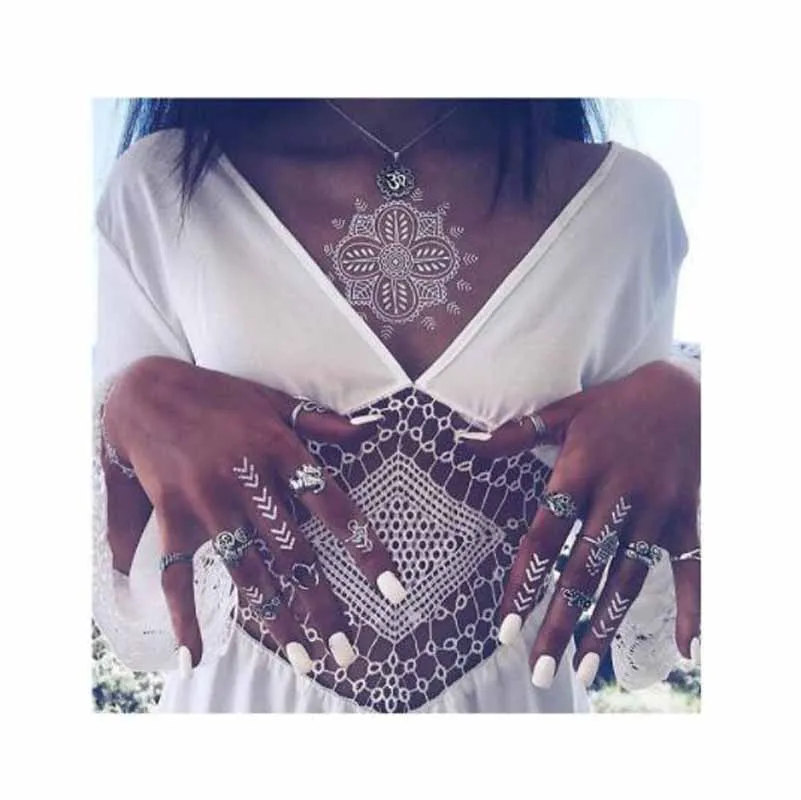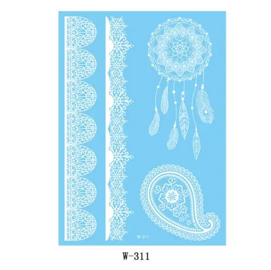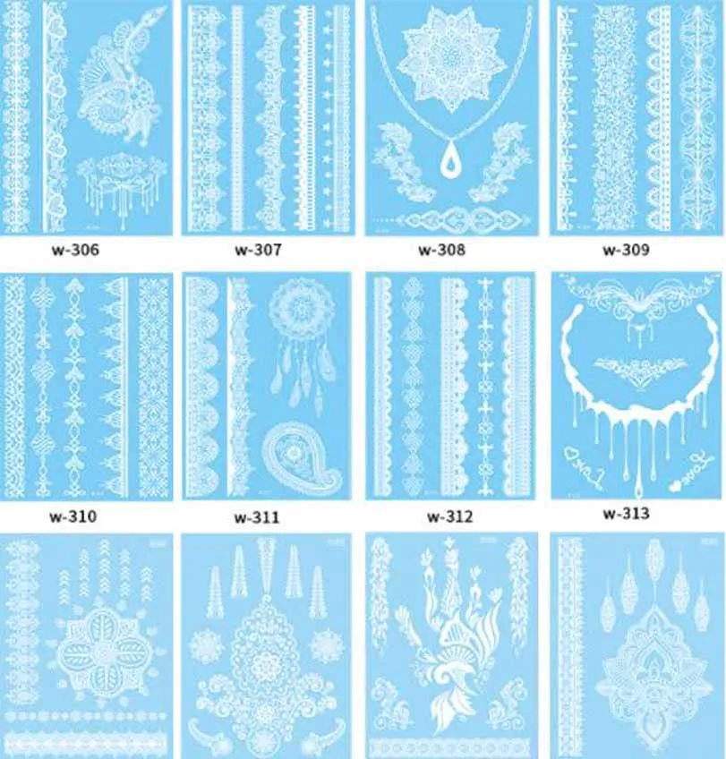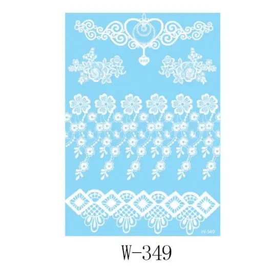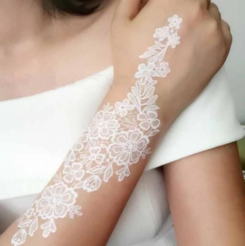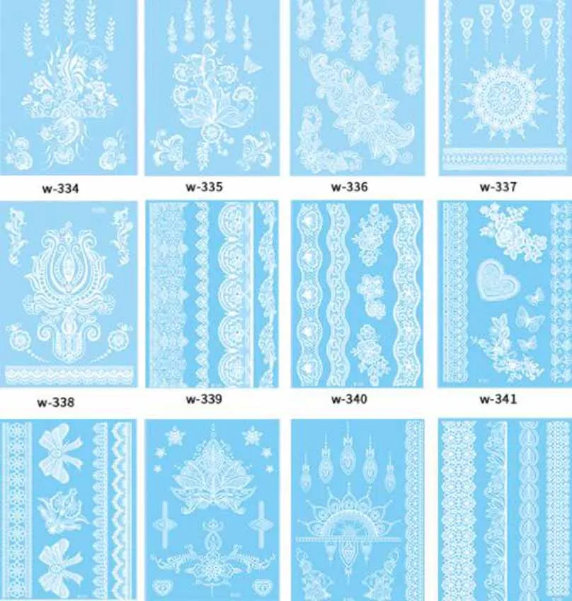 Temporary Tattoo Stickers Henna White Lace Body Art Wedding Bridal Party Waterproof Tattoo Stickers Water Transfer Fake Tattoos