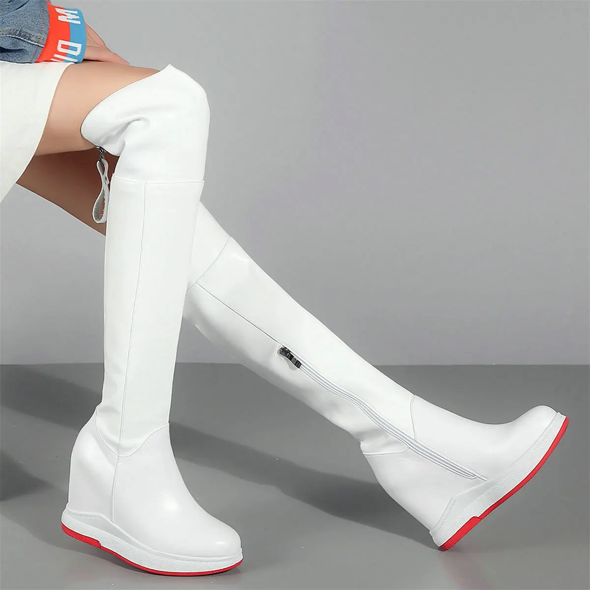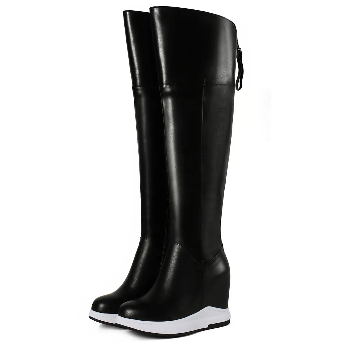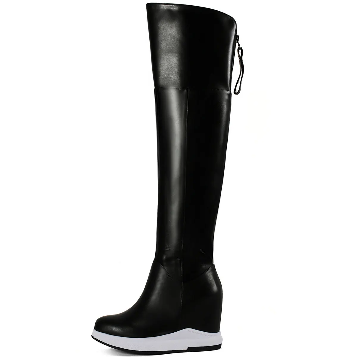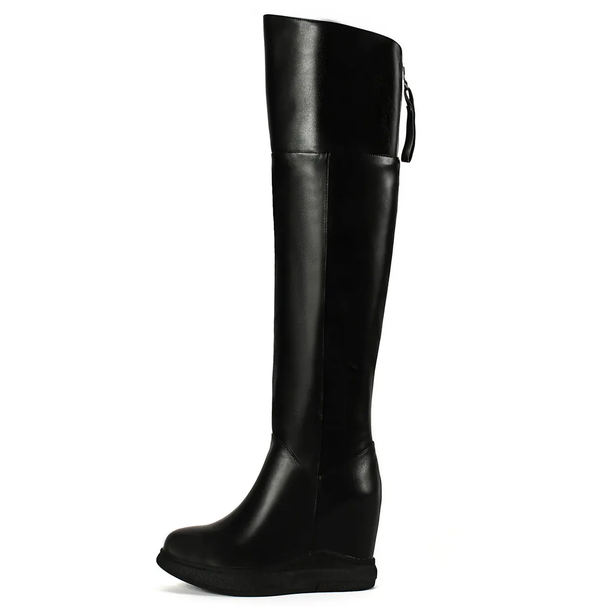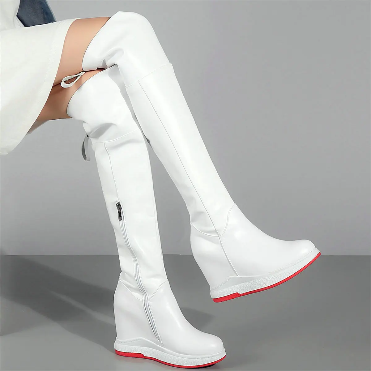 Thigh High Platform Pumps Shoes Women Genuine Leather Over The Knee High Boots Female Winter Wedges High Heel Fashion Sneakers