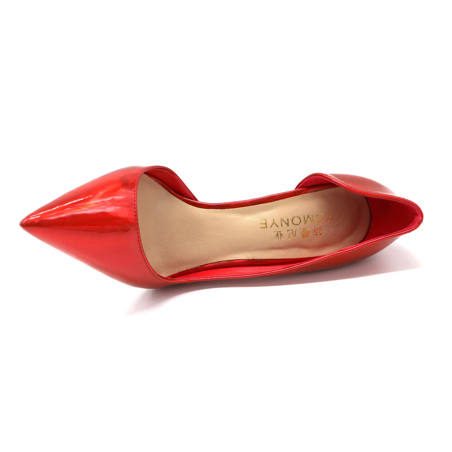 TOMONYE electro optic red patent pointed toe open inside night club sexy party evening women and men 12cm strange high heel shoe