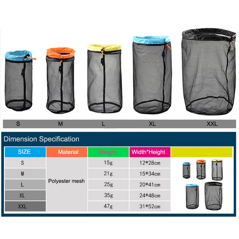 1.Ultra mesh stuff sacks are some of the lightest stuff sacks available to organize gear in your pack, suitcase, or bag.