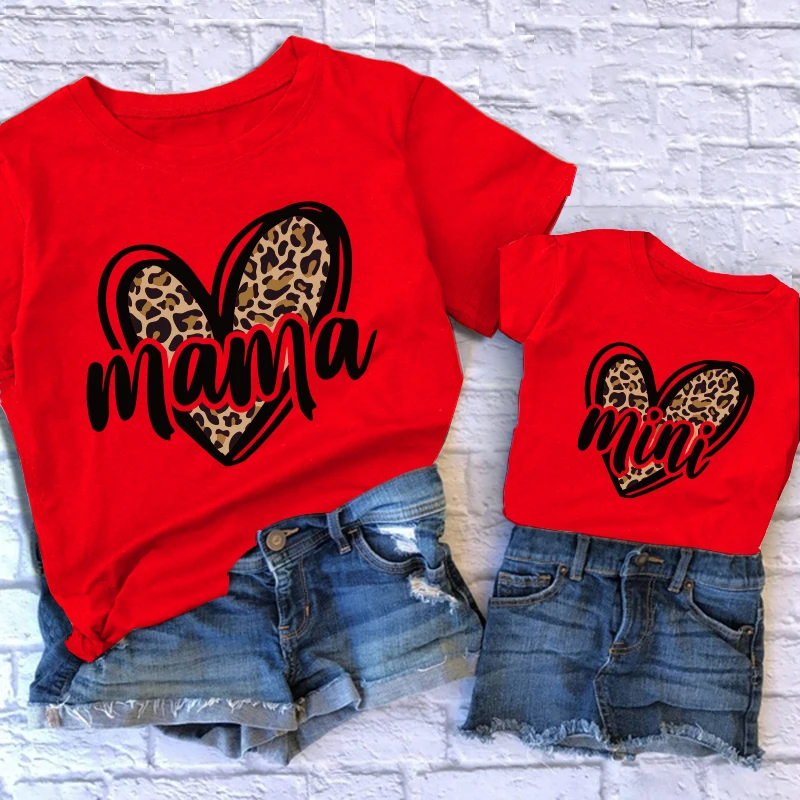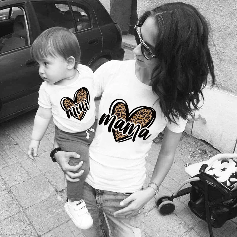 Tshirt family Leopard Love mother kids tshirts Baby Girl Clothes mama mini family matching outfits daughter family look clothes