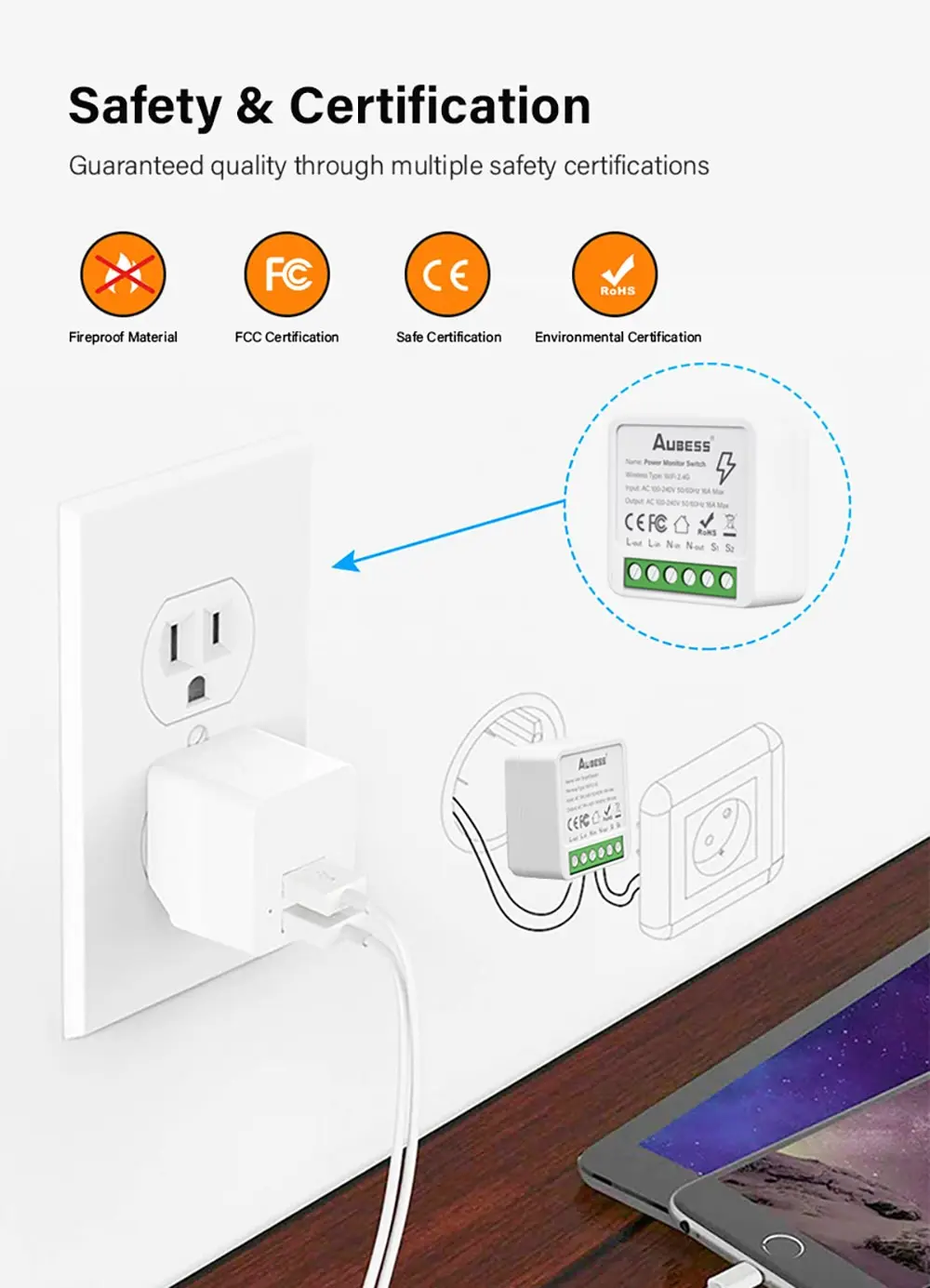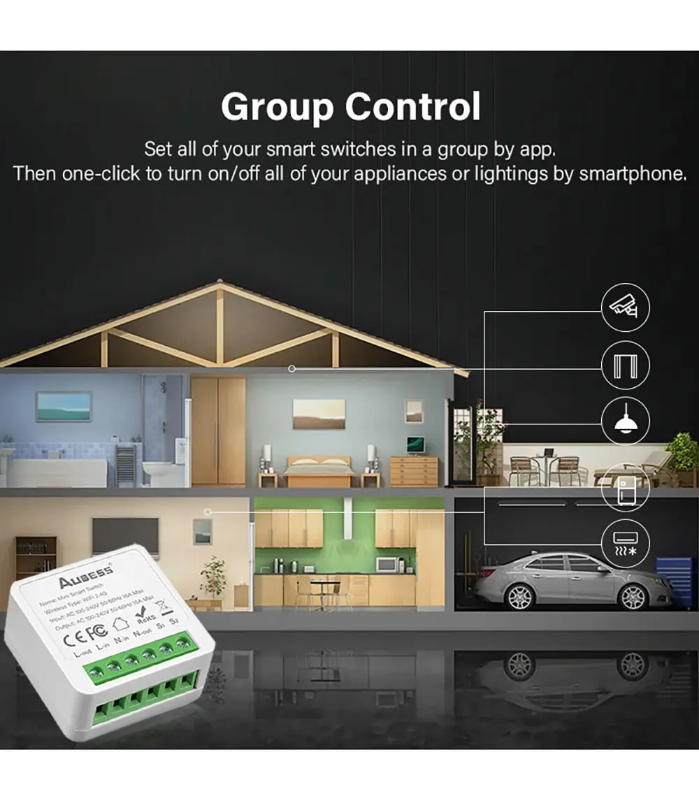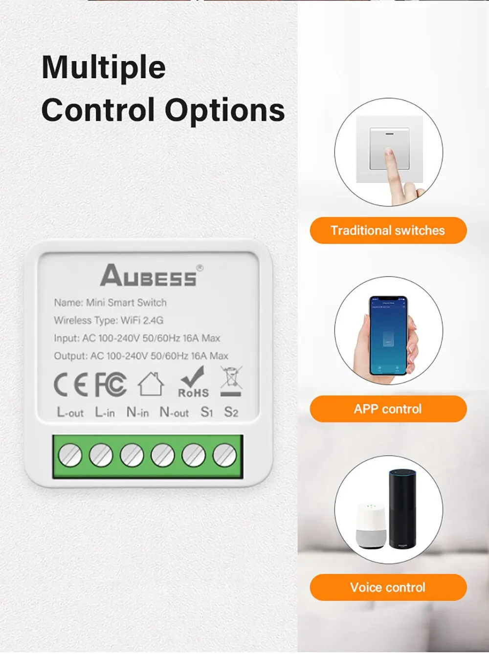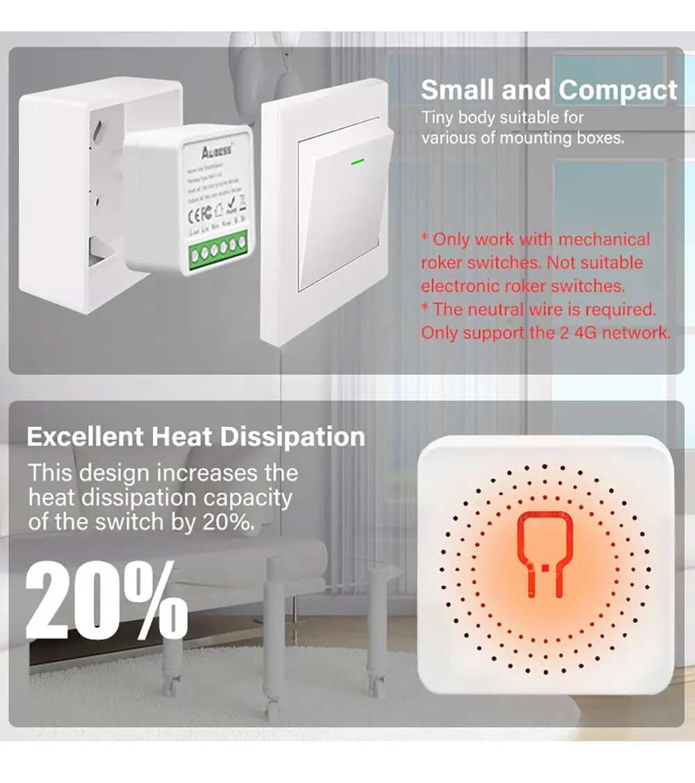 It can also be connected behind the switch to support single control switch and dual control switch. It can be directly installed in the switch box to hide the switch module. It can also be installed on the dual-control switch without affecting the use of the dual-control switch.