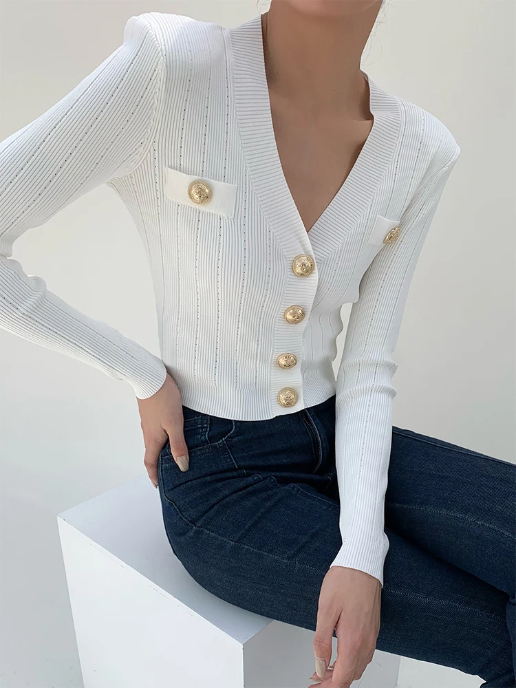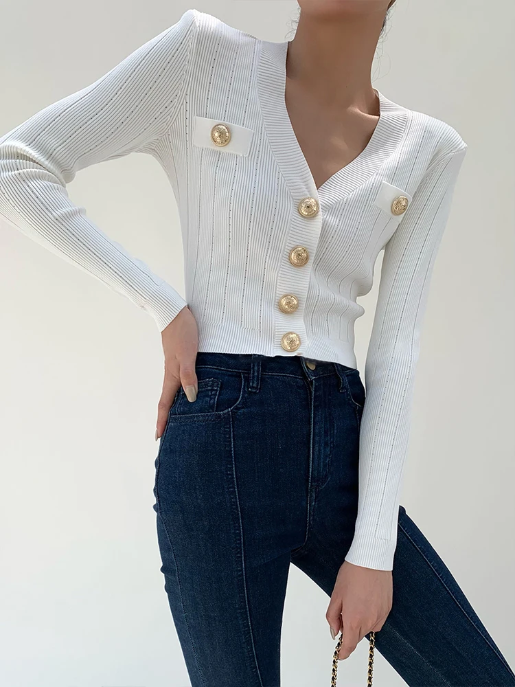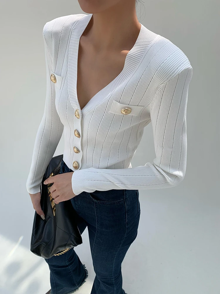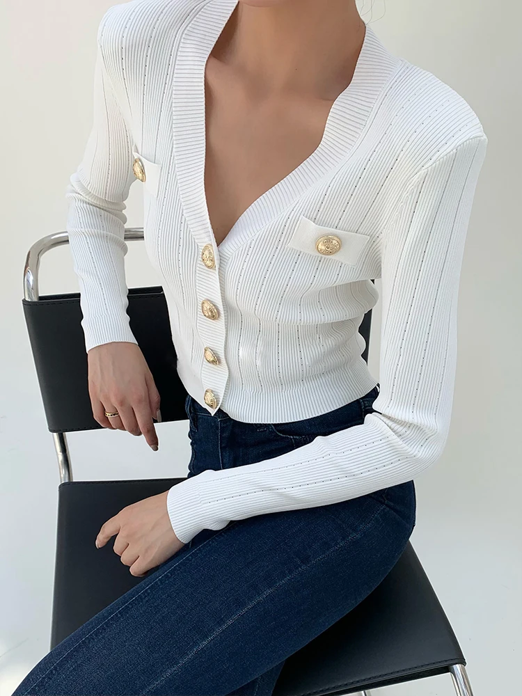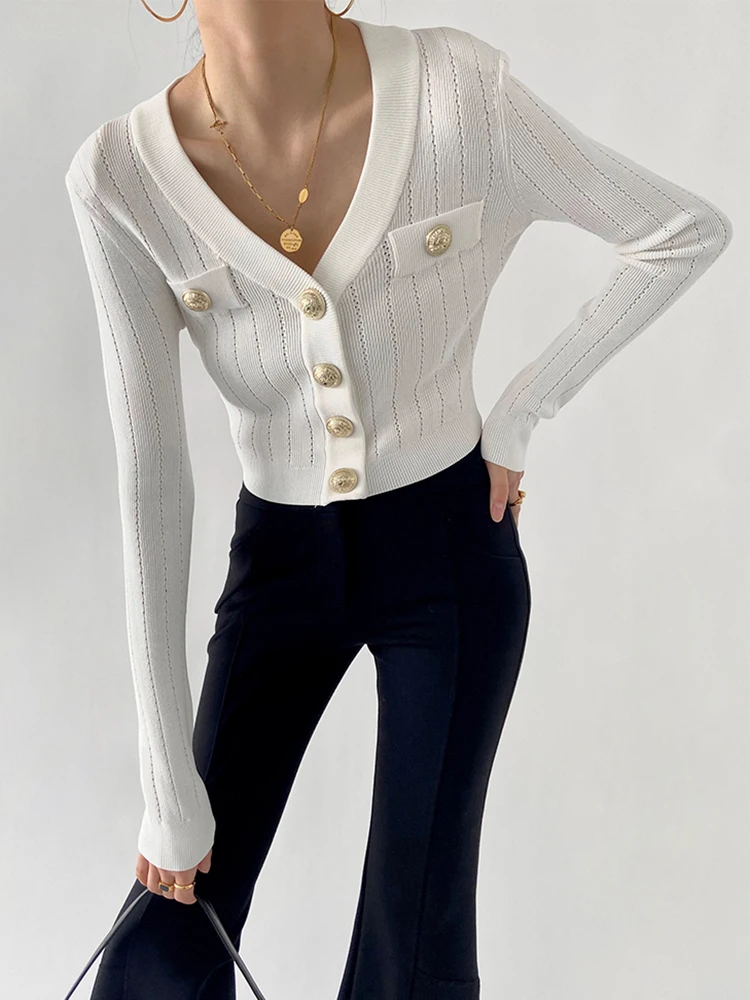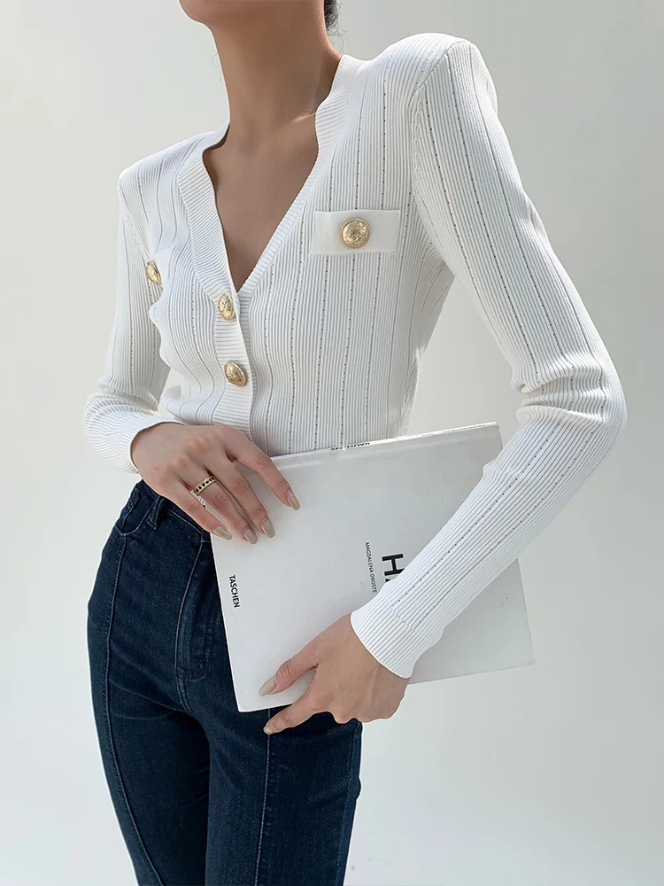 TWOTWINSTYLE Black Knitting Sweater For Women V Neck Long Sleeve Solid Minimalsit Elegant Cardigan Female Clothing Fashion Style