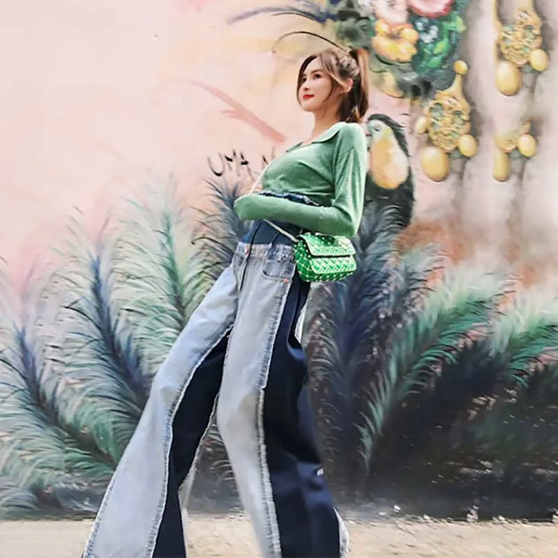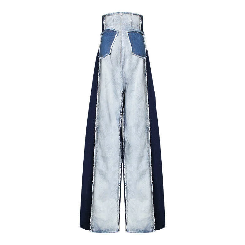 TWOTWINSTYLE Casual Denim Patchwork Women Trousers High Waist Hit Color Big Size Wide Leg Pants Female Fashion Spring 2020 New