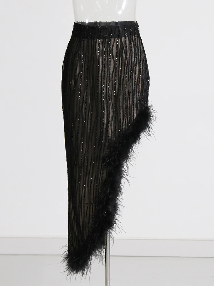 TWOTWINSTYLE Feathers Hem Skirt For Women High Waist Asymmetrical Solid Sexy Midi Skirts Female Clothing Summer Fashion New 2022