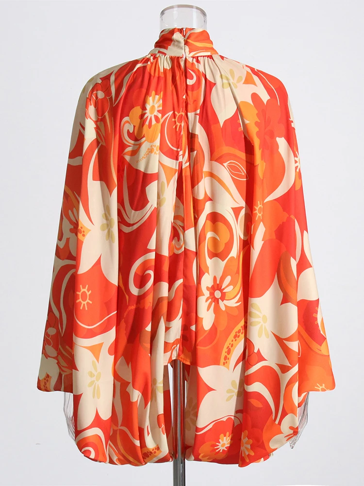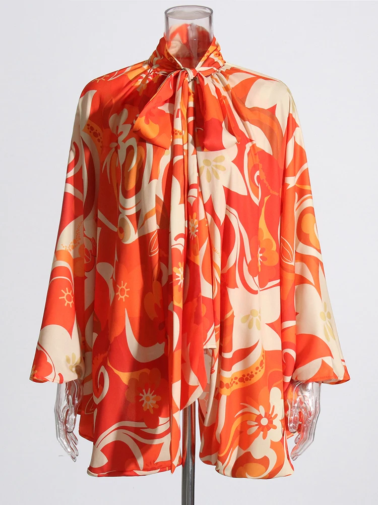 TWOTWINSTYLE Hit Color Shirts For Women V Neck Batwing Sleeve Patchwork Lace Up Temperament Blouse Female Autumn Clothing