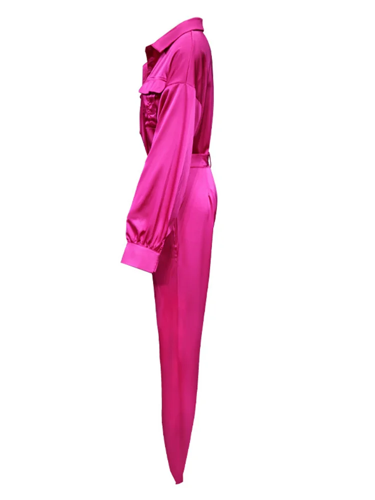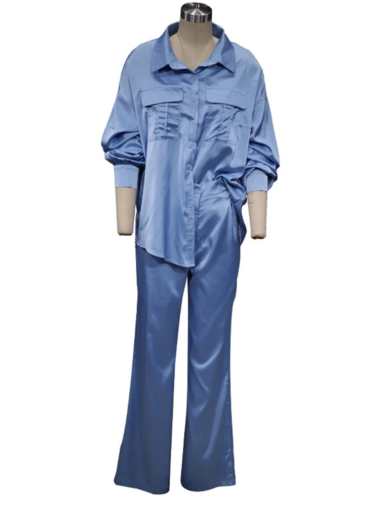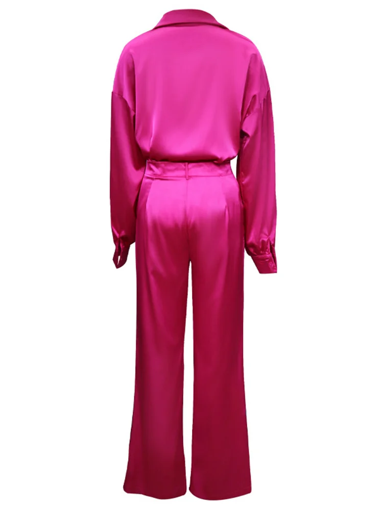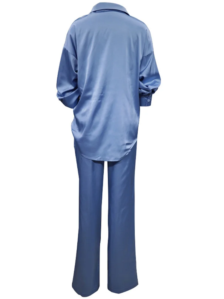 TWOTWINSTYLE Korean Sets Female Lapel Long Sleeve Single Breasted Shirts Loose Waist Wide Leg Trousers Solid Two Piece Set 2022