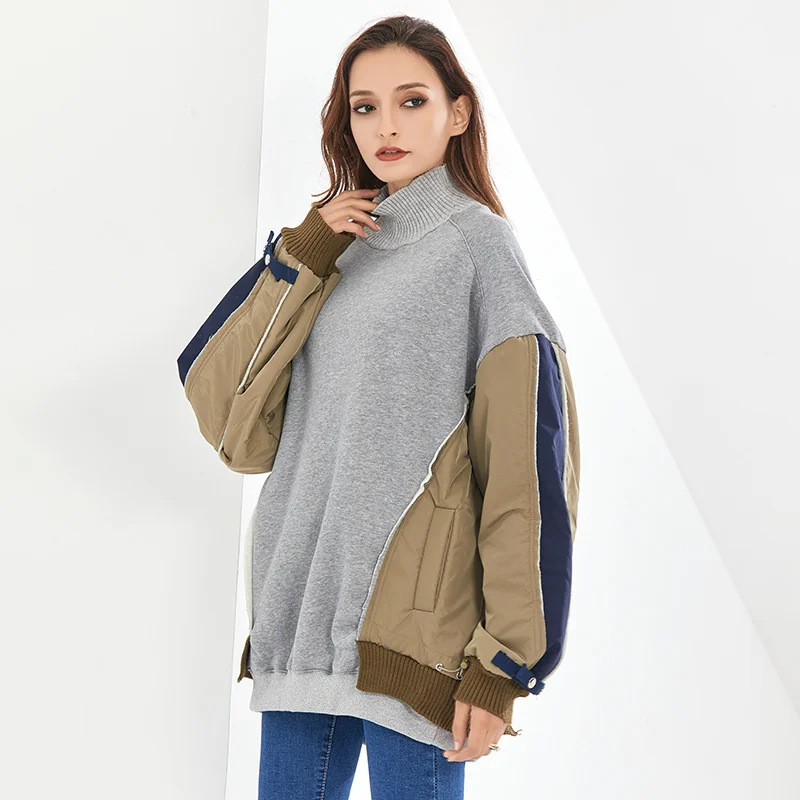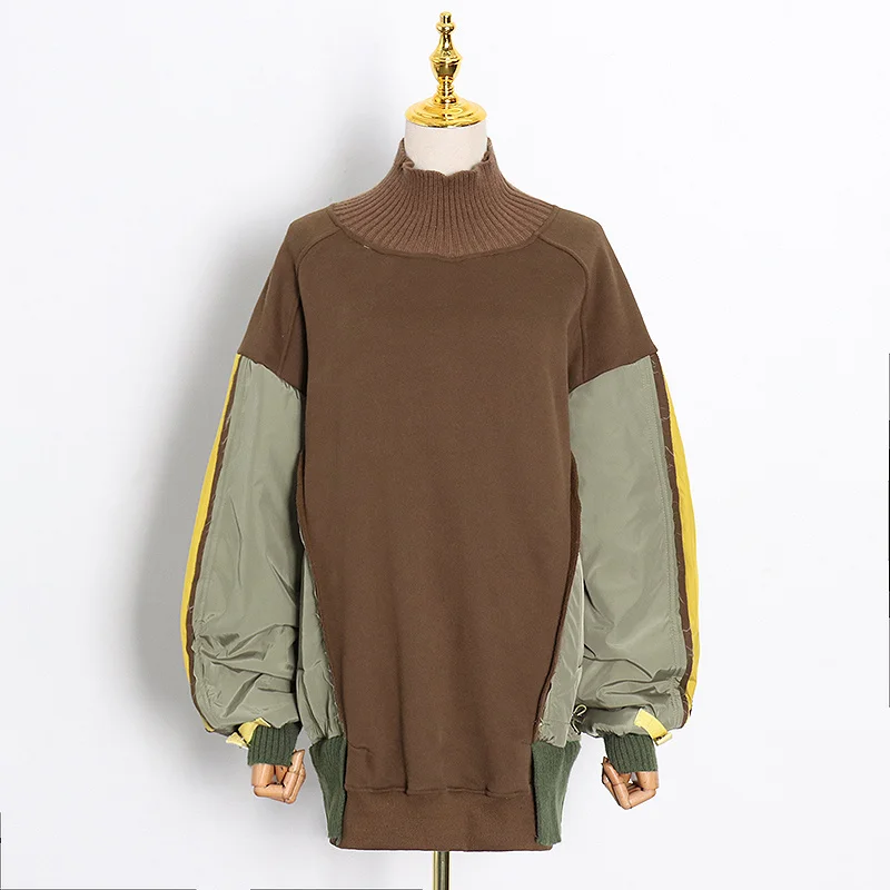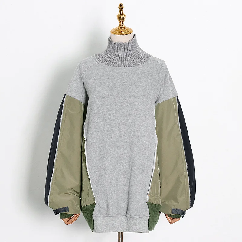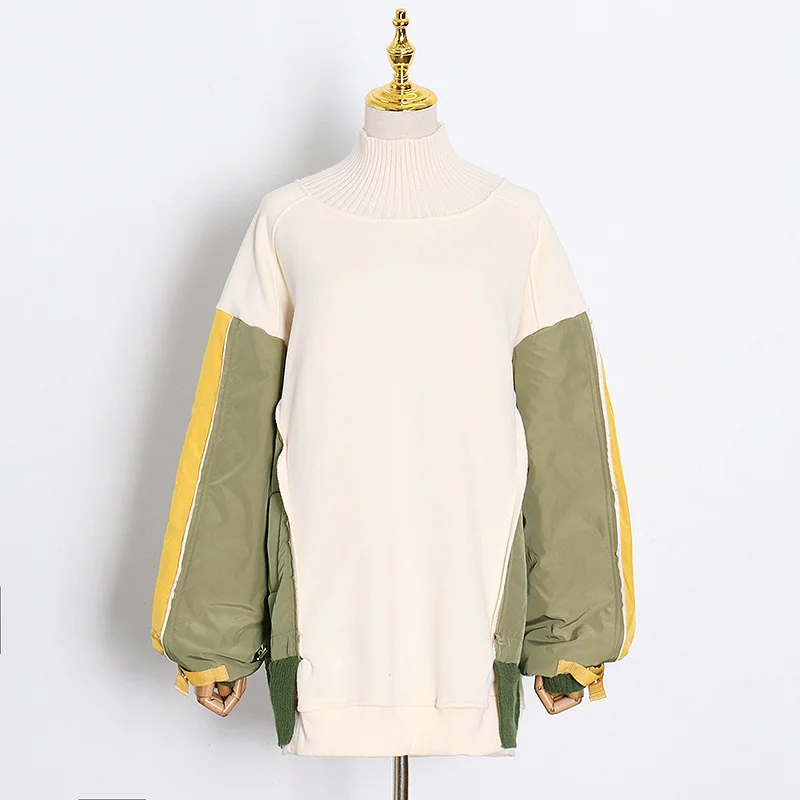TWOTWINSTYLE Patchwork Sweatshirt For Women Turtleneck Batwing Long Sleeve Hit Color Pullovers Sweatshirts Female Clothing