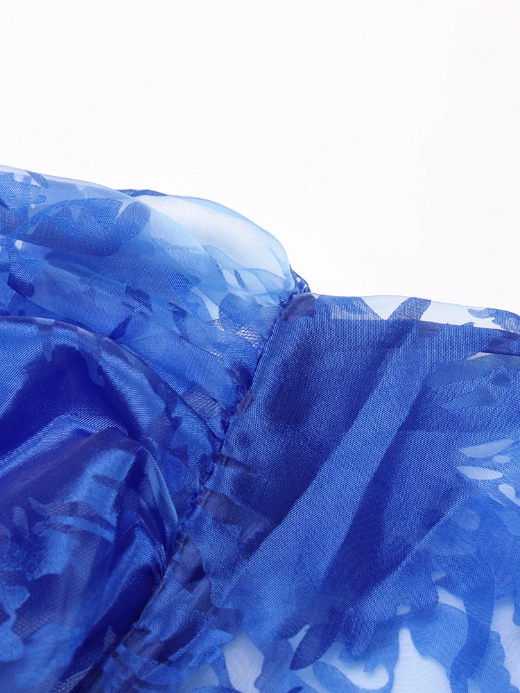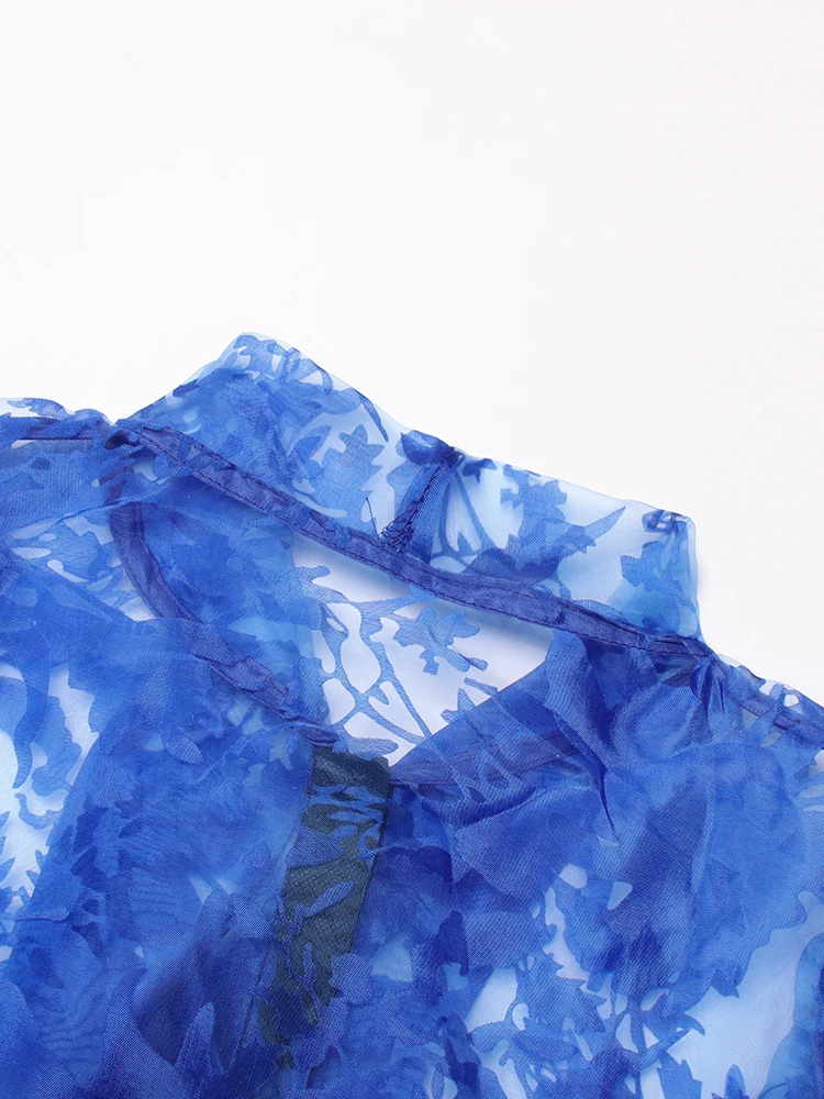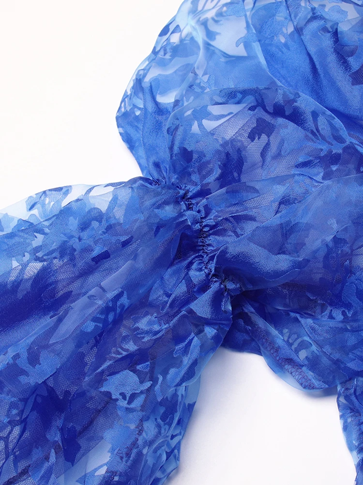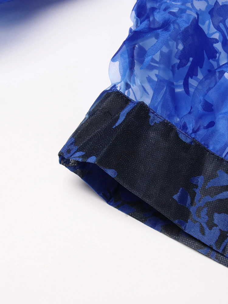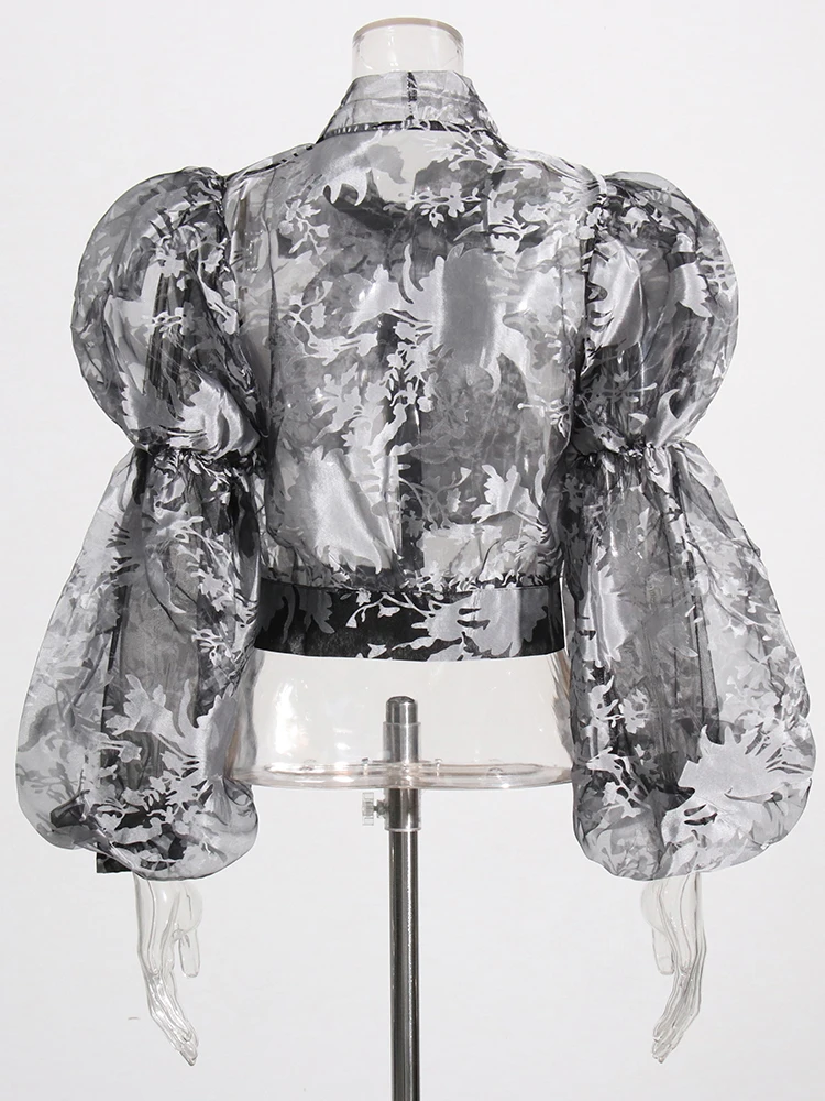 TWOTWINSTYLE Ruched Pullover Shirt For Women Bow Collar Puff Sleeve Print Colorblock Blouses Female Autumn Clothing Fashion New