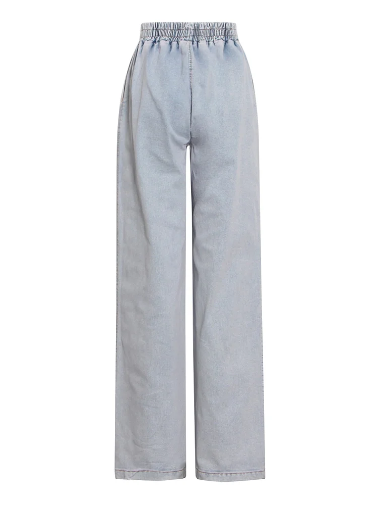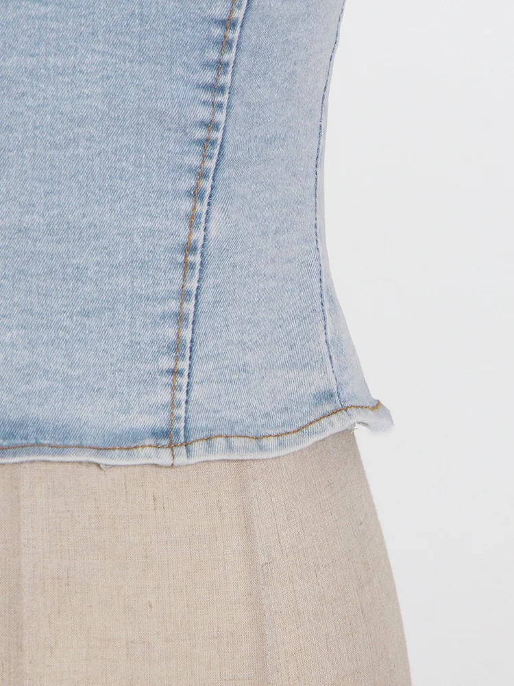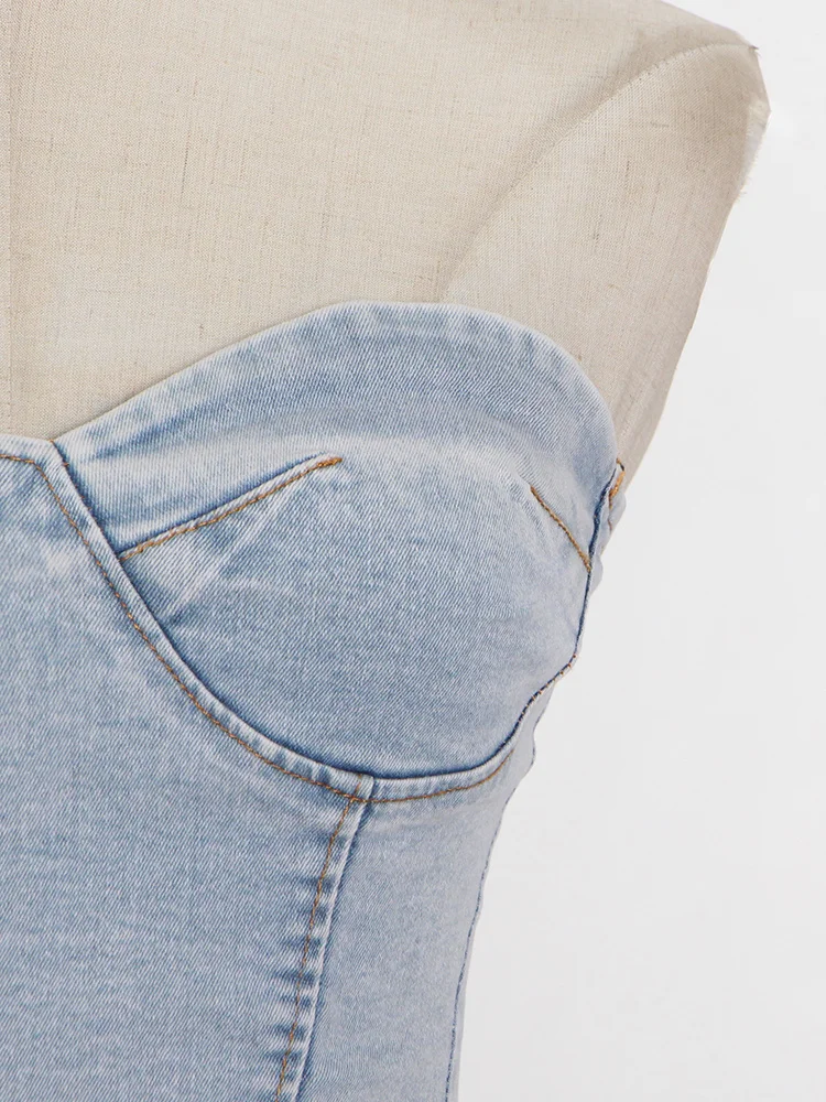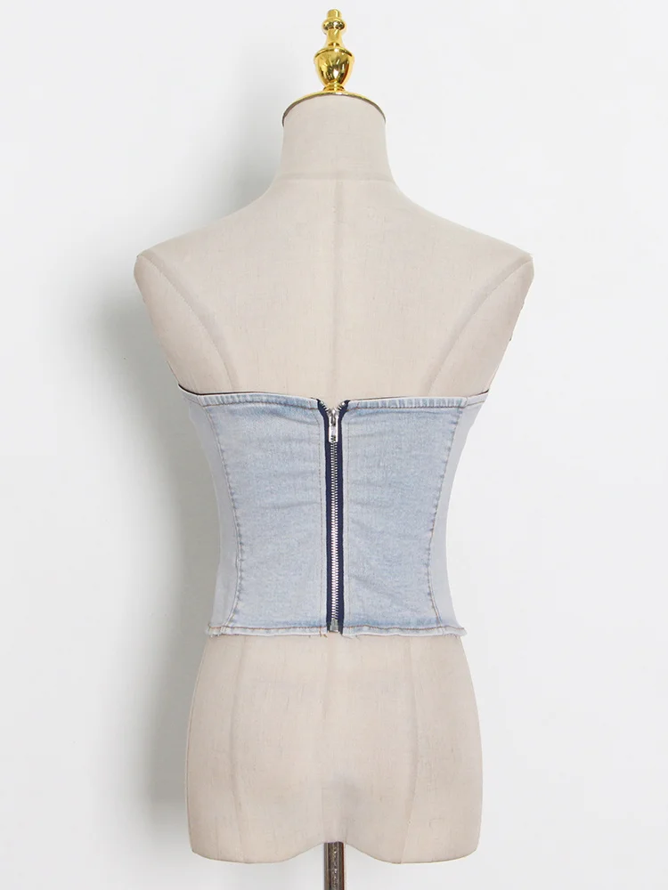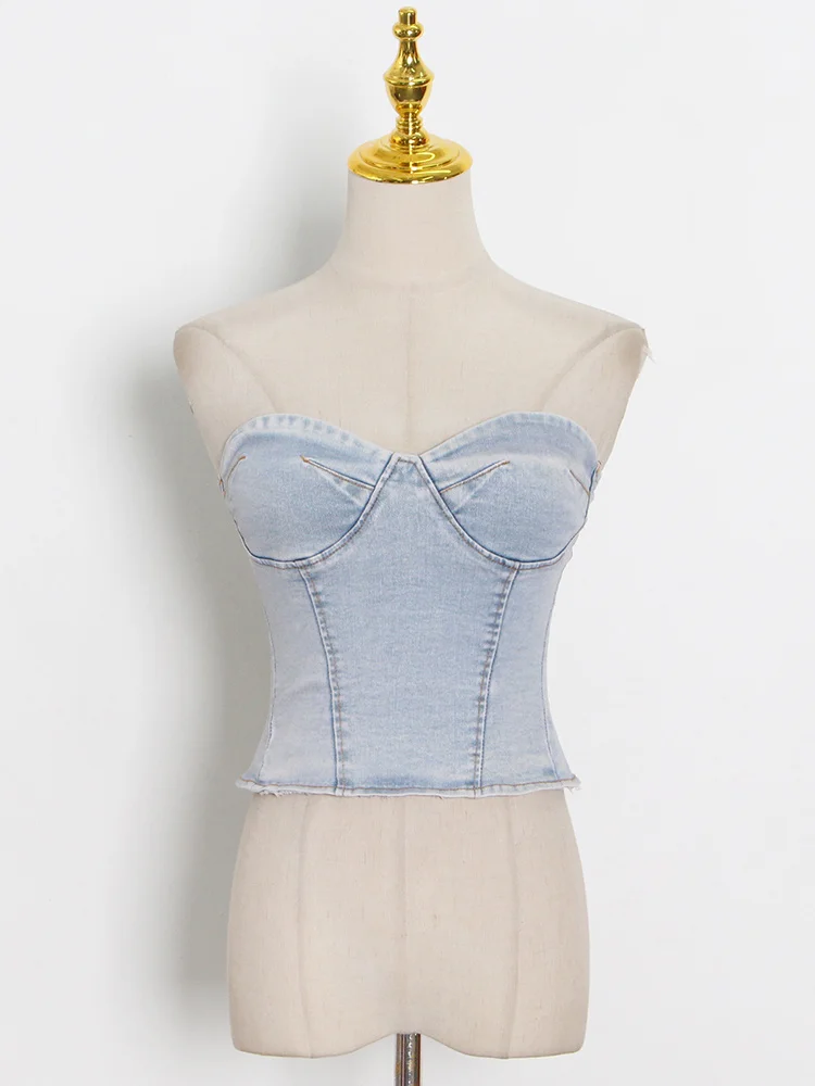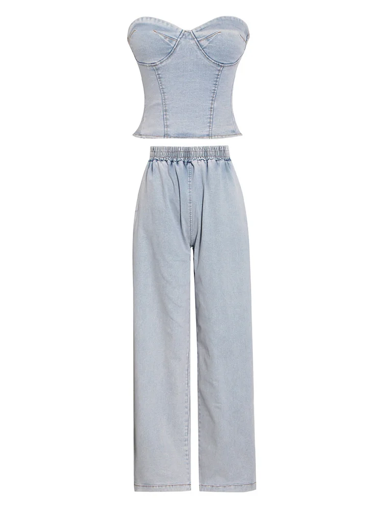 TWOTWINSTYLE Sets Two Pieces Denim Vest Off Shoulder Crop Top High Waist Straight Long Trousers Jeans 2022 Spring New Sets