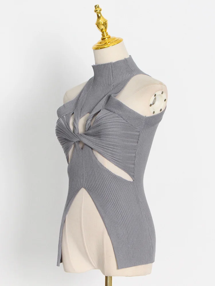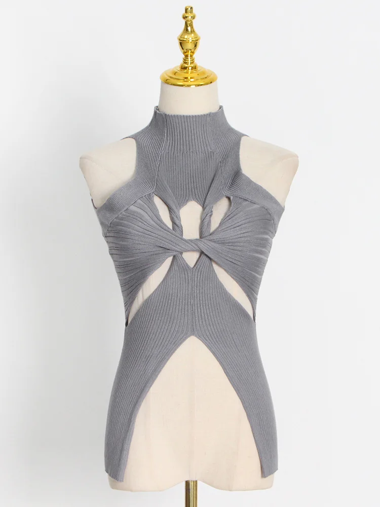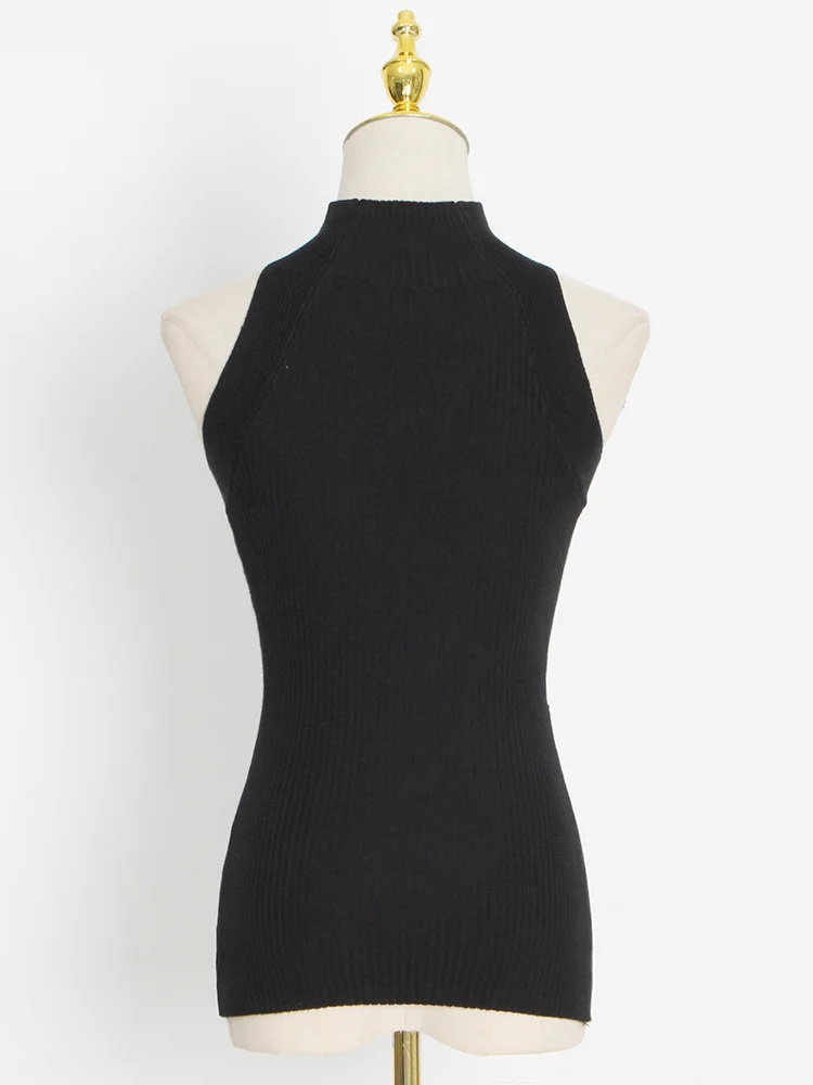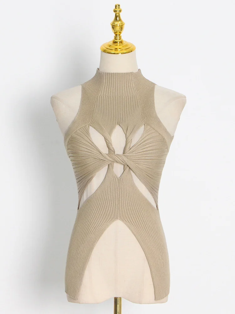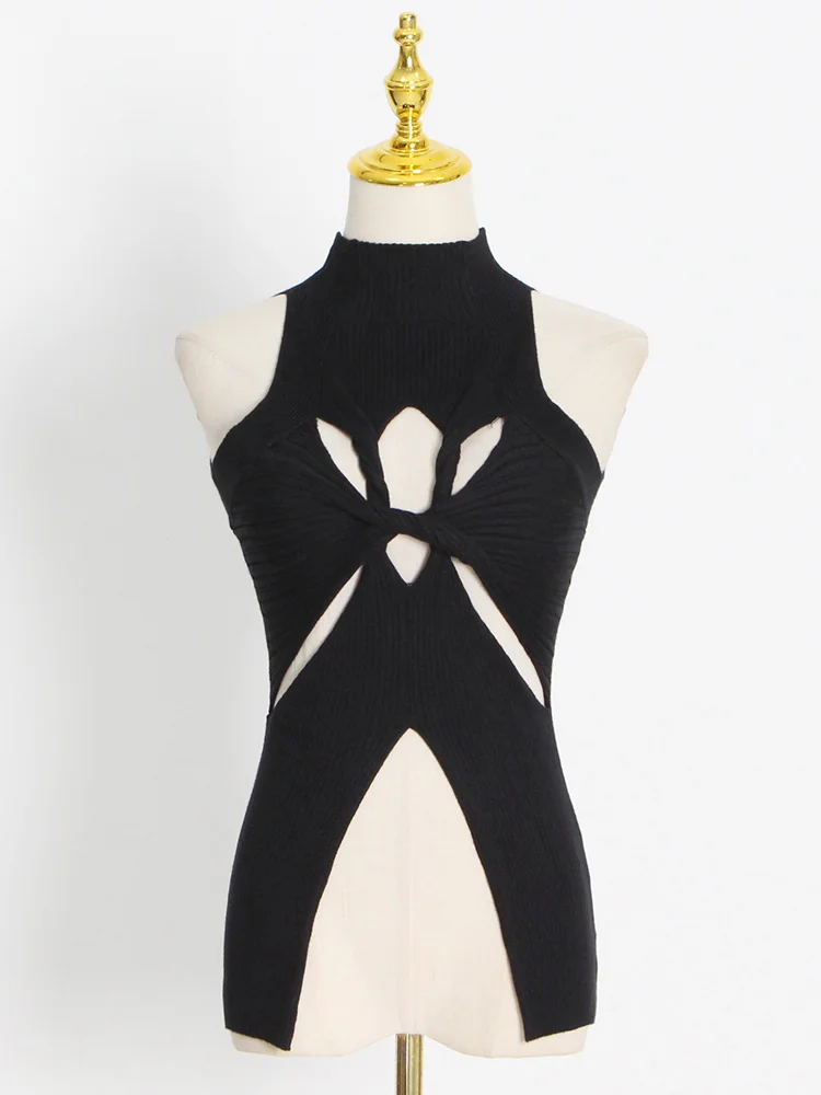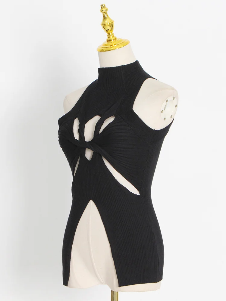 TWOTWINSTYLE Sexy Cut Out Vest For Women Round Collar Sleeveless Solid Minimalist Knitting Vests Female Summer Clothes Style New