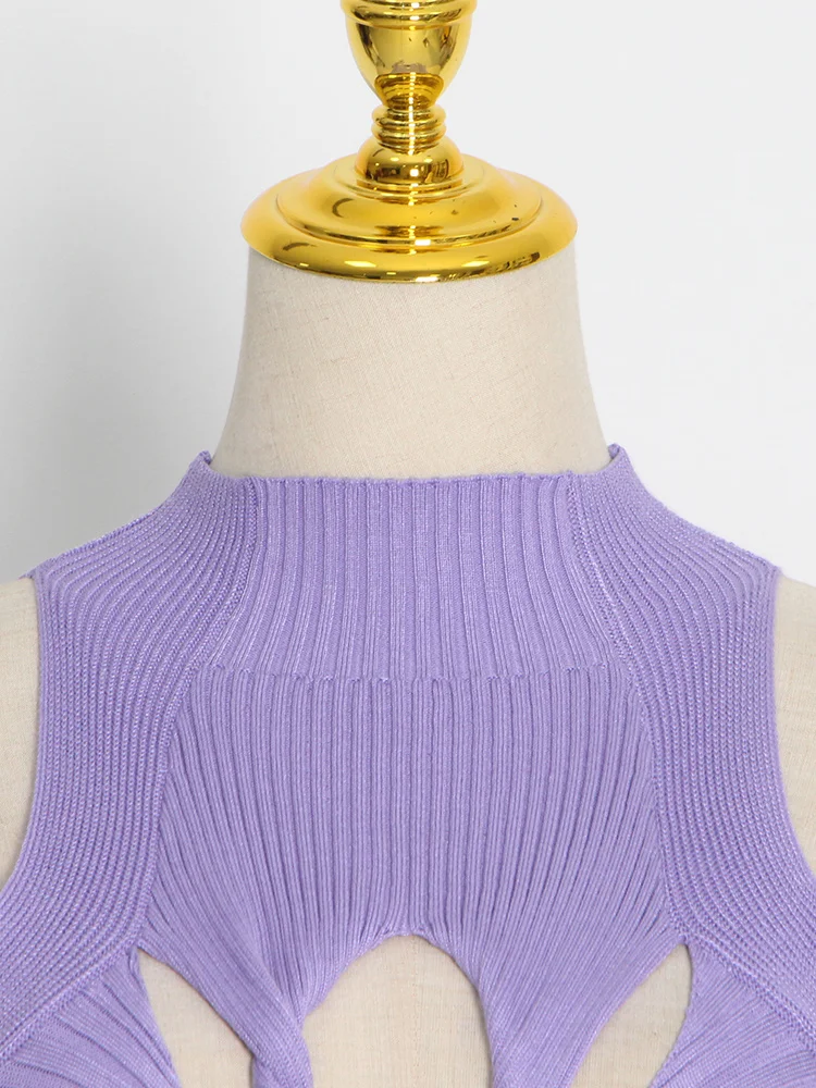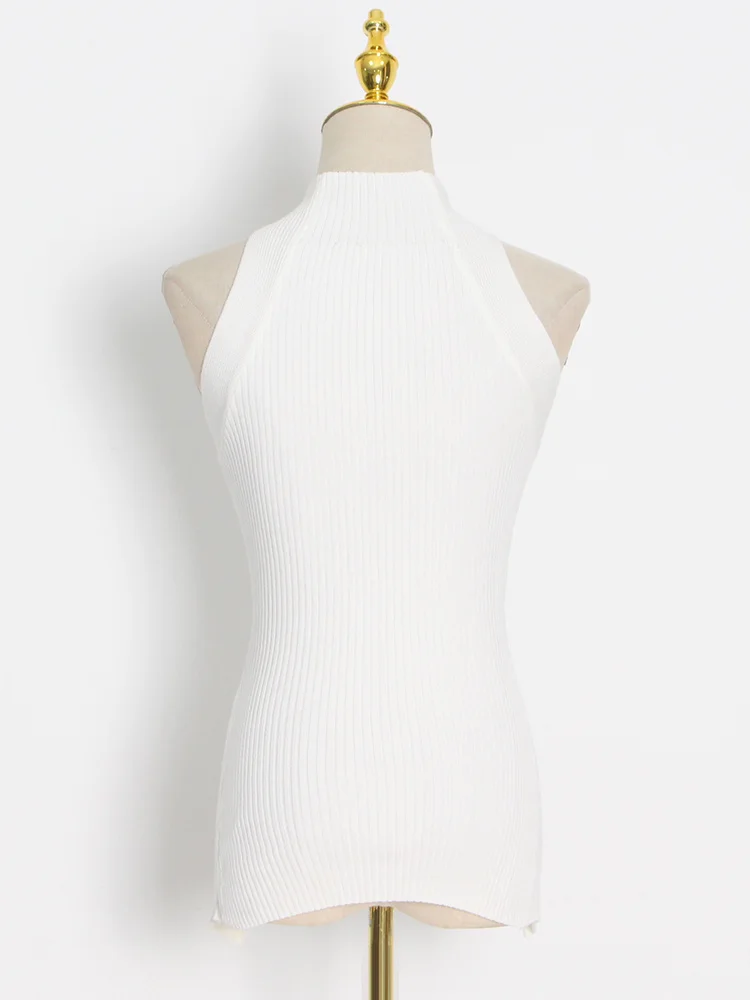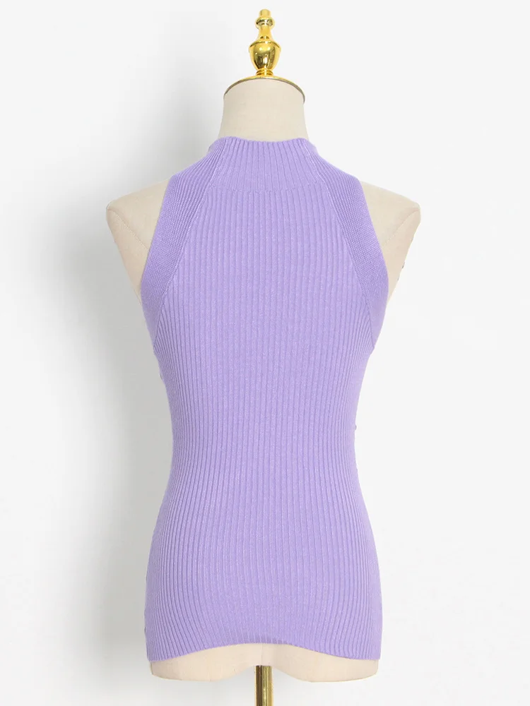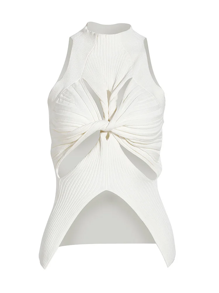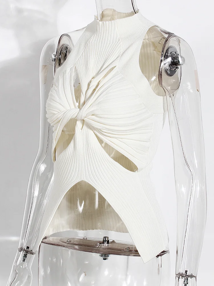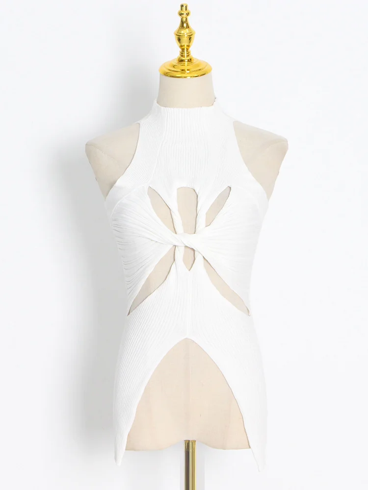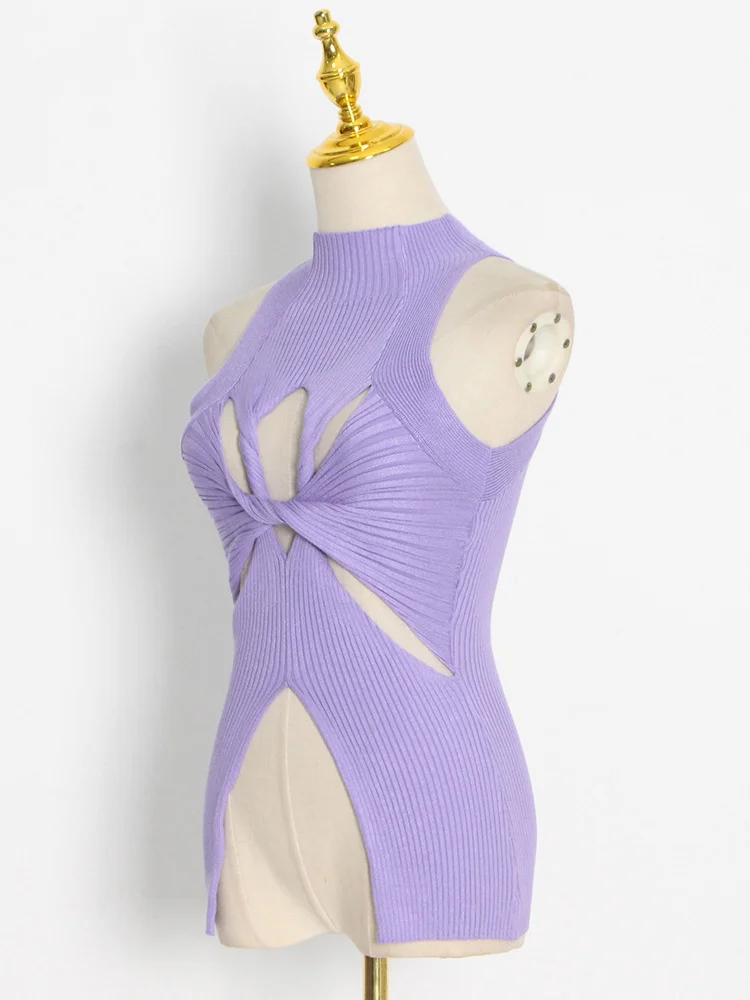 TWOTWINSTYLE Sexy Cut Out Vest For Women Round Collar Sleeveless Solid Minimalist Knitting Vests Female Summer Clothes Style New