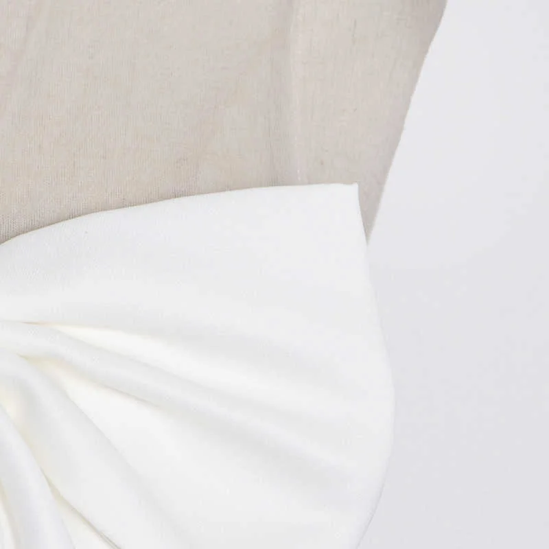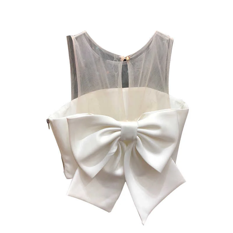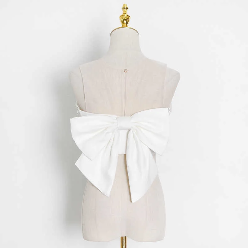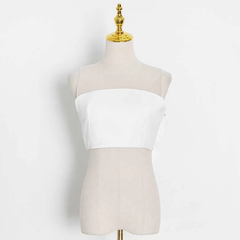 TWOTWINSTYLE Sexy Patchwork Mesh Bowknot Shirt For Women O Neck Sleeveless Backless Perspective Blouse Female Summer New