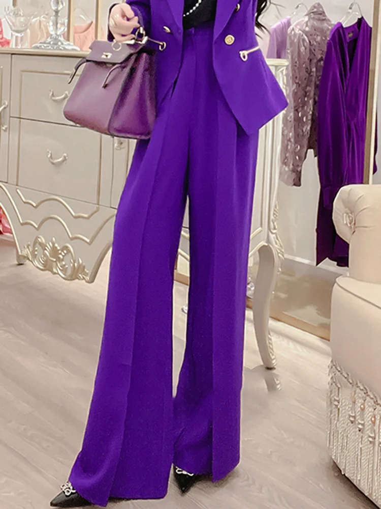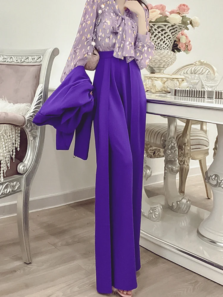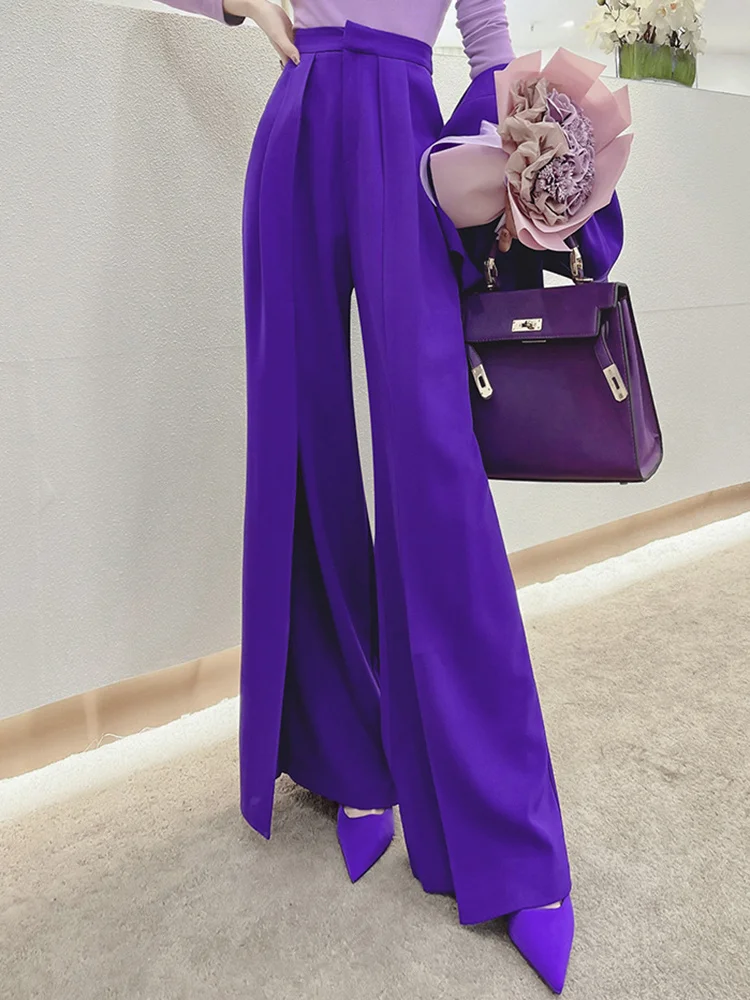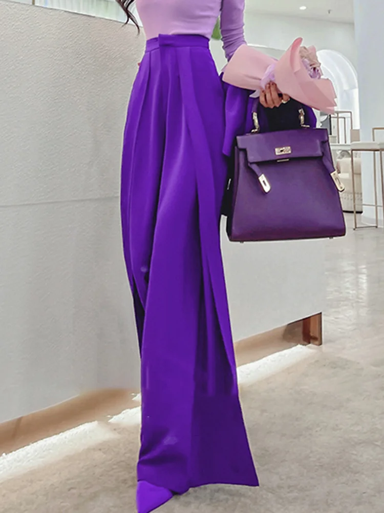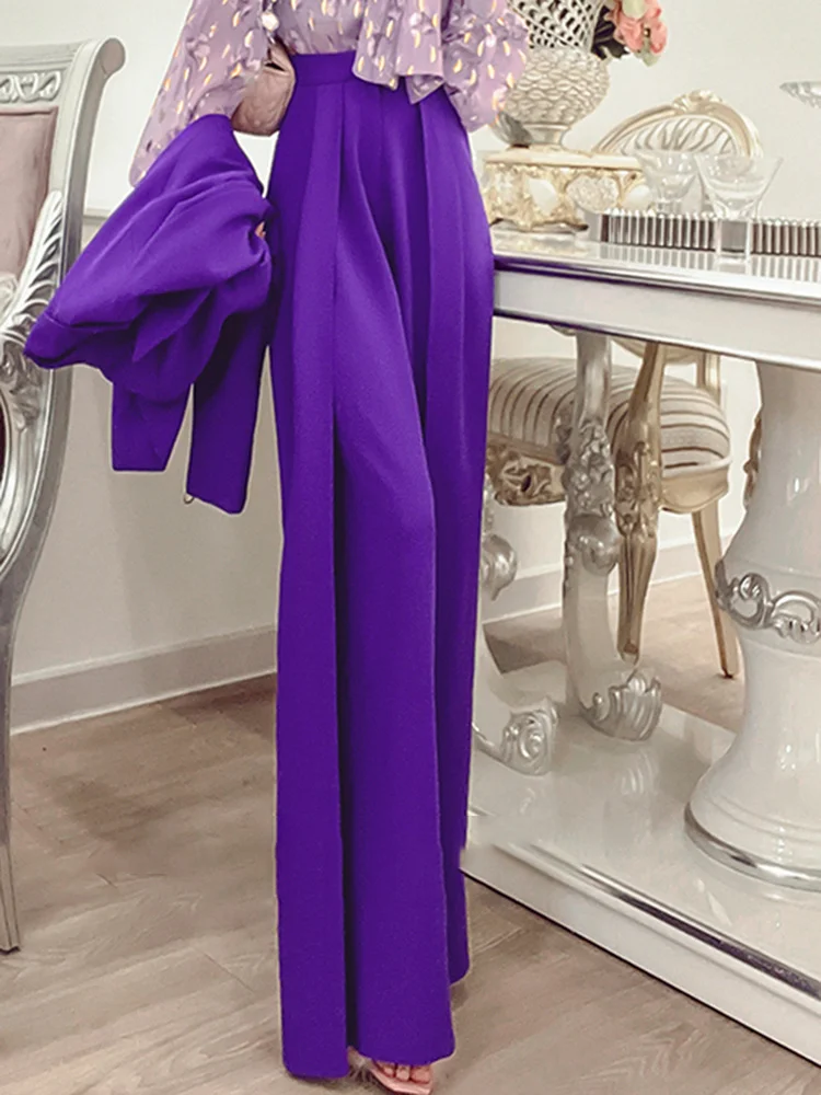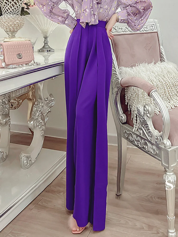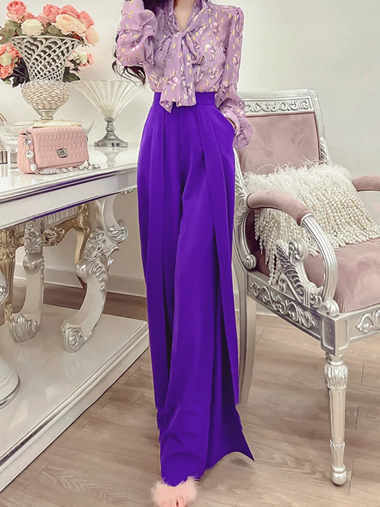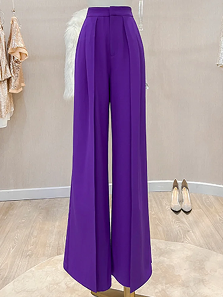 TWOTWINSTYLE Solid Casual Loose Straight Pants For Women High Waist Patchwork Pockets Long Wide Leg Pant Female Fashion Clothing