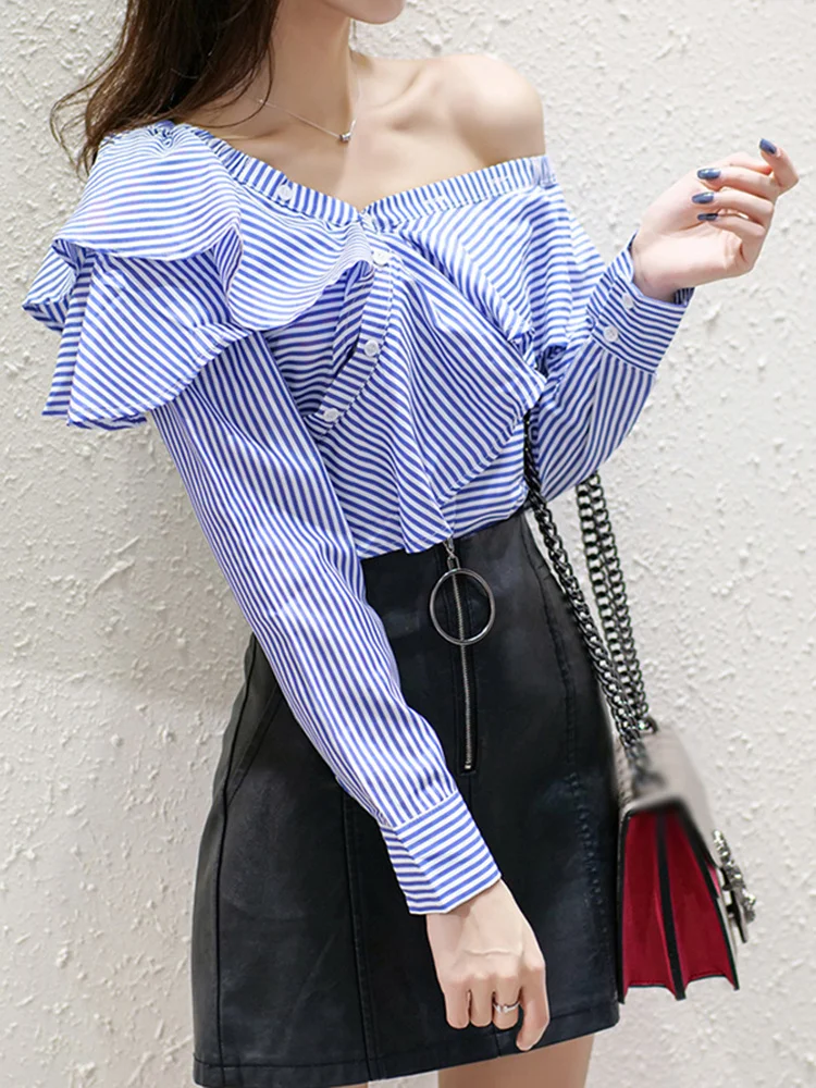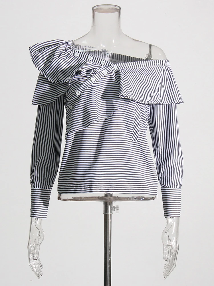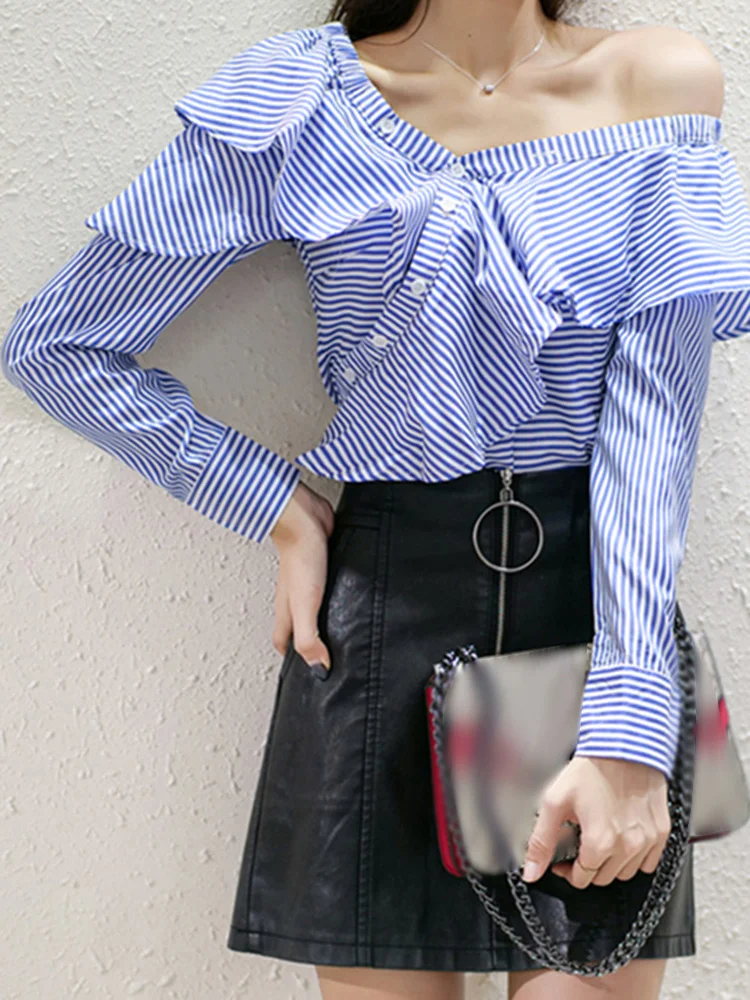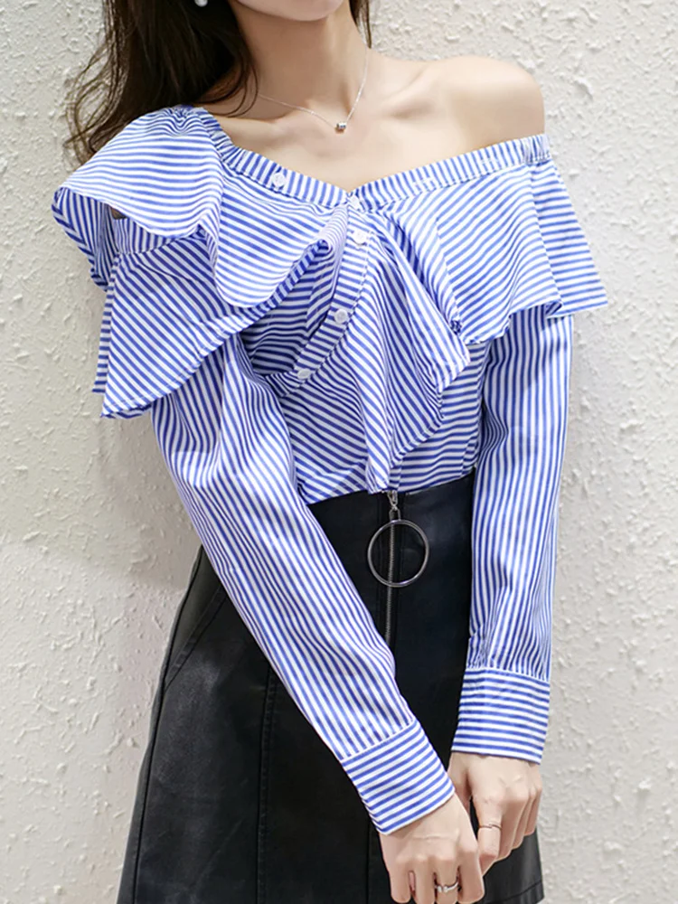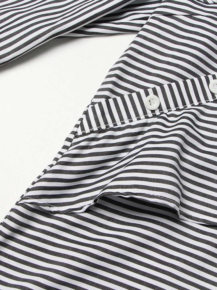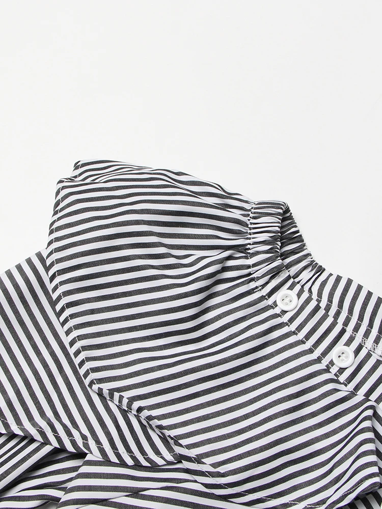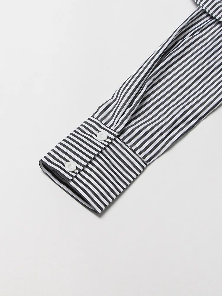 TWOTWINSTYLE Striped Casual Shirt For Women V Neck Long Sleeve Patchwork Button Through Shirts Female Fashion New Clothing
