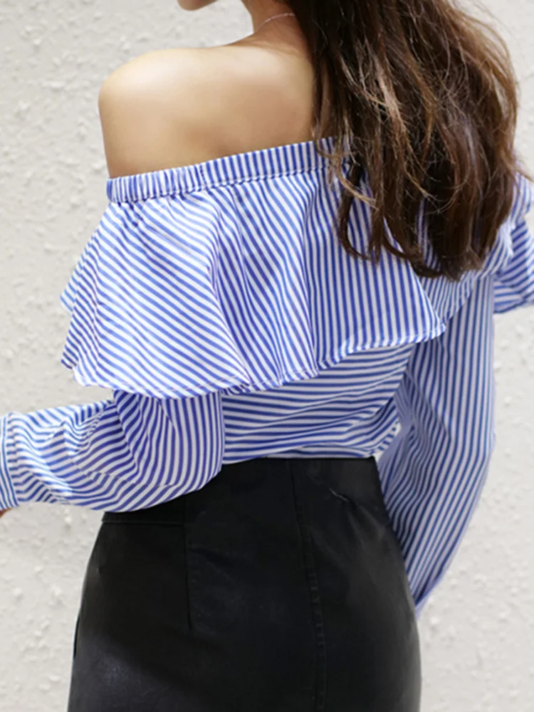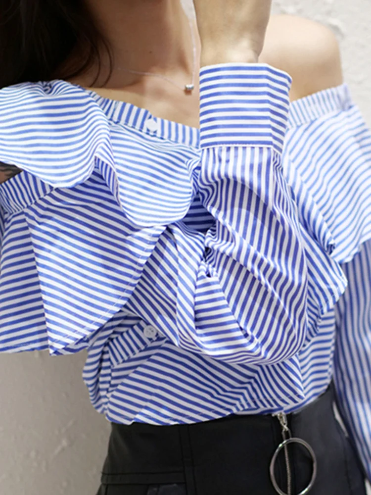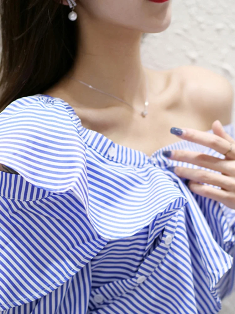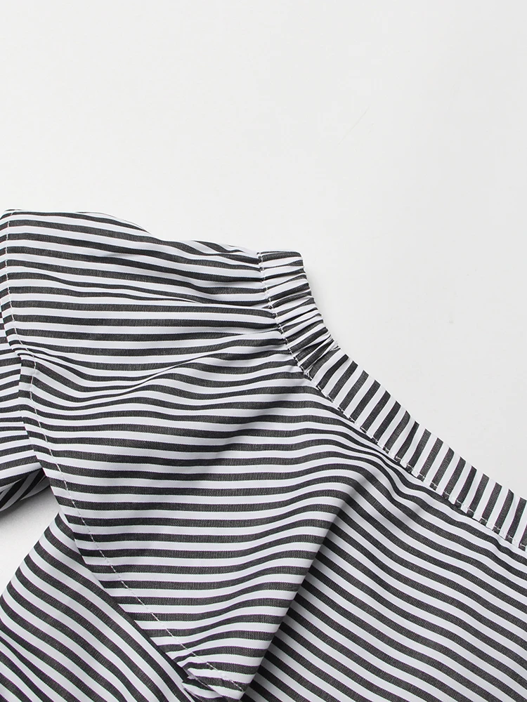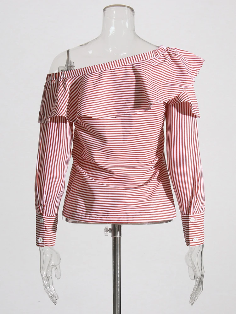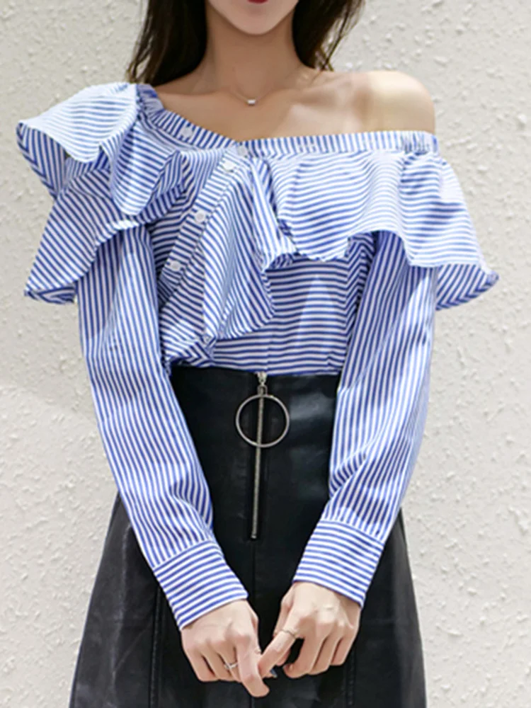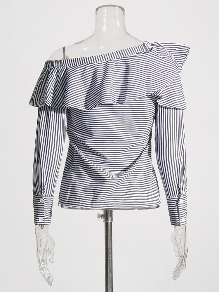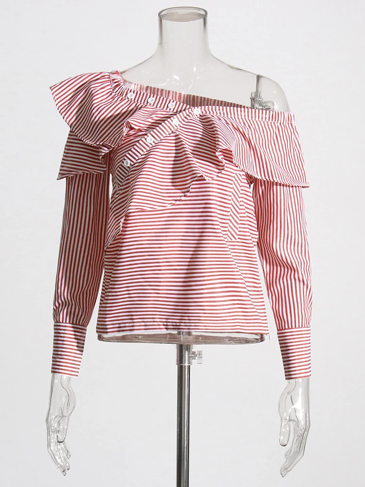 TWOTWINSTYLE Striped Casual Shirt For Women V Neck Long Sleeve Patchwork Button Through Shirts Female Fashion New Clothing