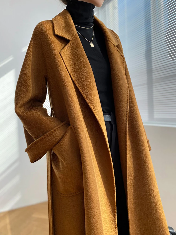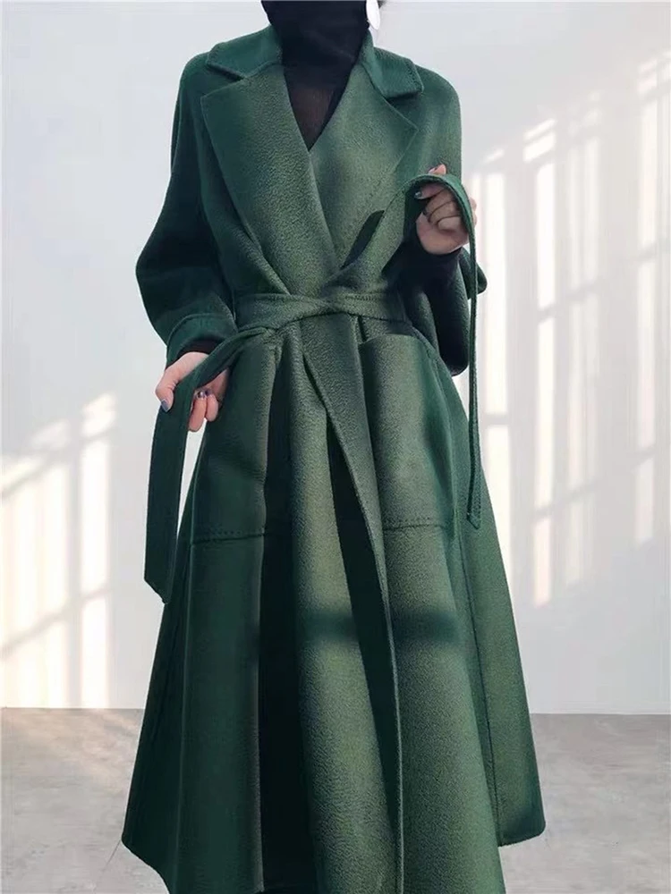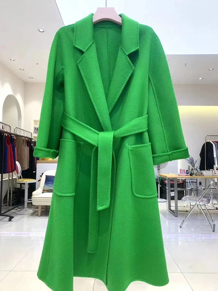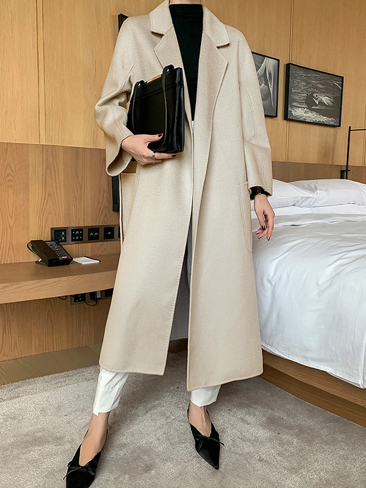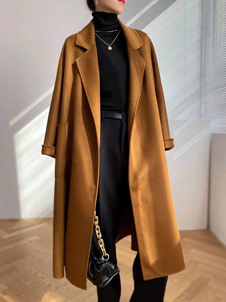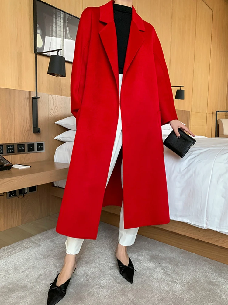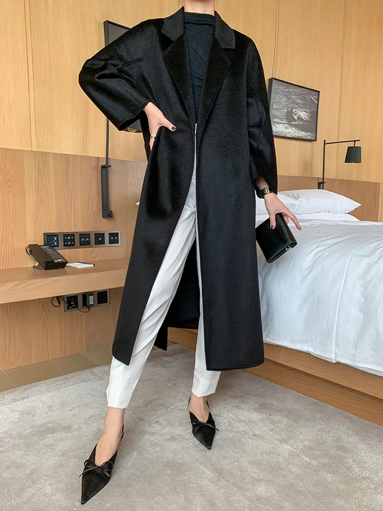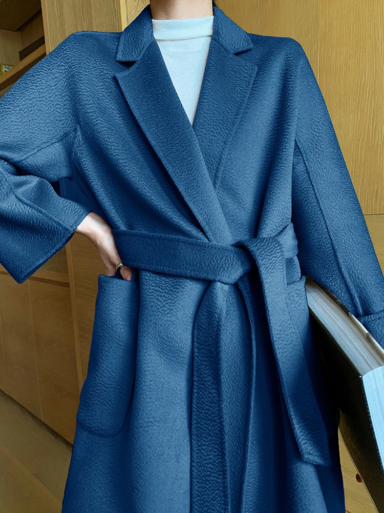 TWOTWINSTYLE Water Ripple Double-sided Wool Coat For Women Lapel Long Sleeve Lace Up Solid Autumn Winter Coat For Female Fashion