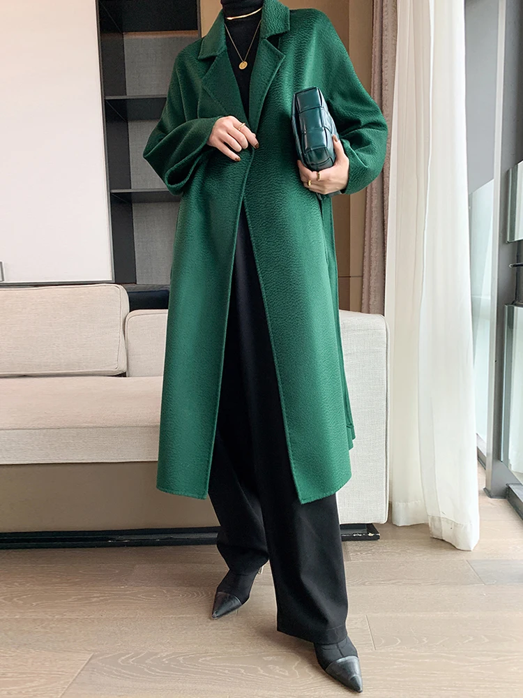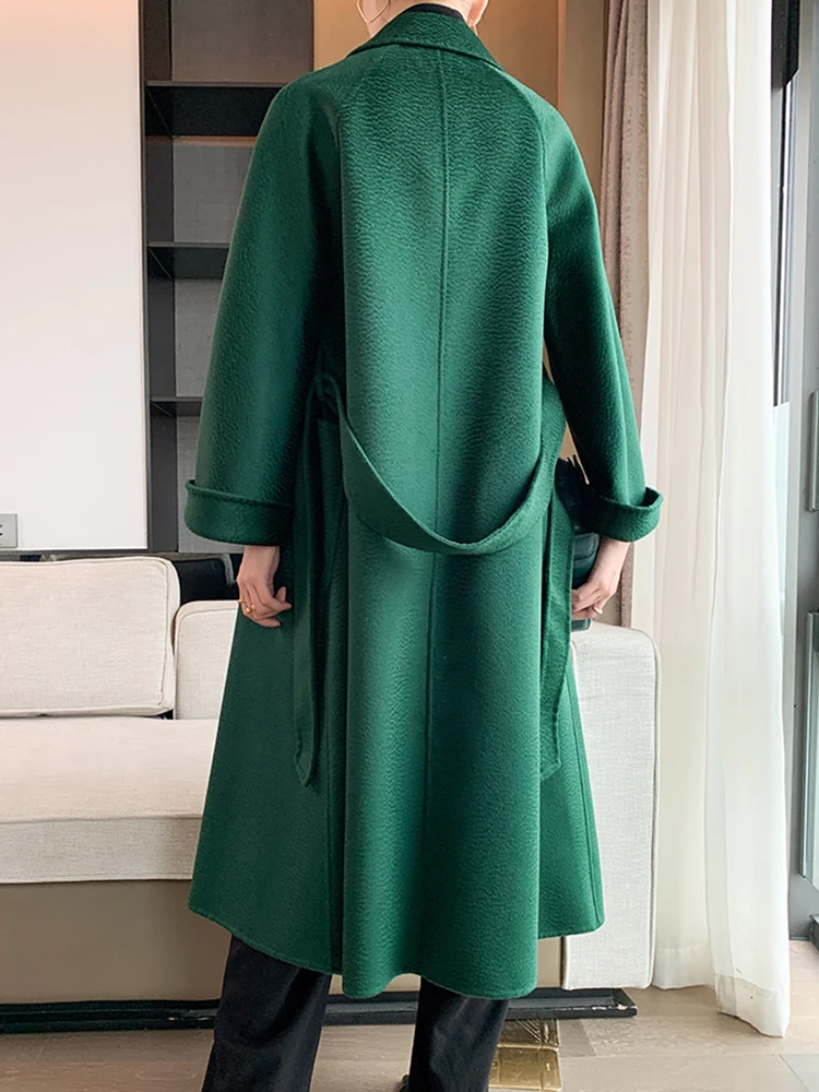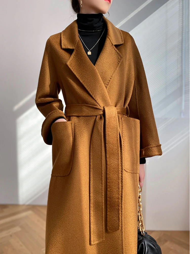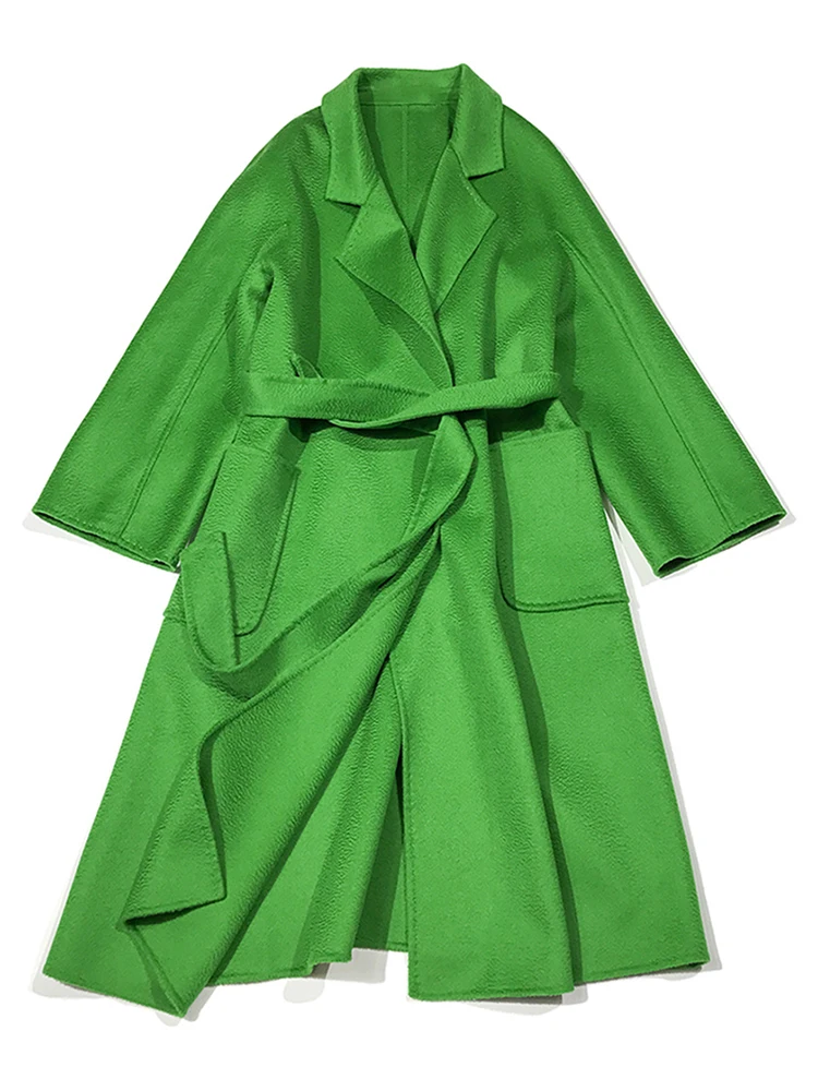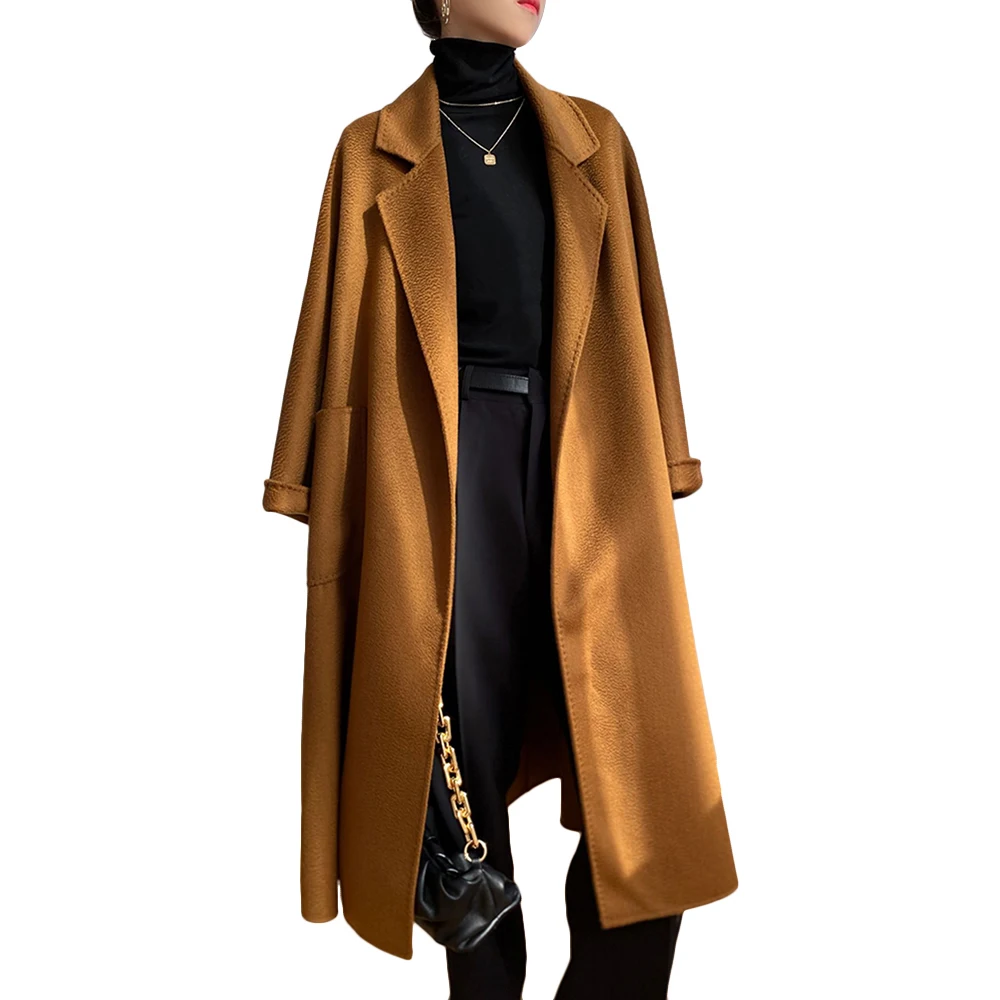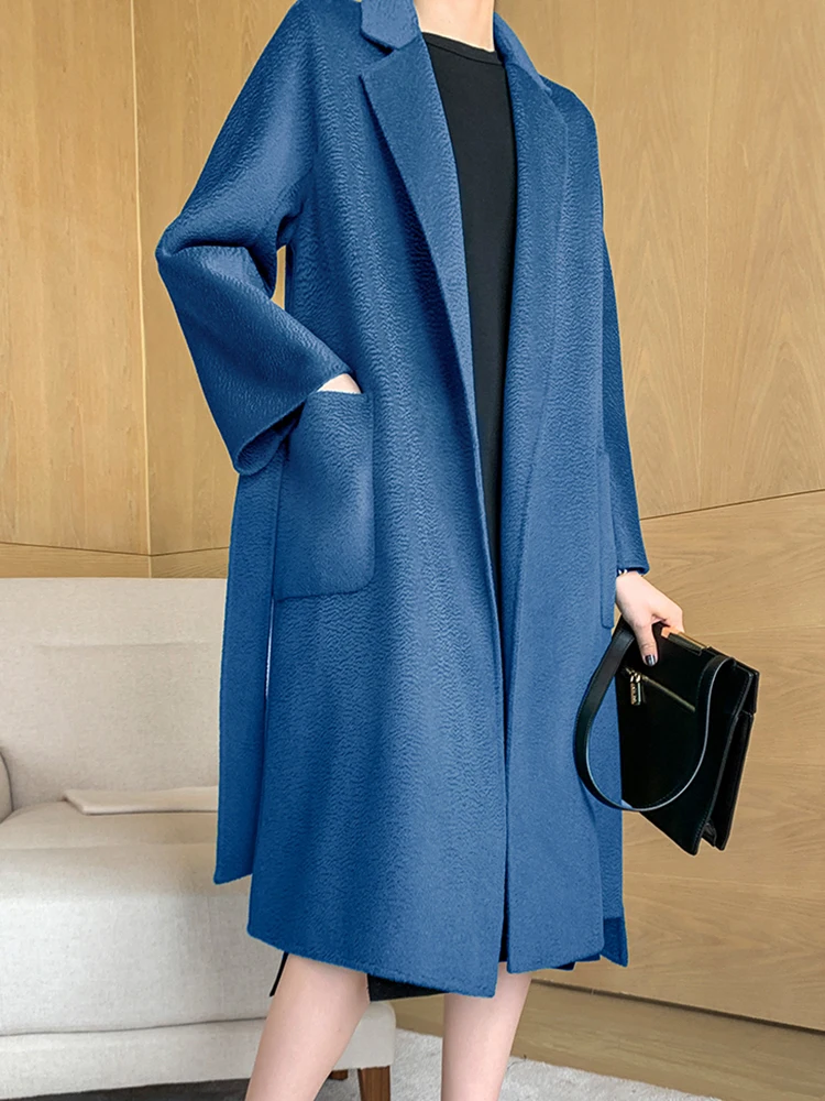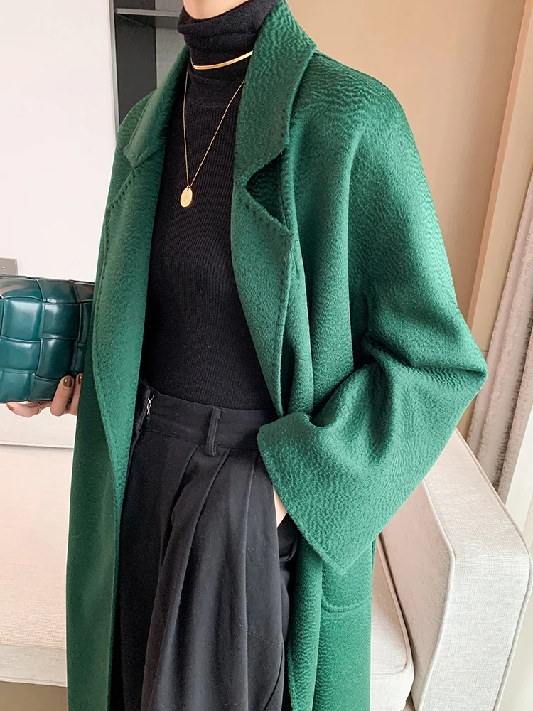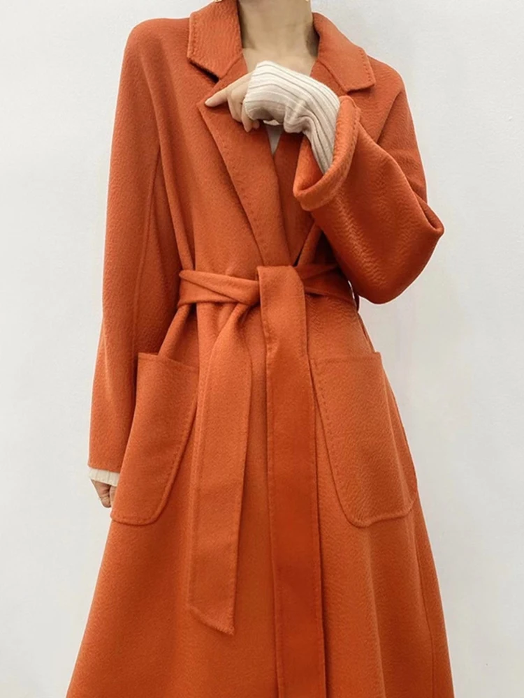 TWOTWINSTYLE Water Ripple Double-sided Wool Coat For Women Lapel Long Sleeve Lace Up Solid Autumn Winter Coat For Female Fashion